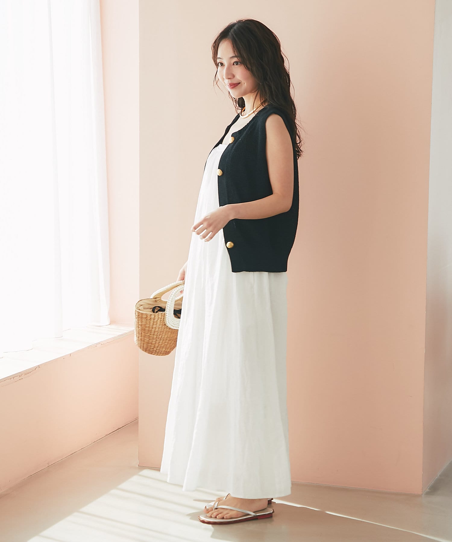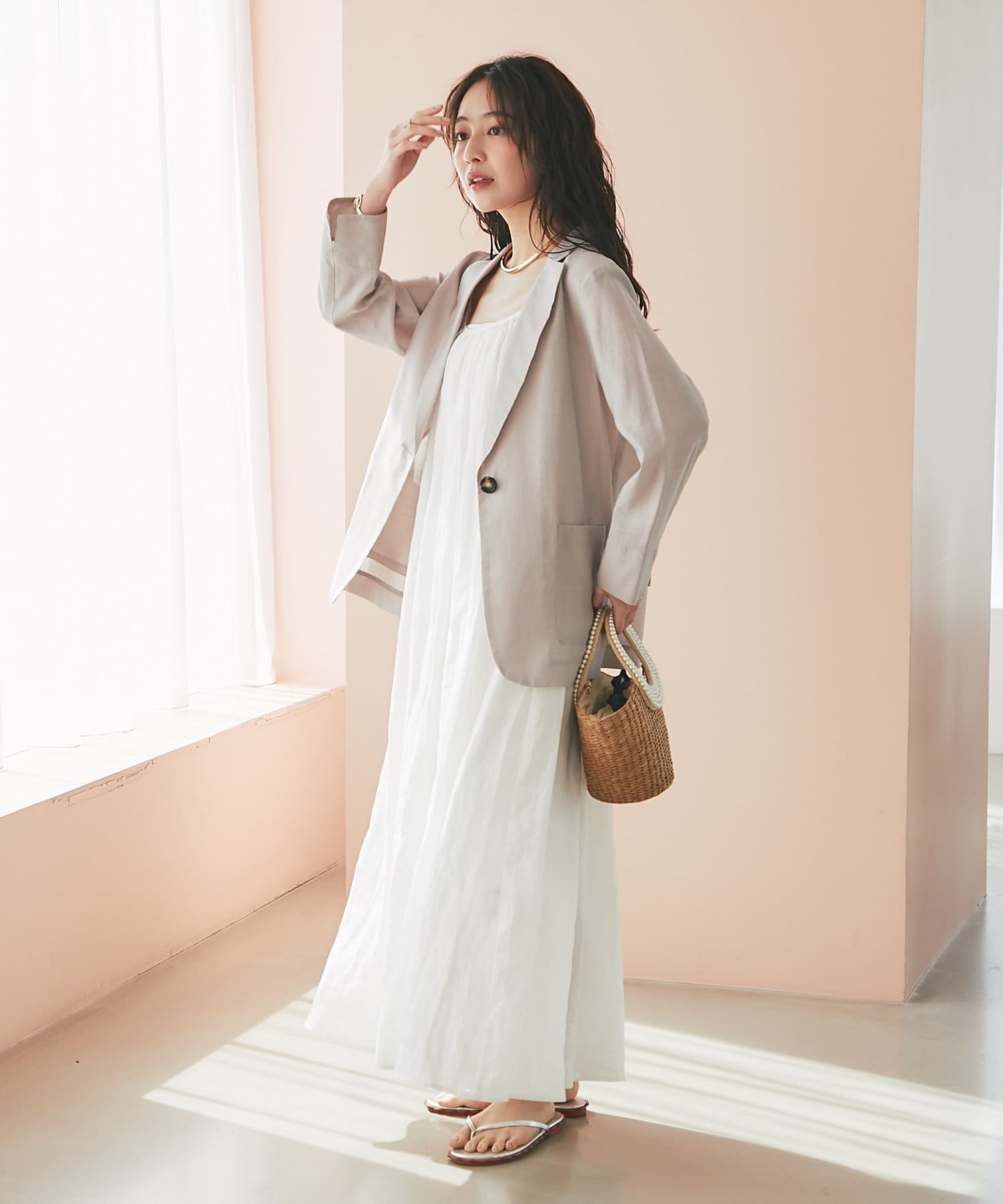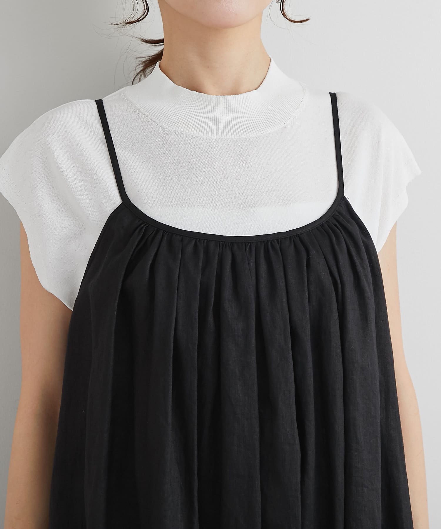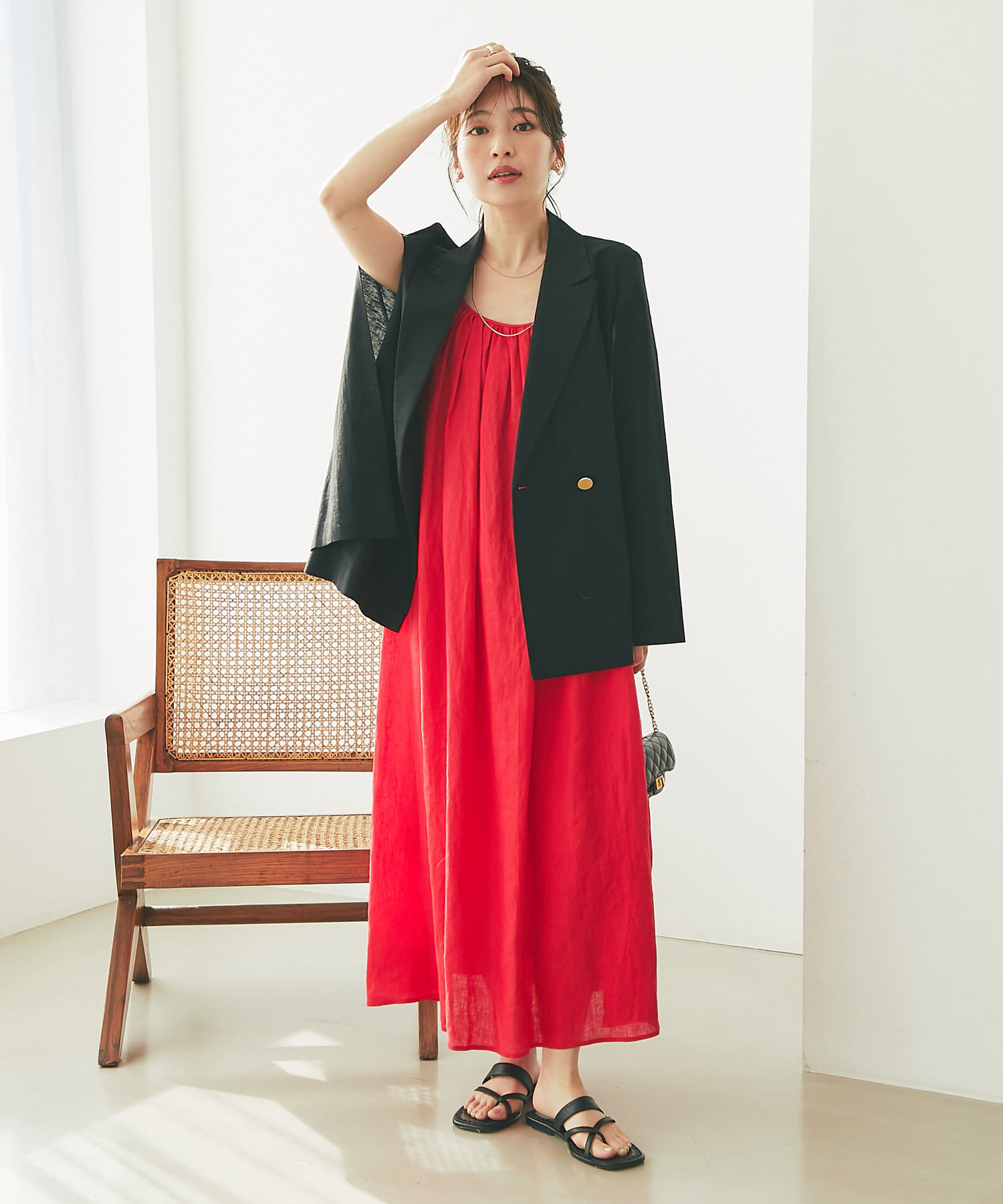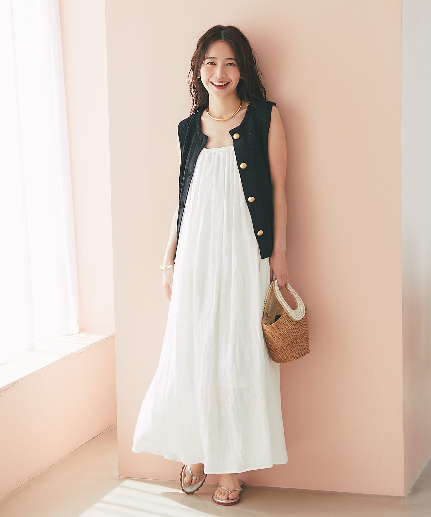 シンプルながらも存在感のあるリネン素材のキャミワンピースです。