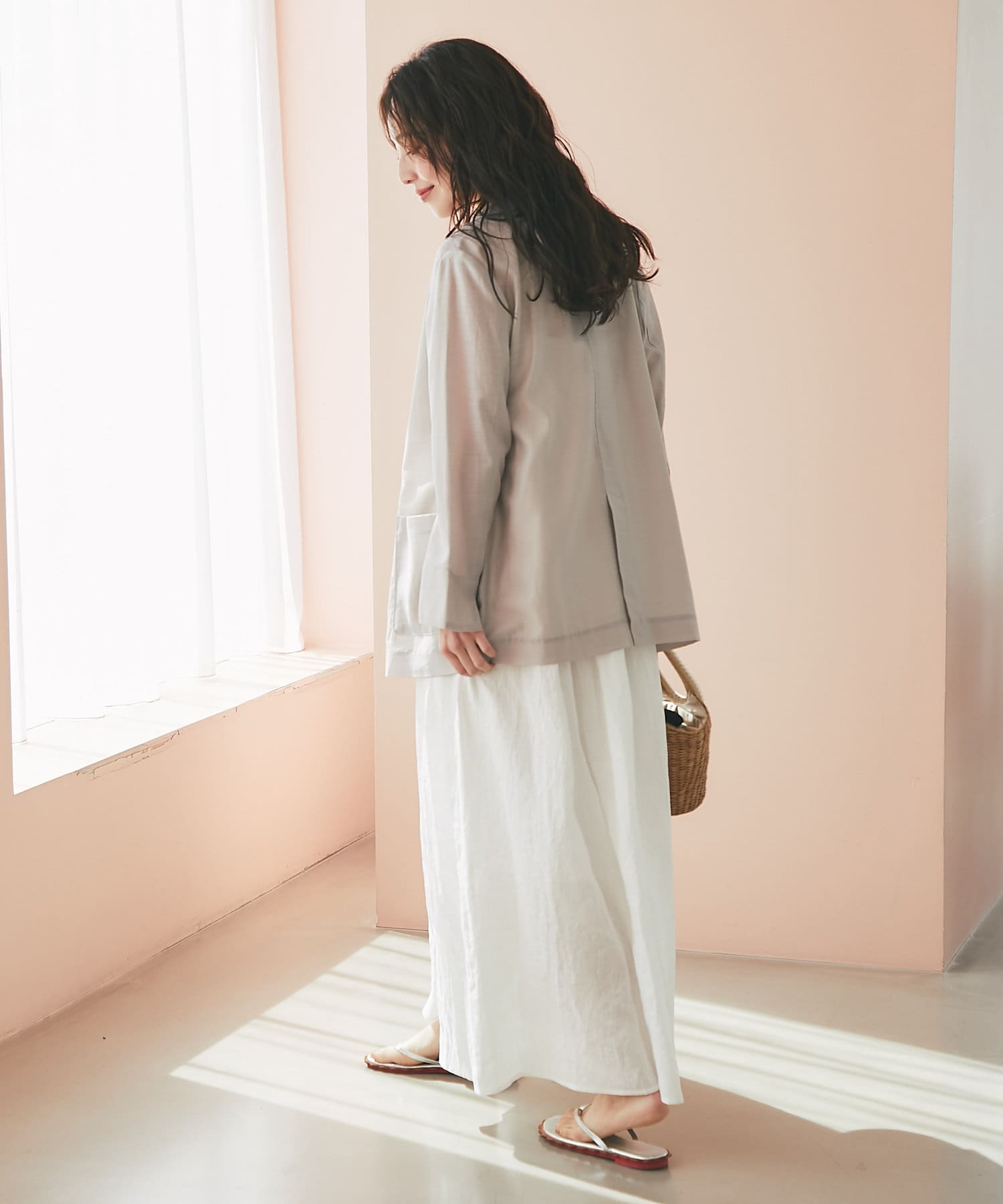 麻特有のシャリ感と自然なドレープ感が、上品さと涼しげな印象を与えてくれます。