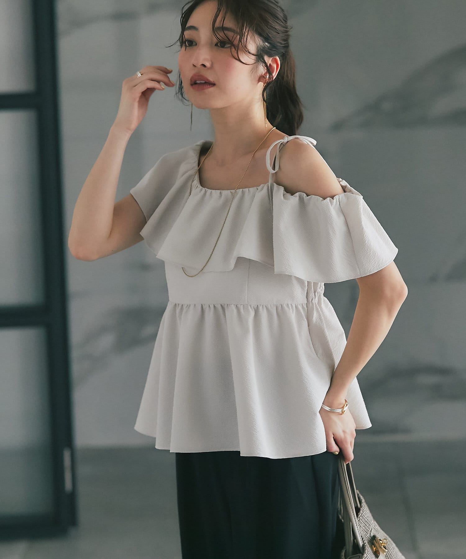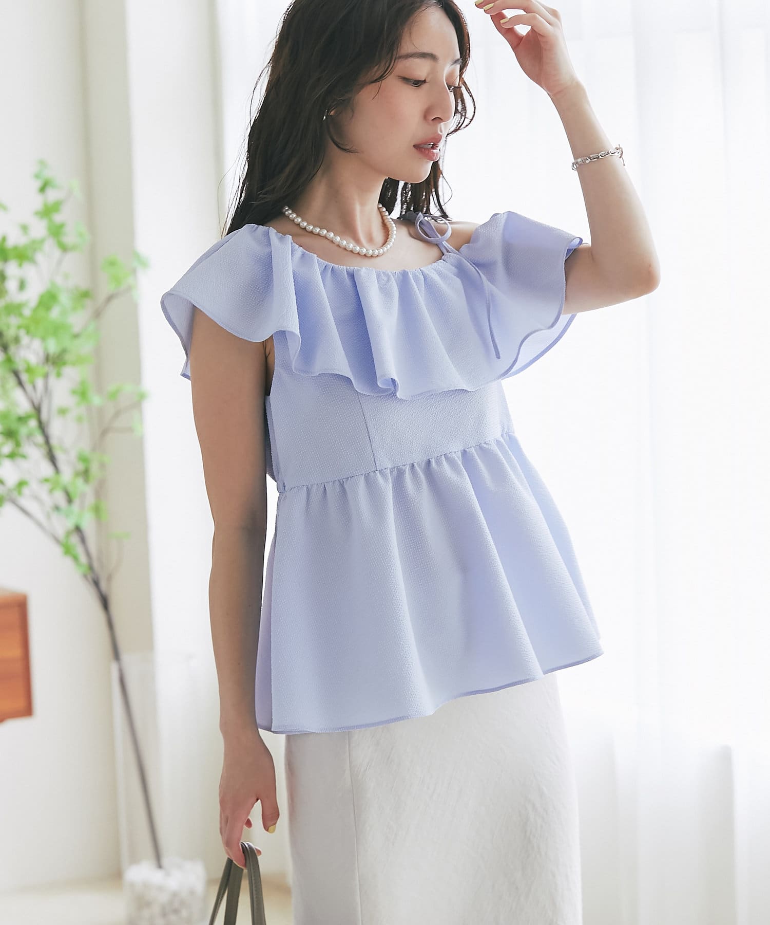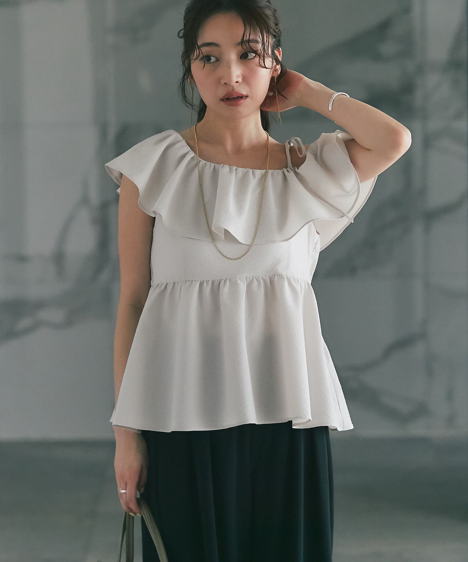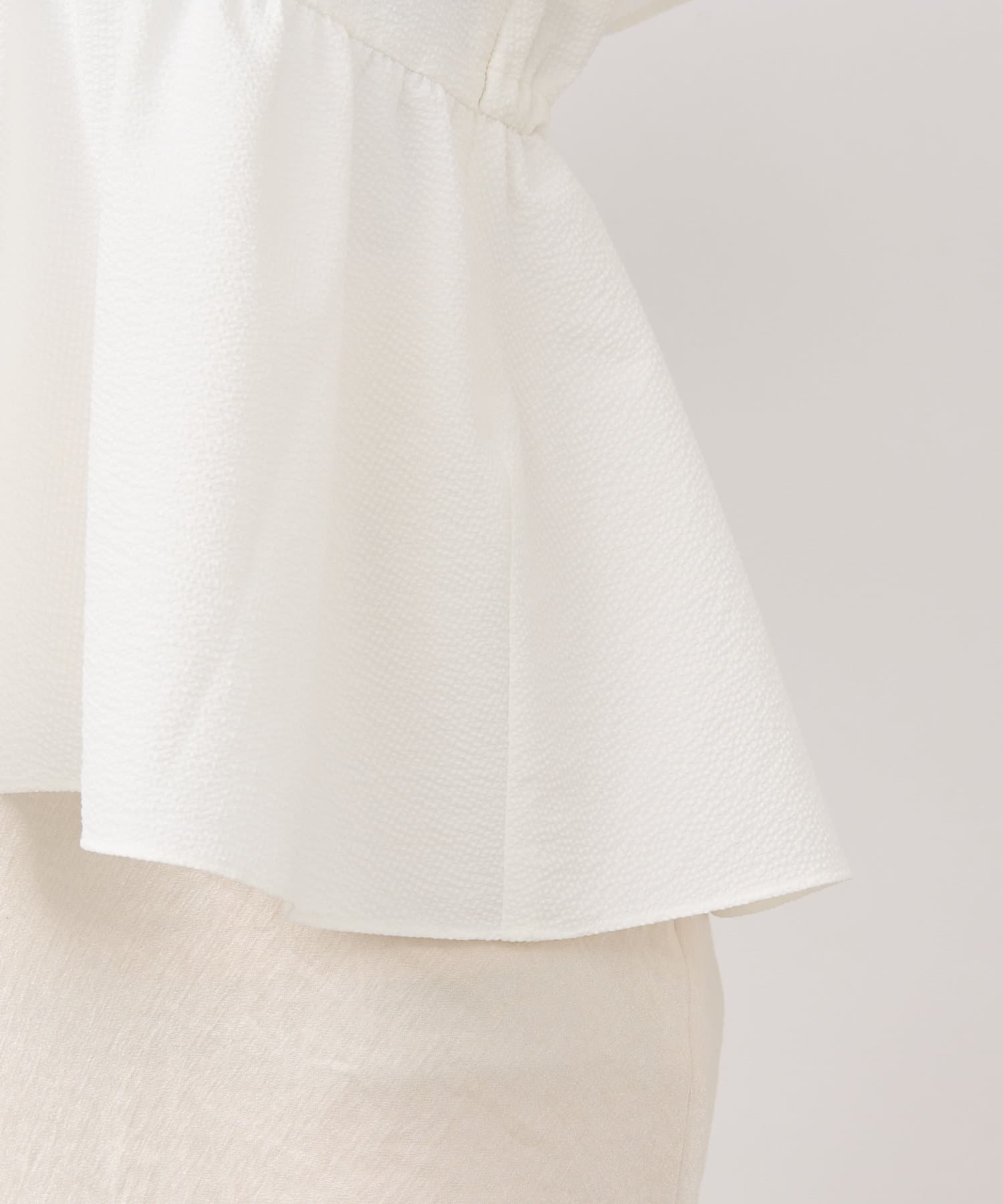 ラッフルが映える華やかデザインのペプラムブラウス。