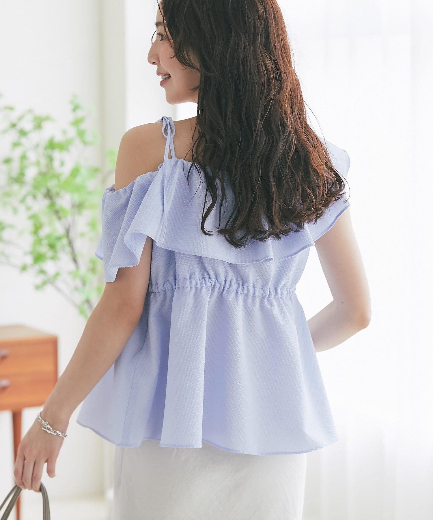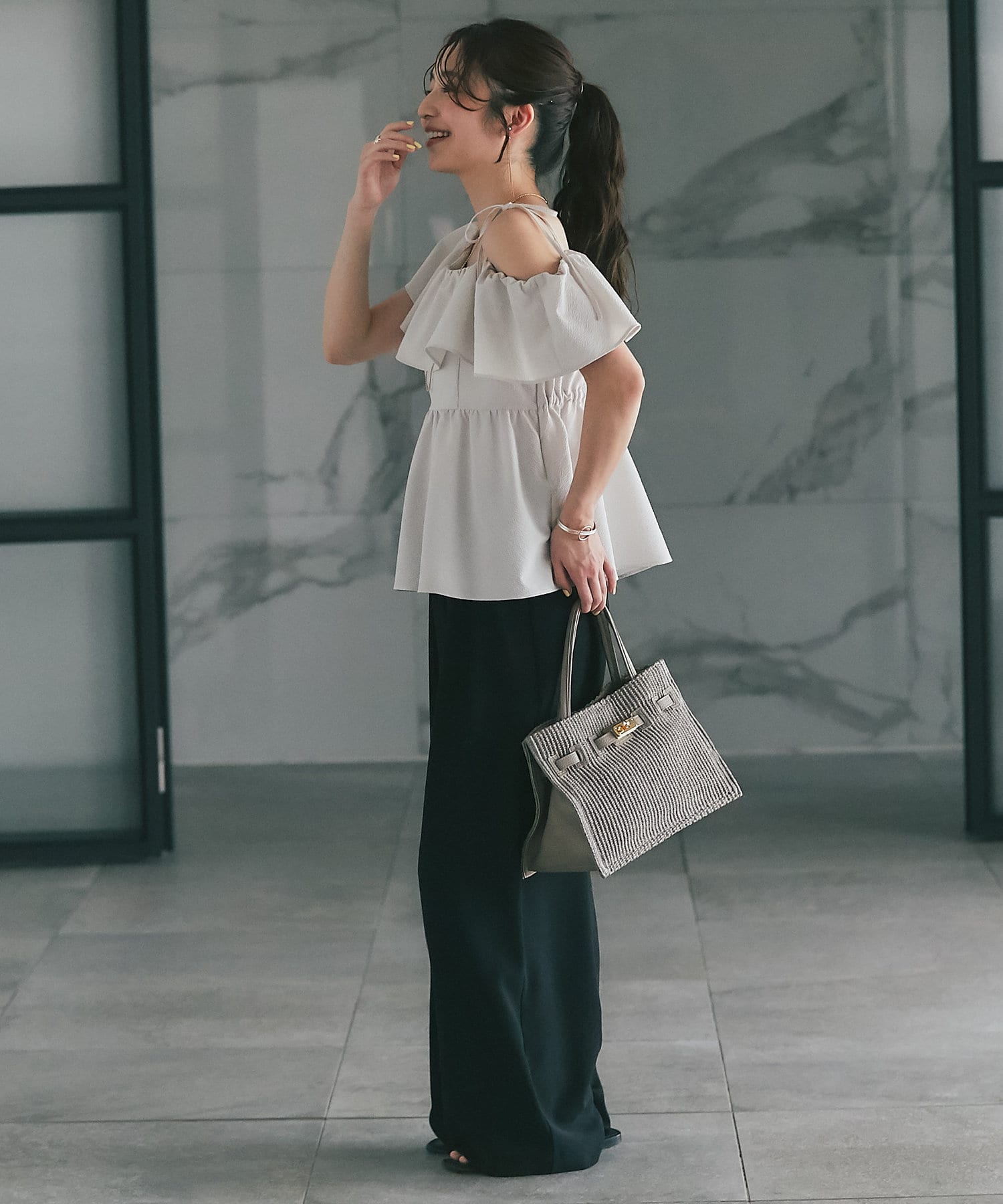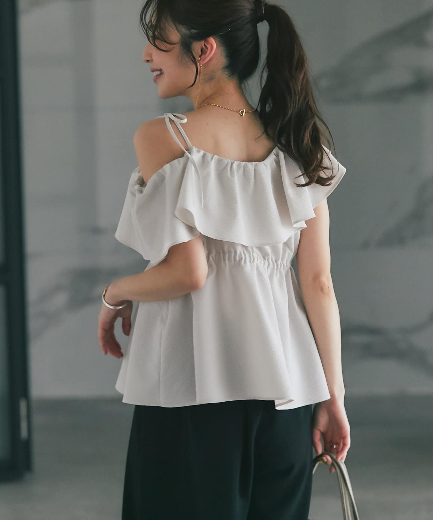ラッフルが映える華やかデザインのペプラムブラウス。