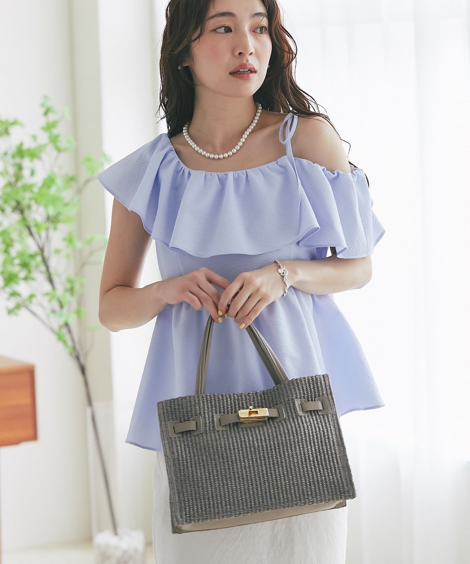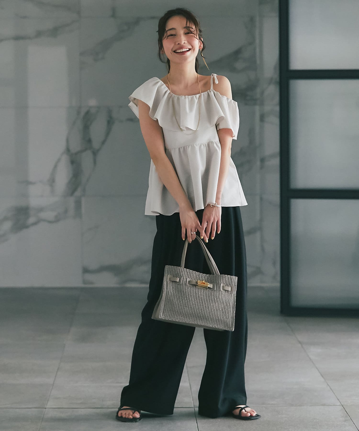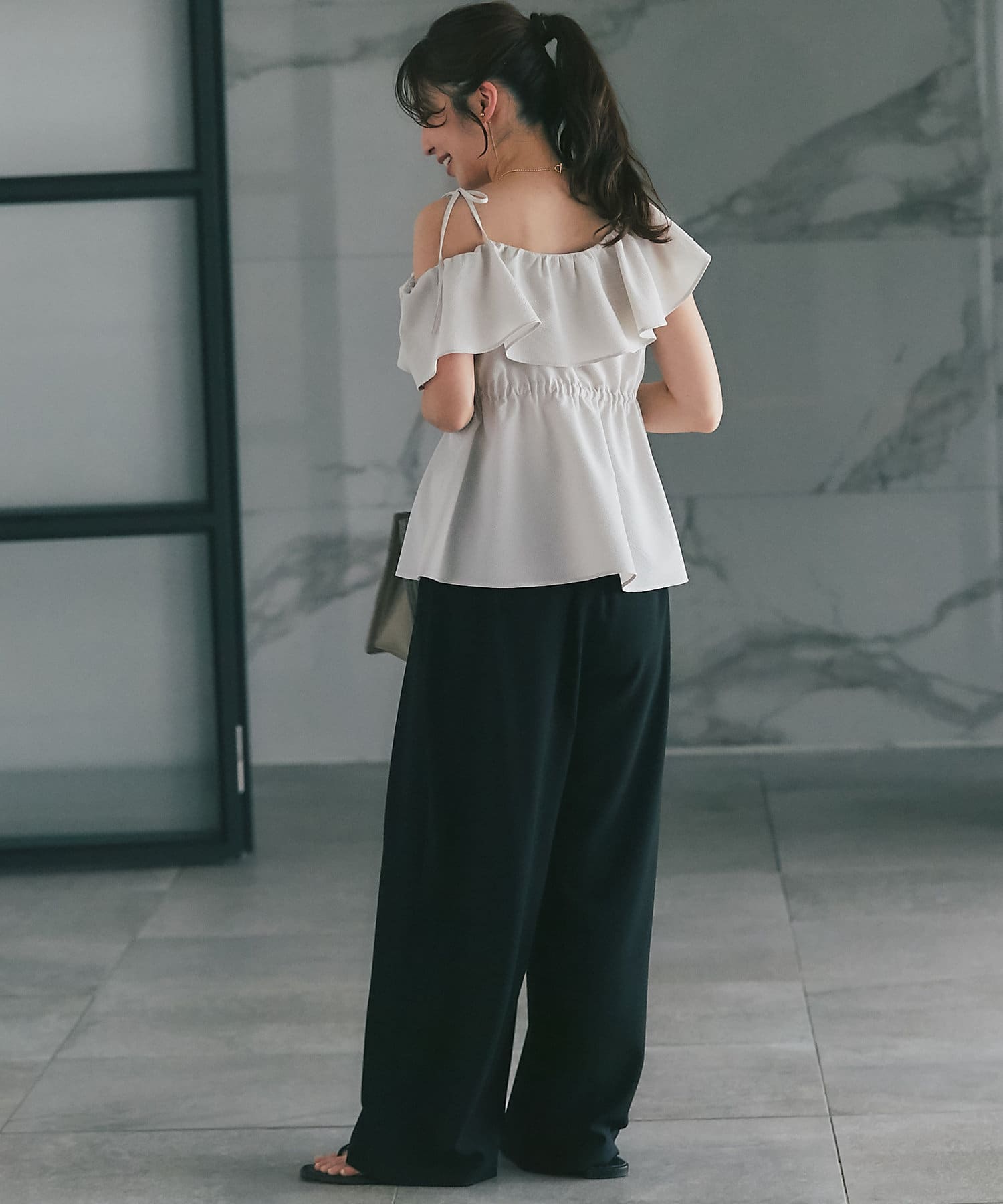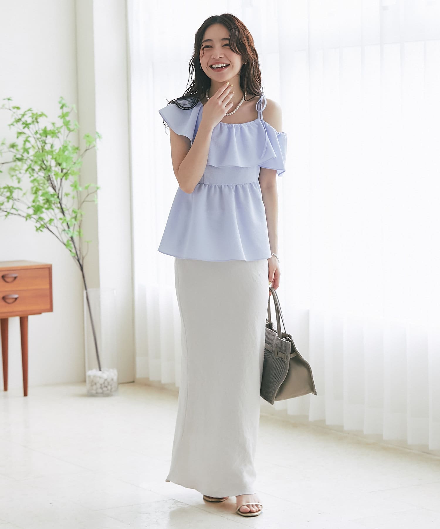 ラッフルが映える華やかデザインのペプラムブラウス。