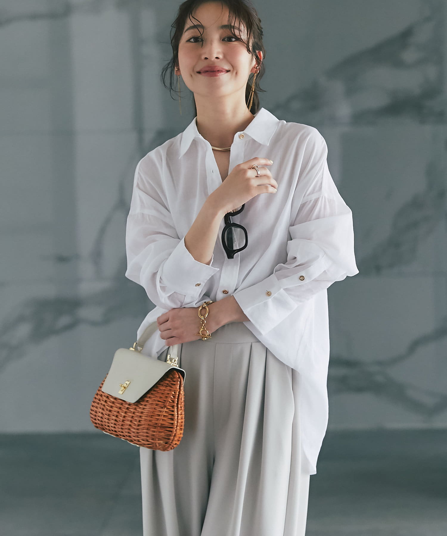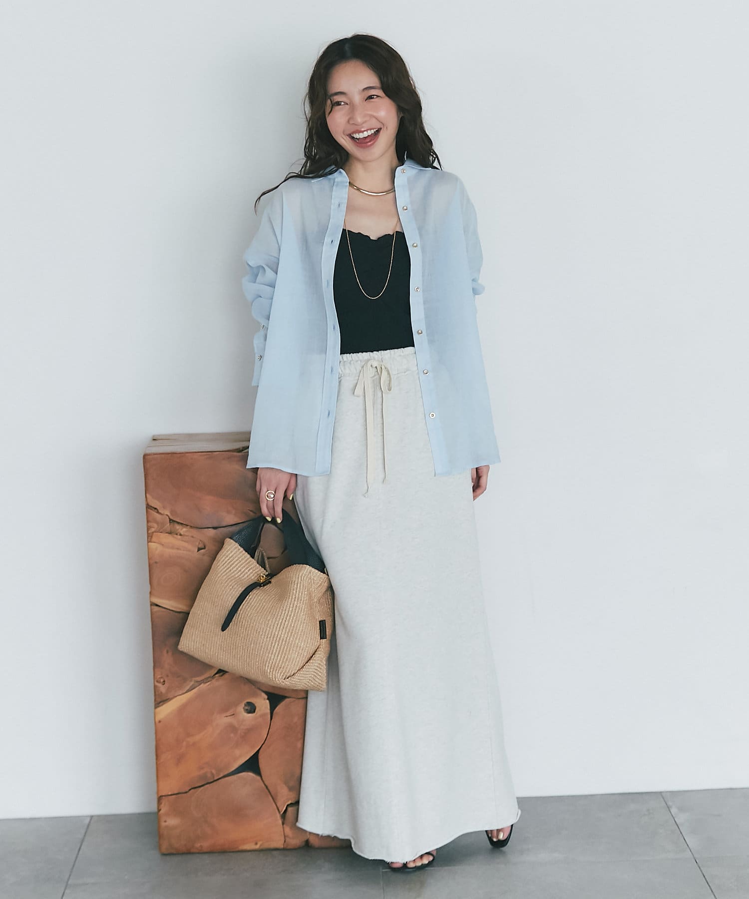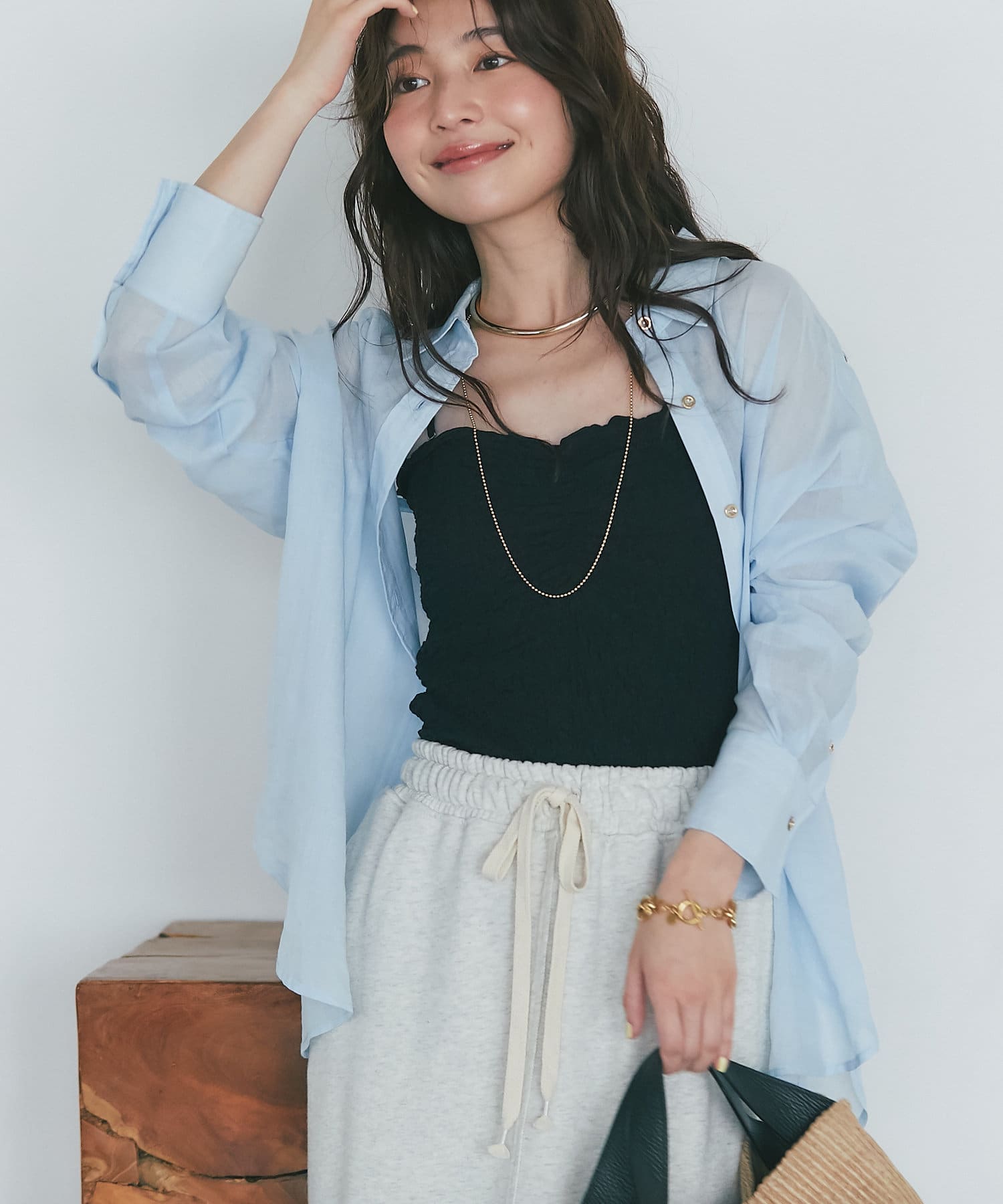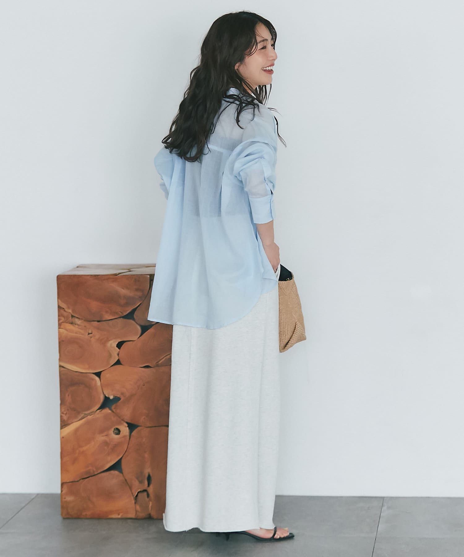 涼しげな透け感と、ゆったりとしたシルエットがこなれた雰囲気を演出します。