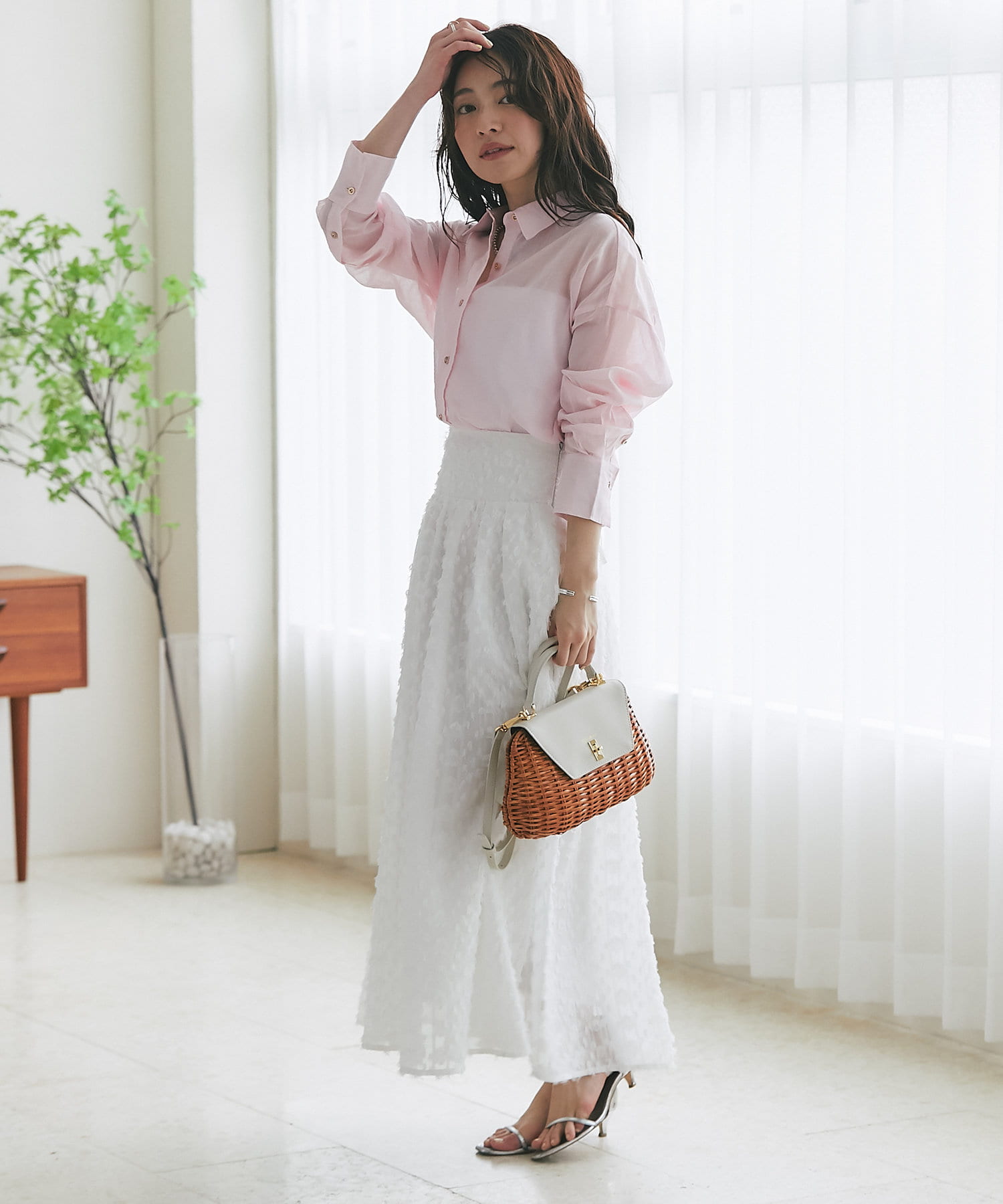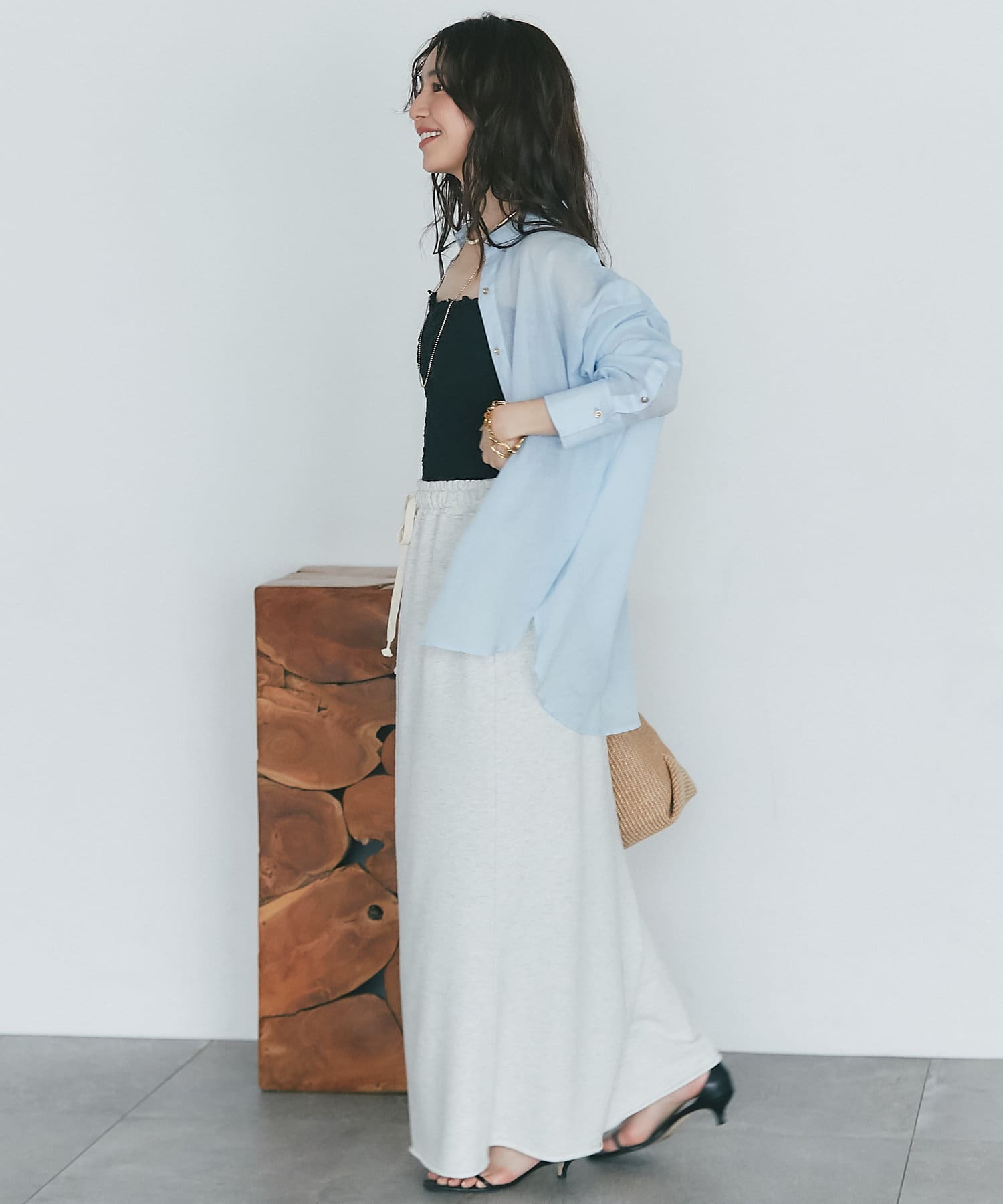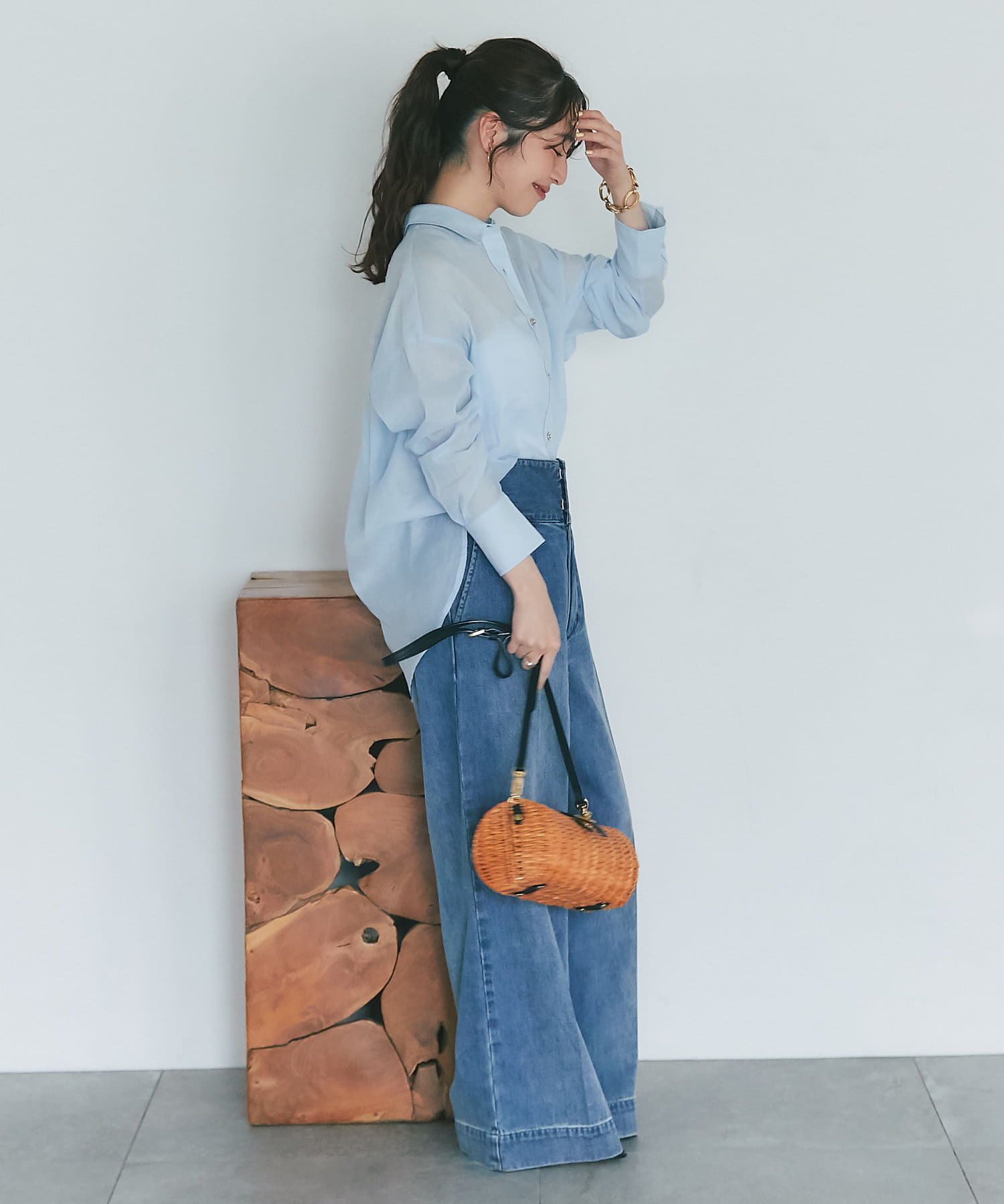 涼しげな透け感と、ゆったりとしたシルエットがこなれた雰囲気を演出します。
