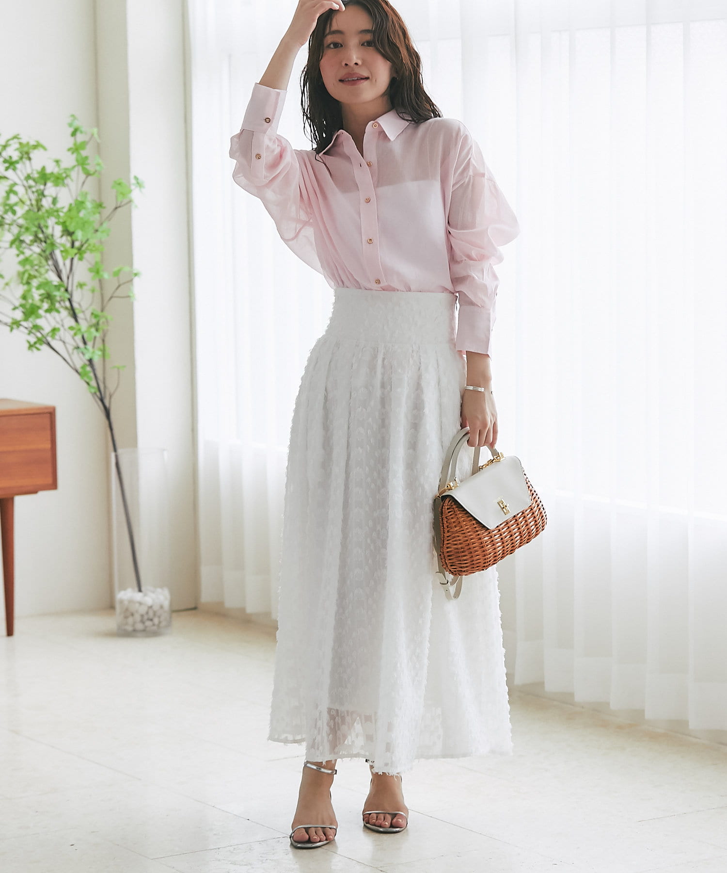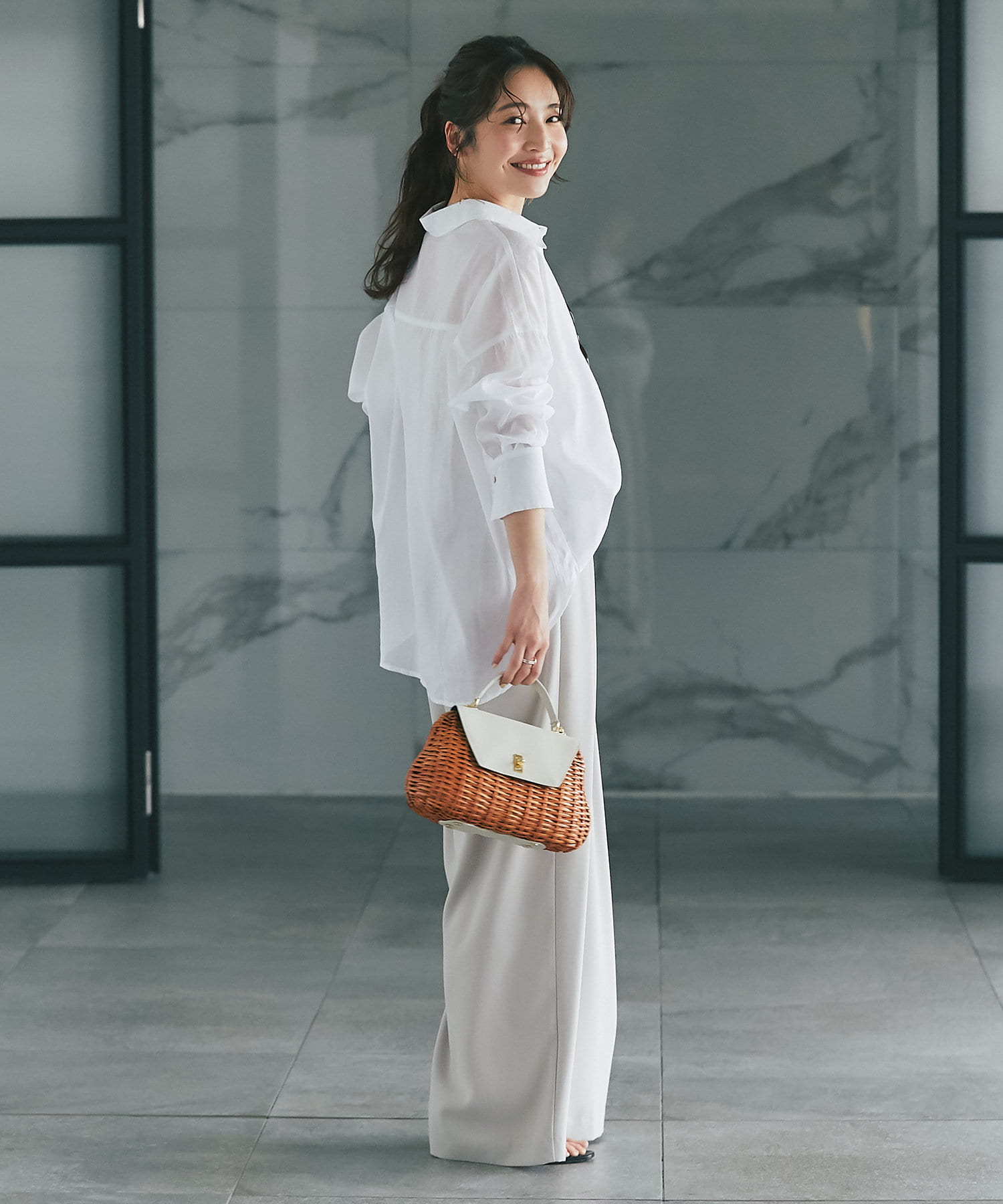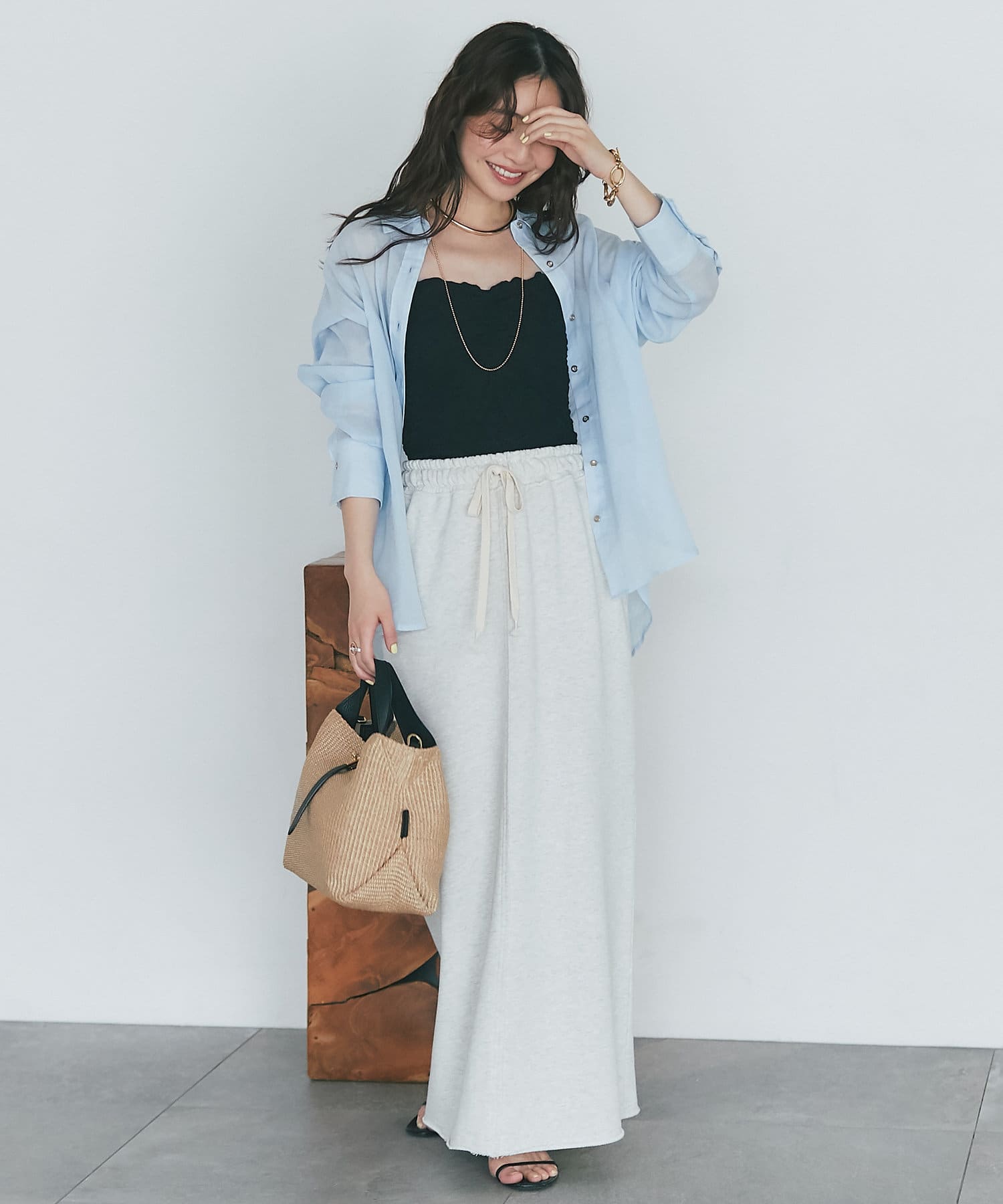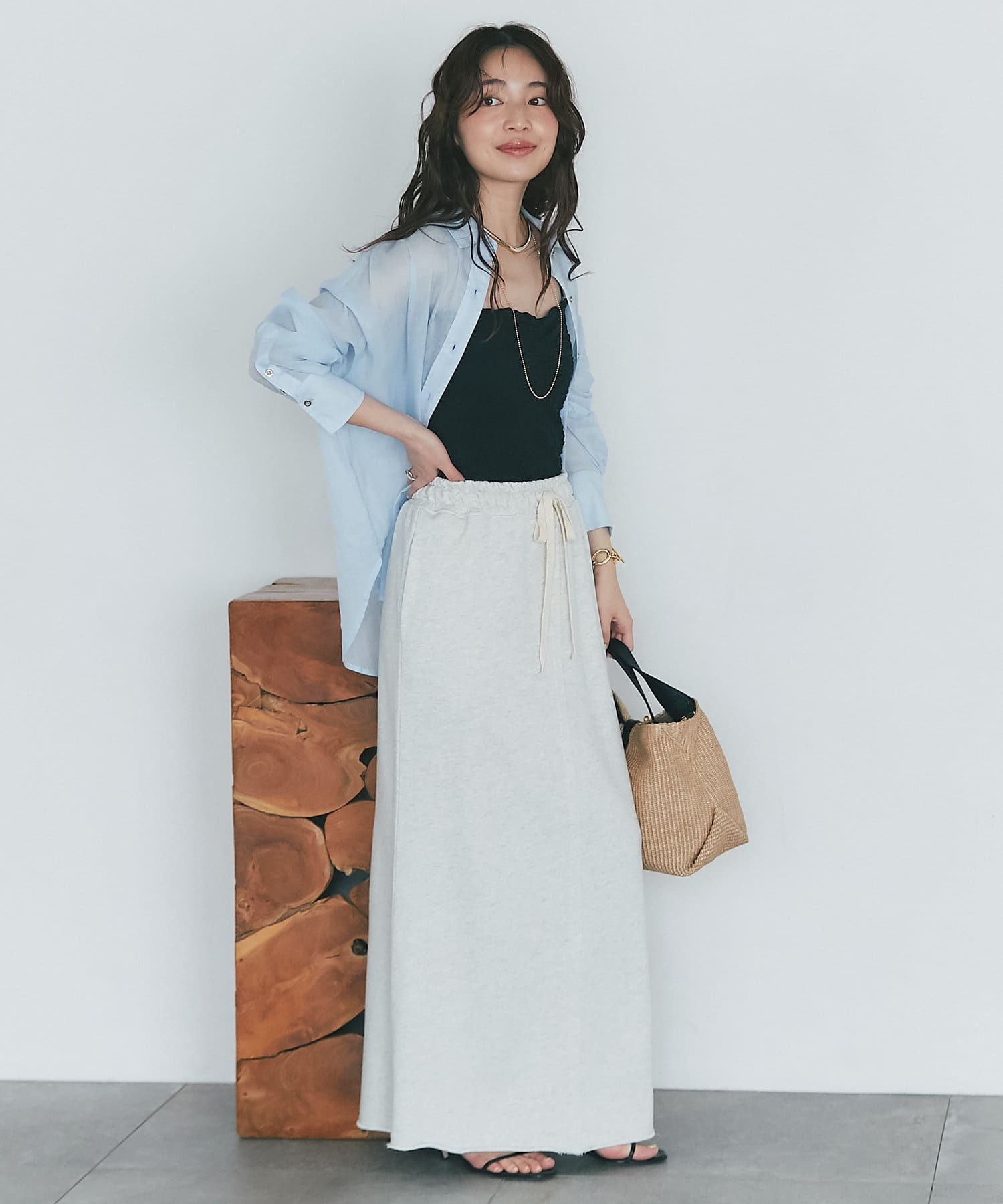 涼しげな透け感と、ゆったりとしたシルエットがこなれた雰囲気を演出します。