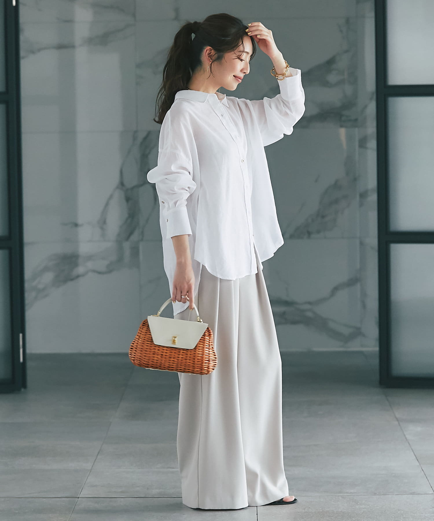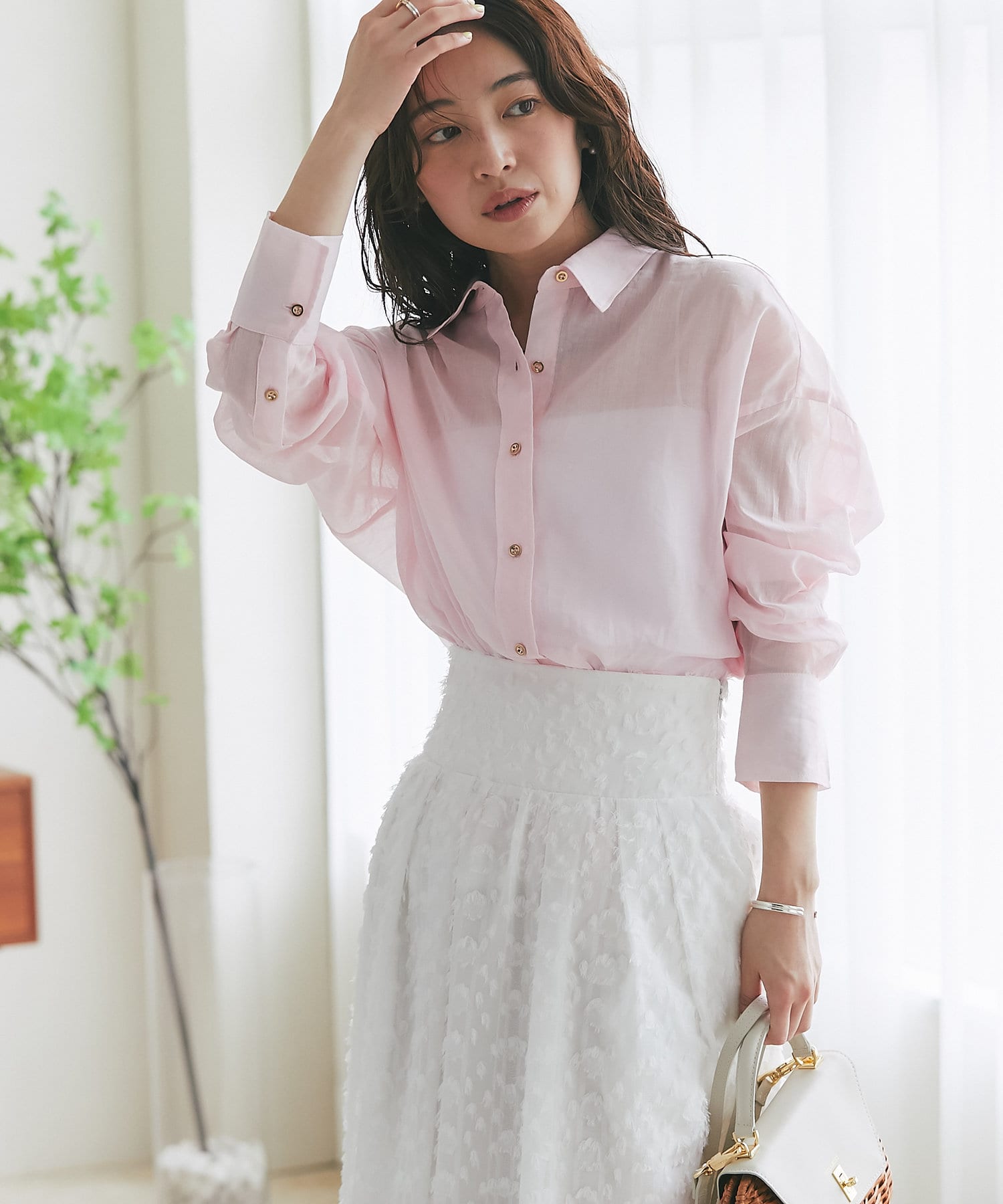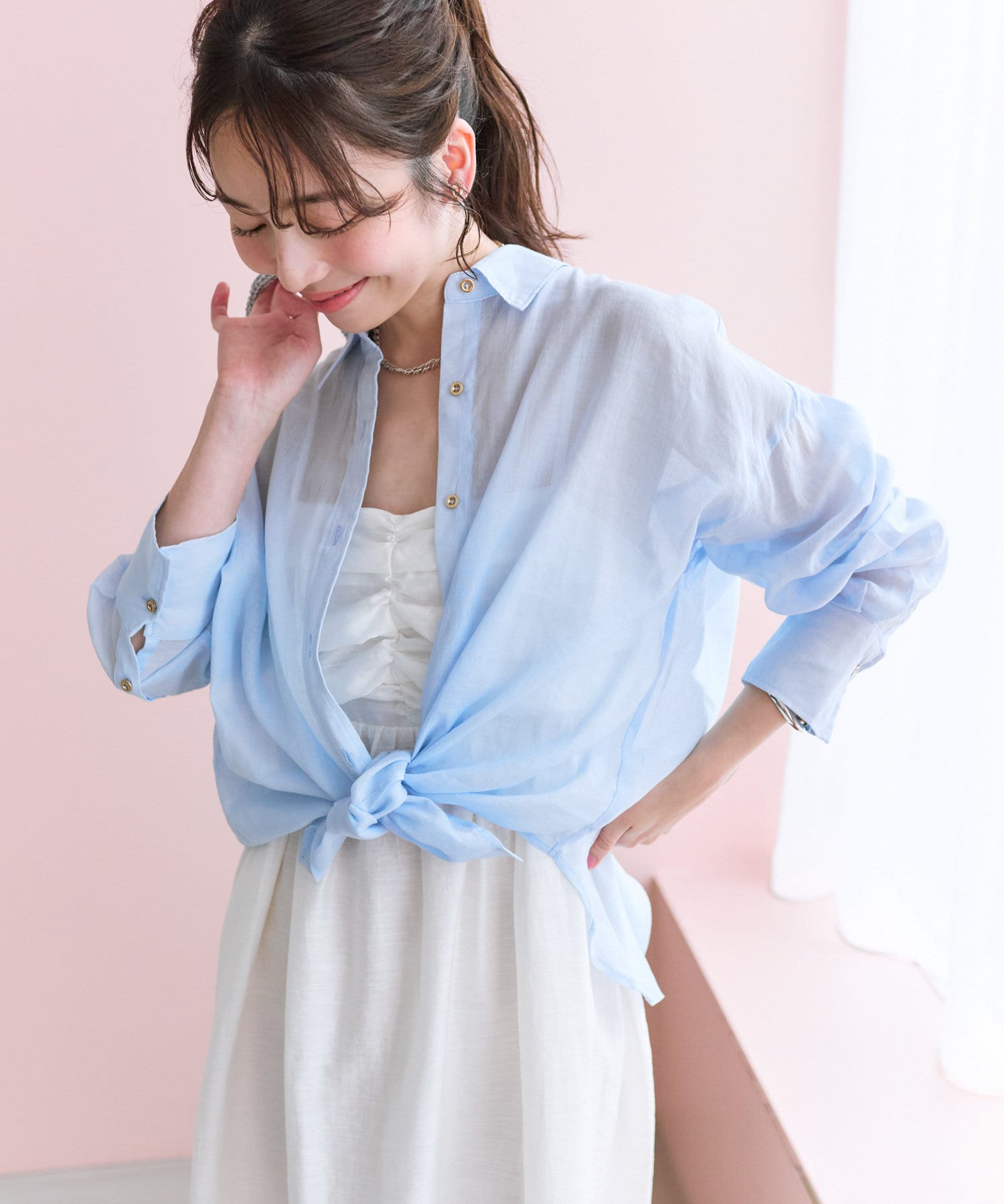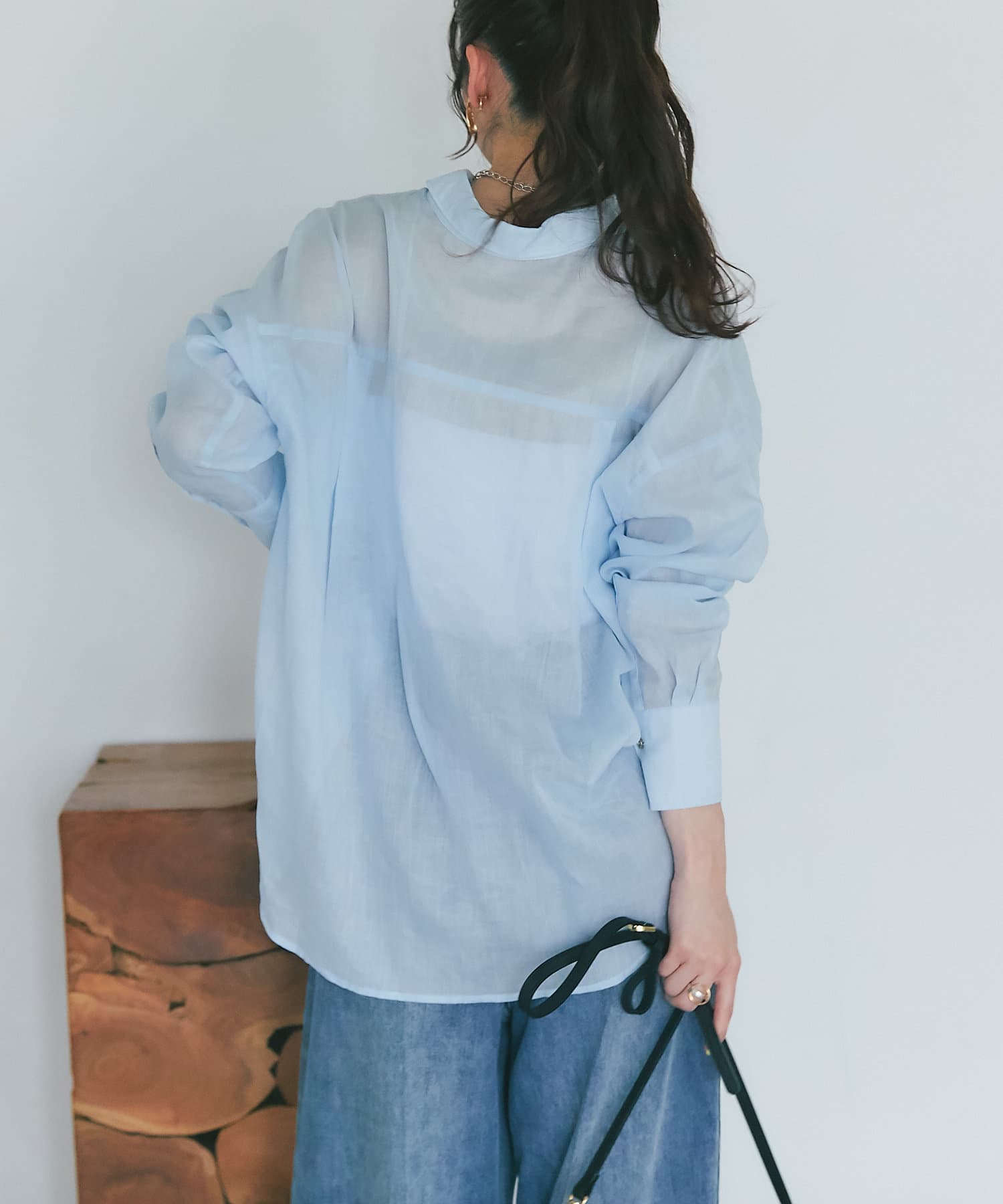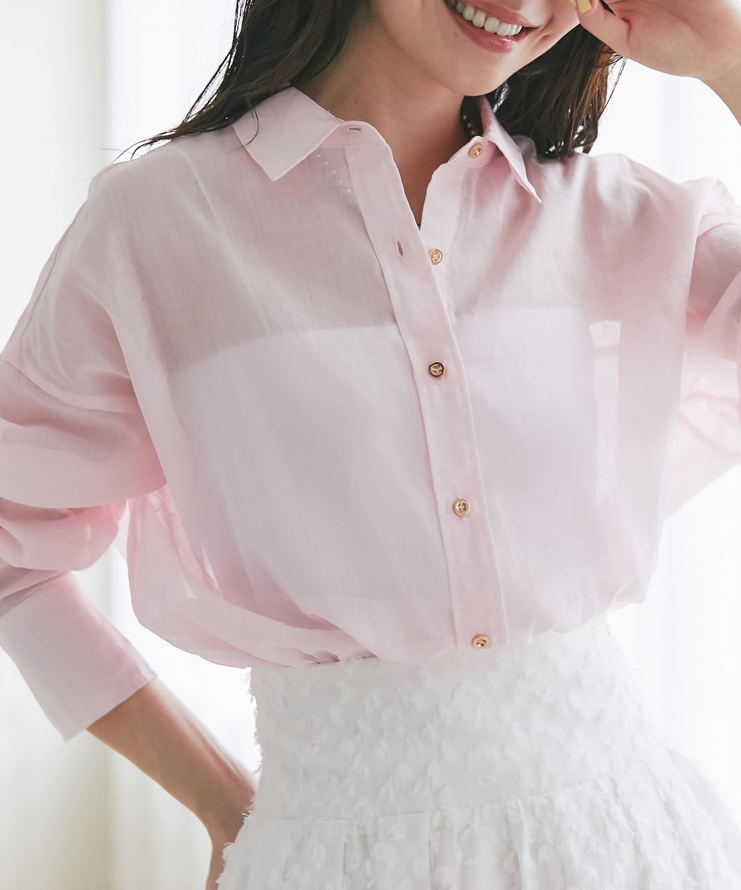 抜け感のある大人の女性にぴったりの、シアーリネンコットンシャツ。