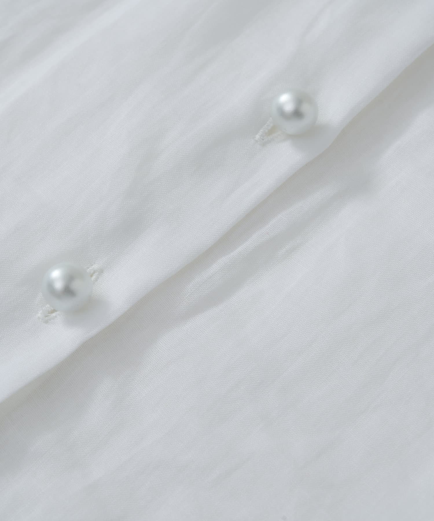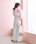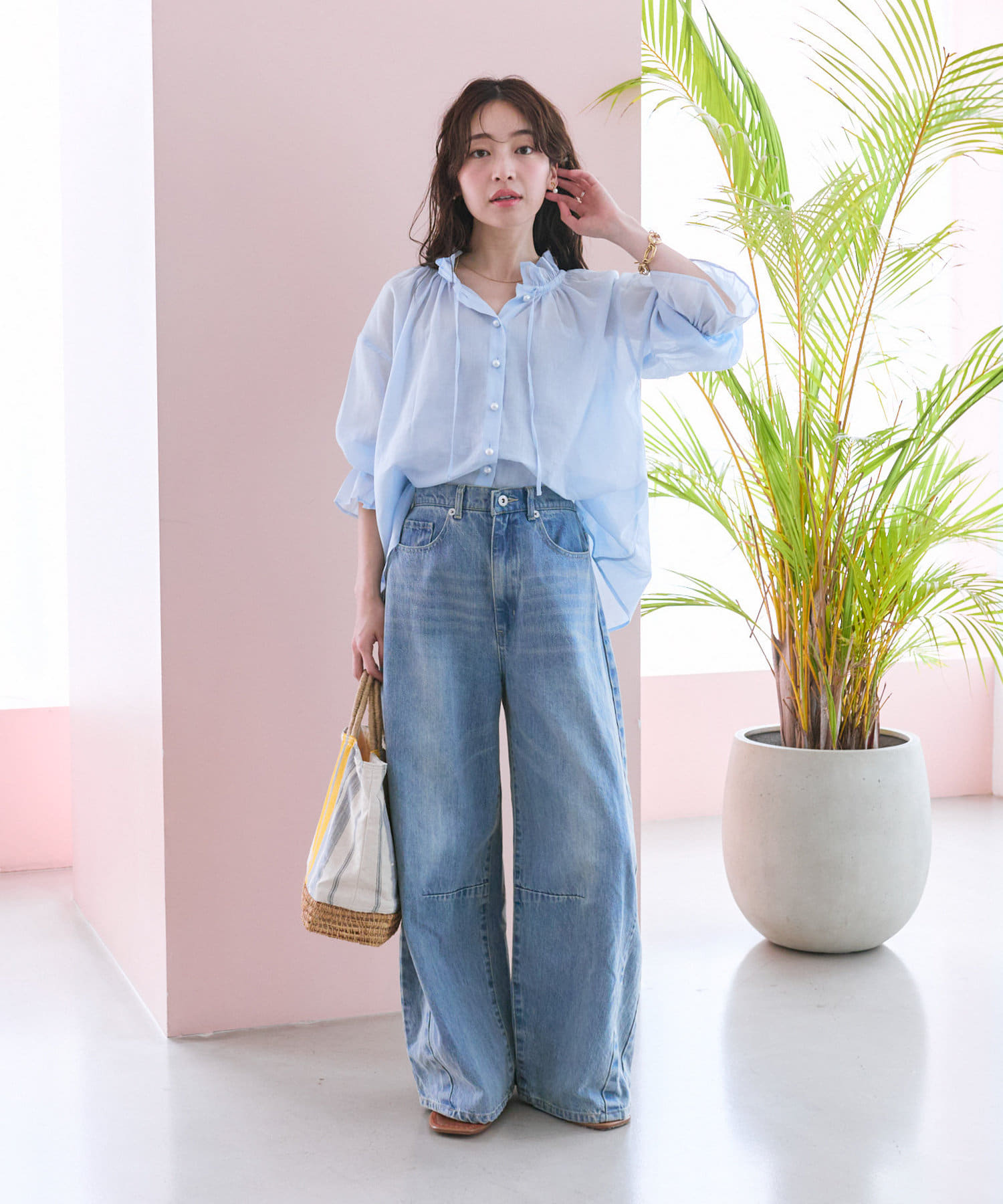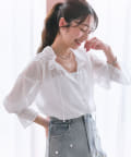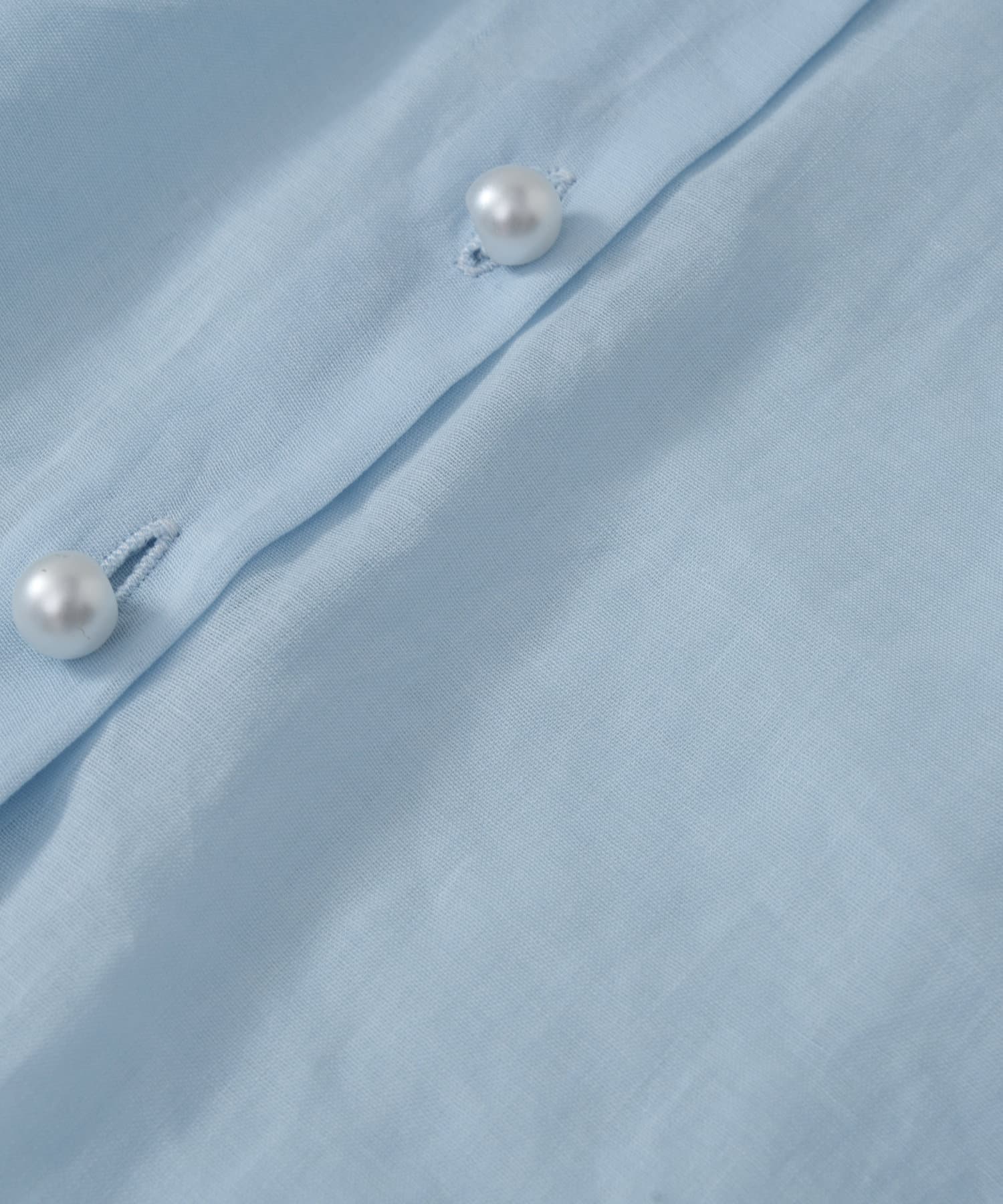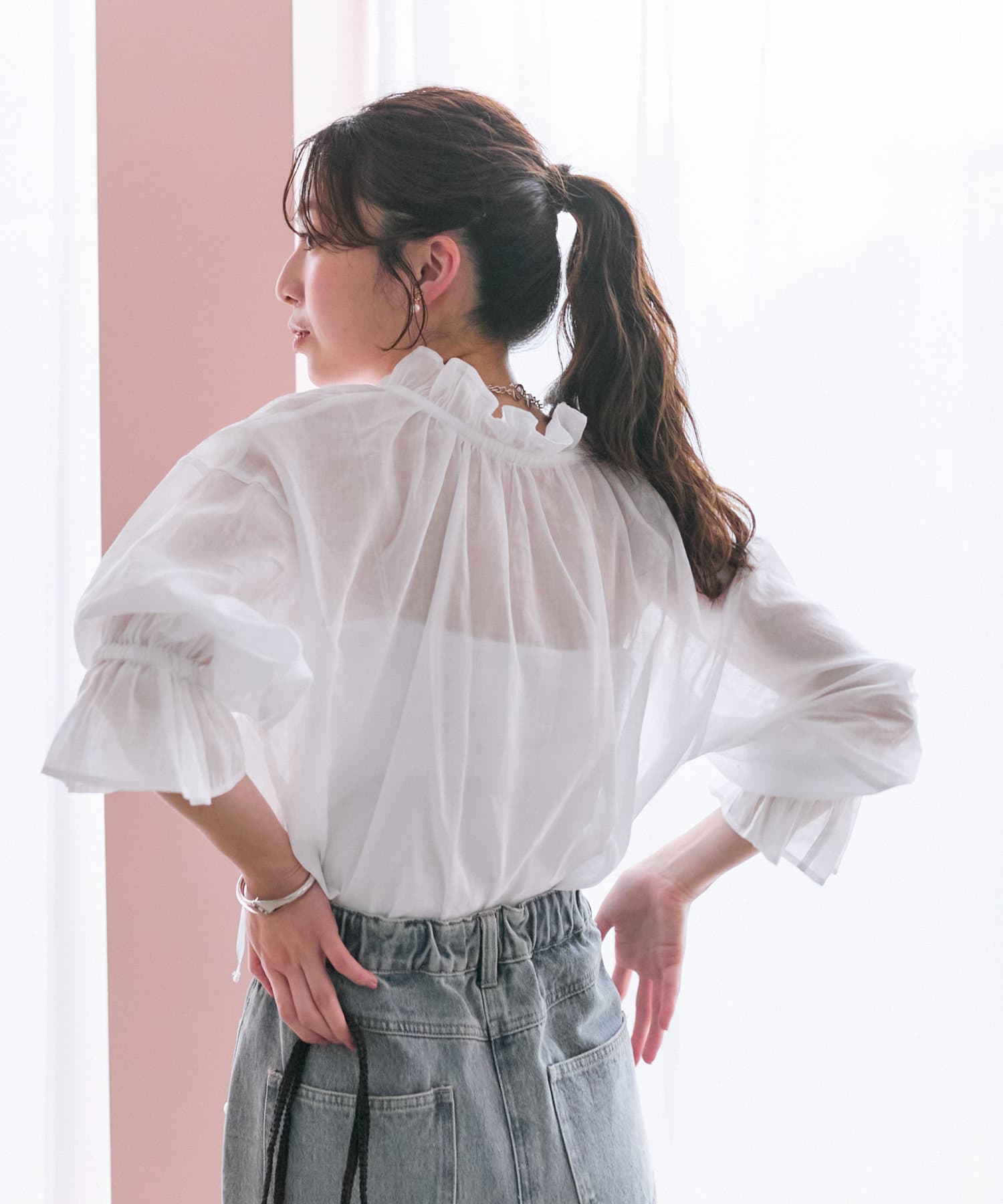 【愛されエアリーブラウス】シアーリネン混パール釦リボンブラウス
