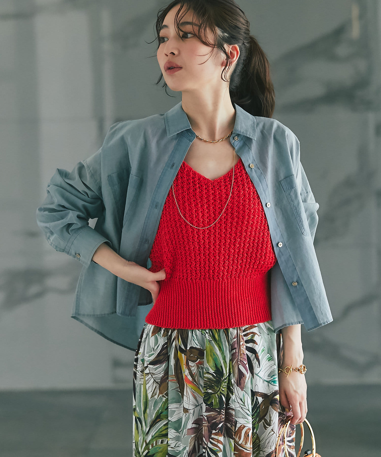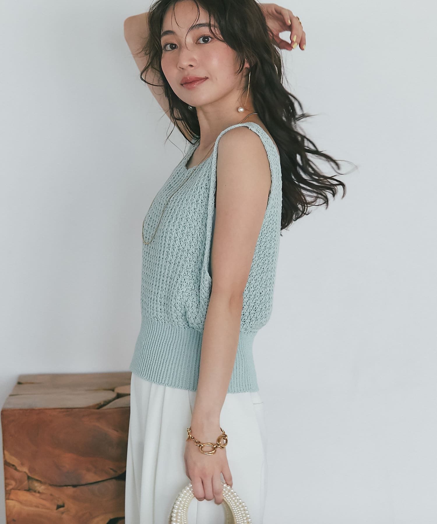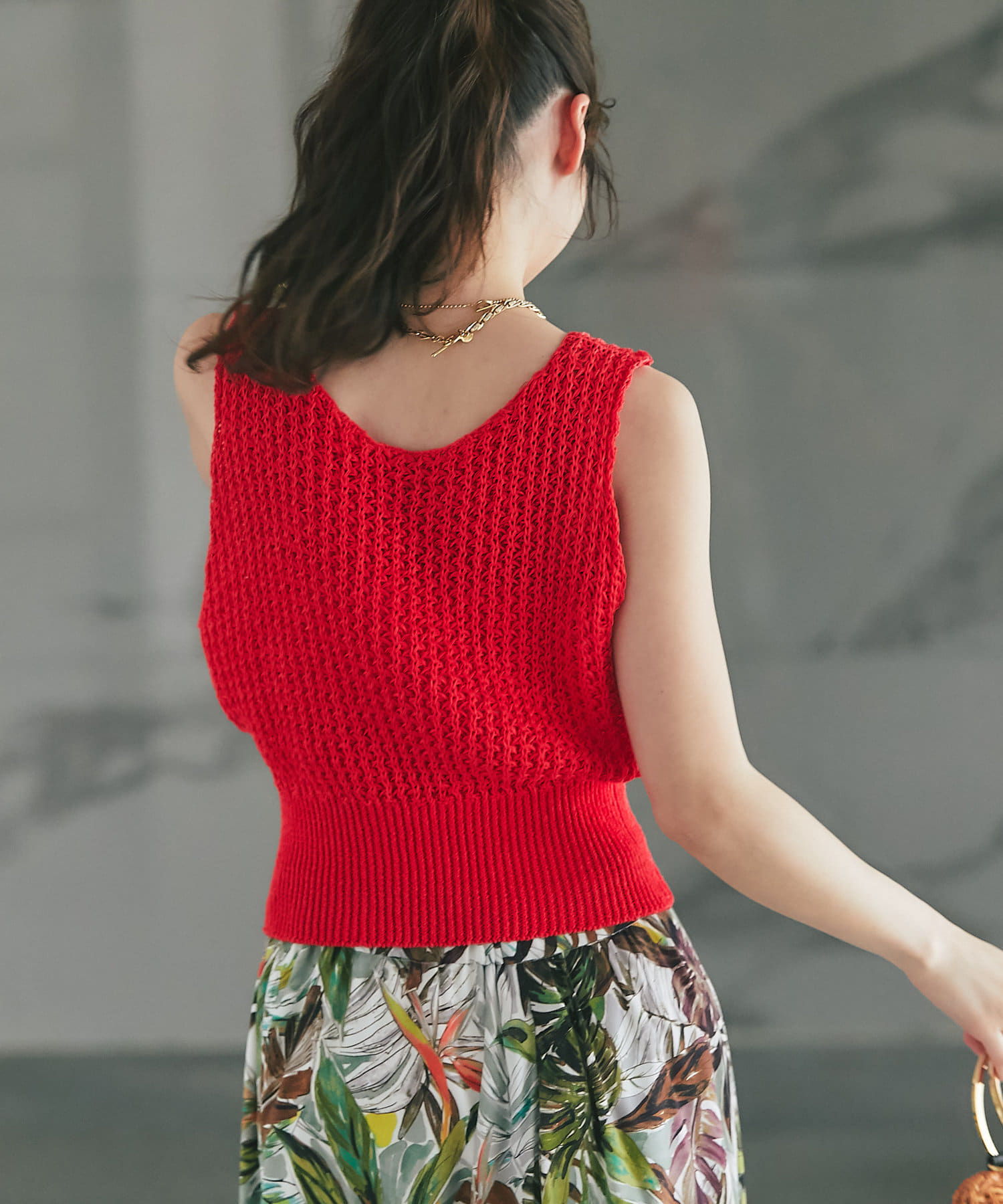 1枚で着られるコンパクトなニットベスト。
