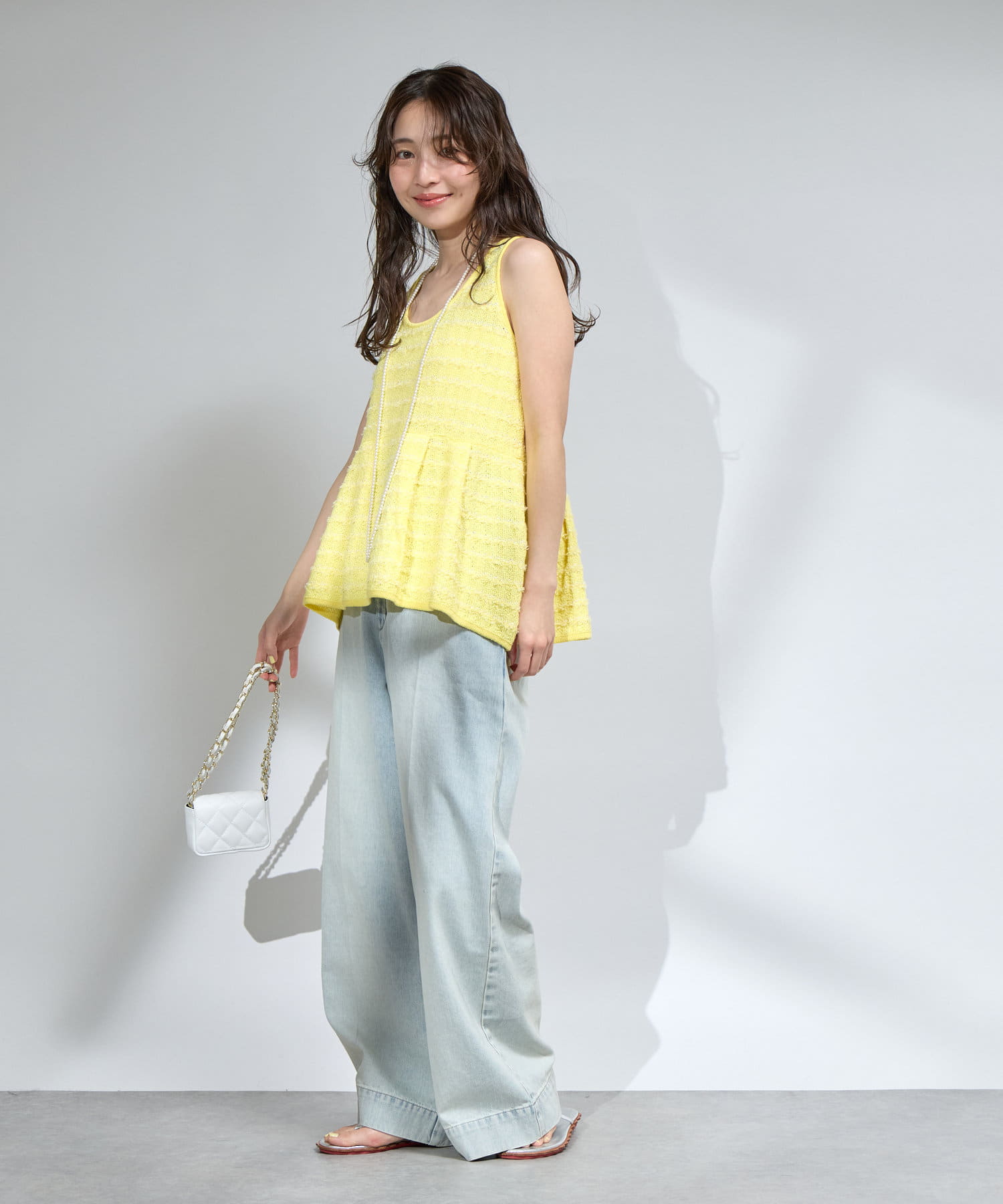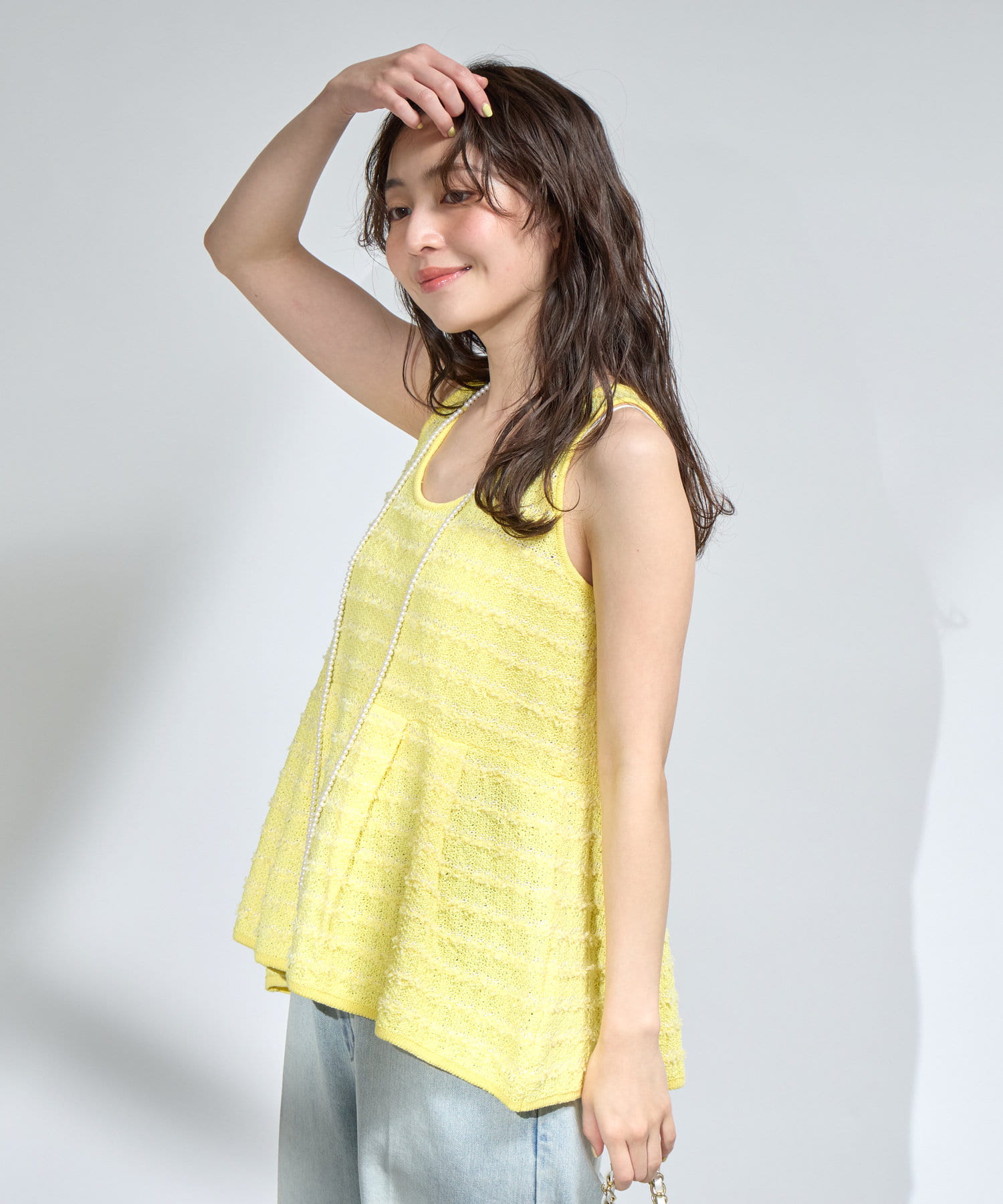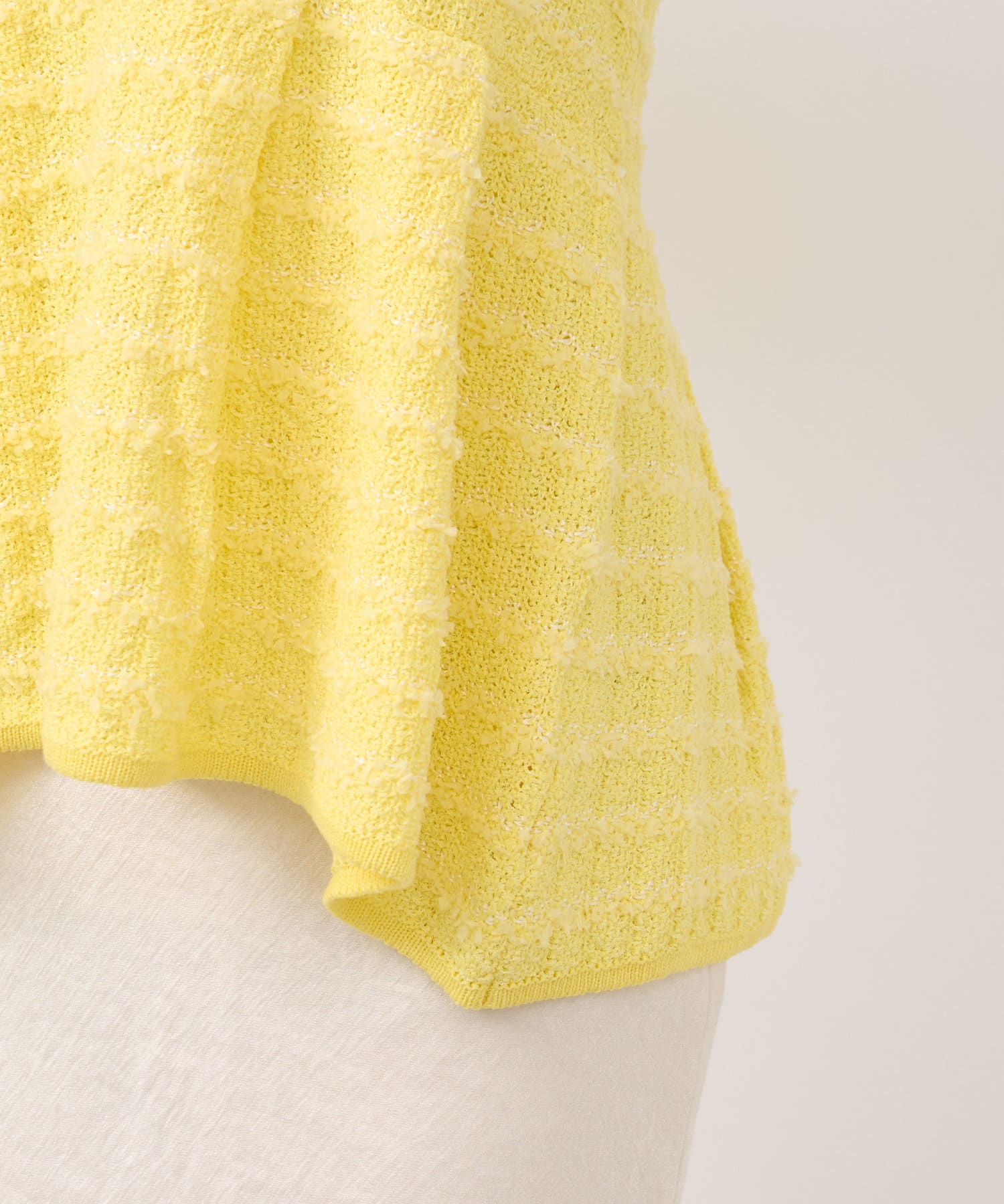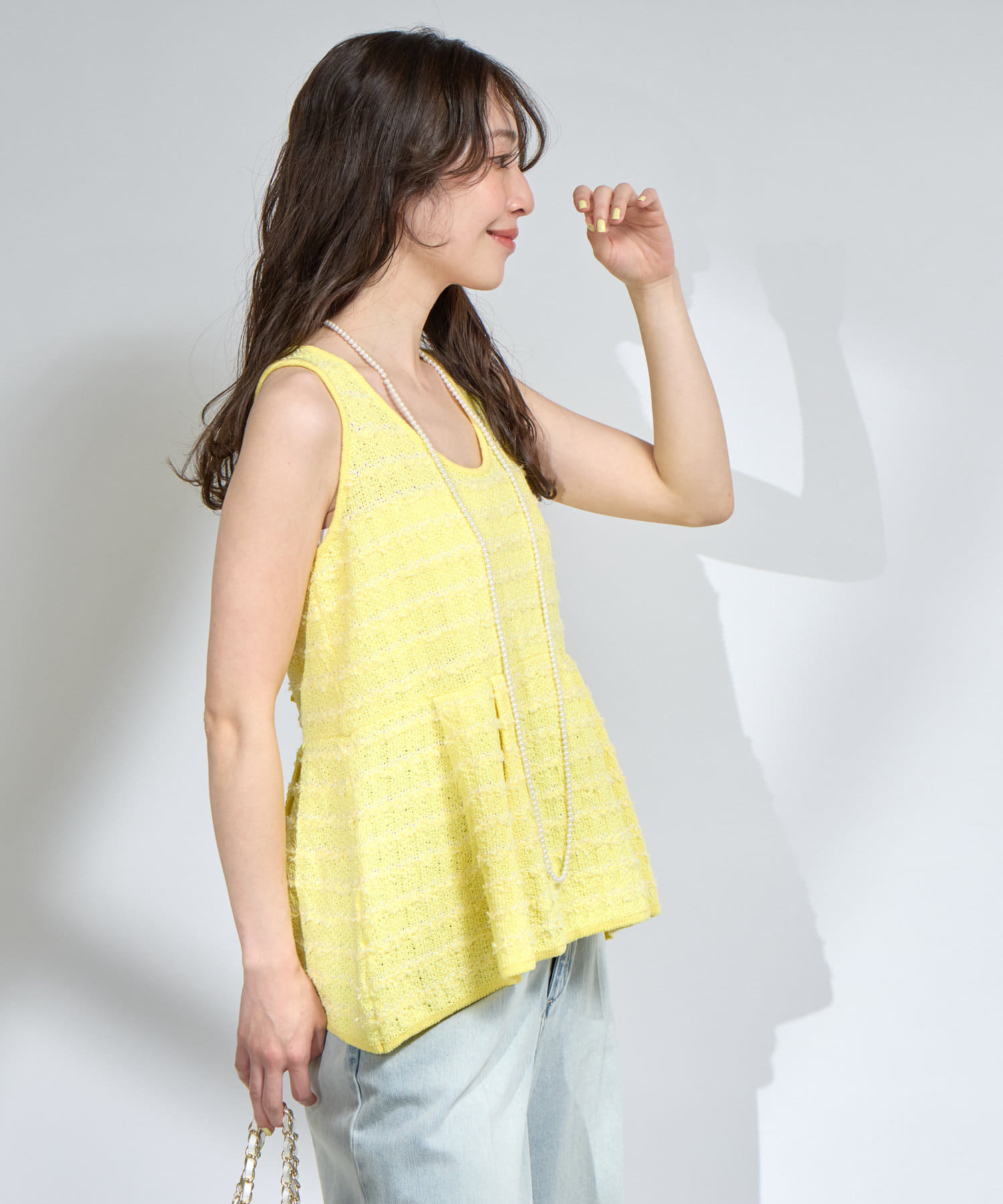 【きれい目カジュアル】ツイードノースリペプラムニット