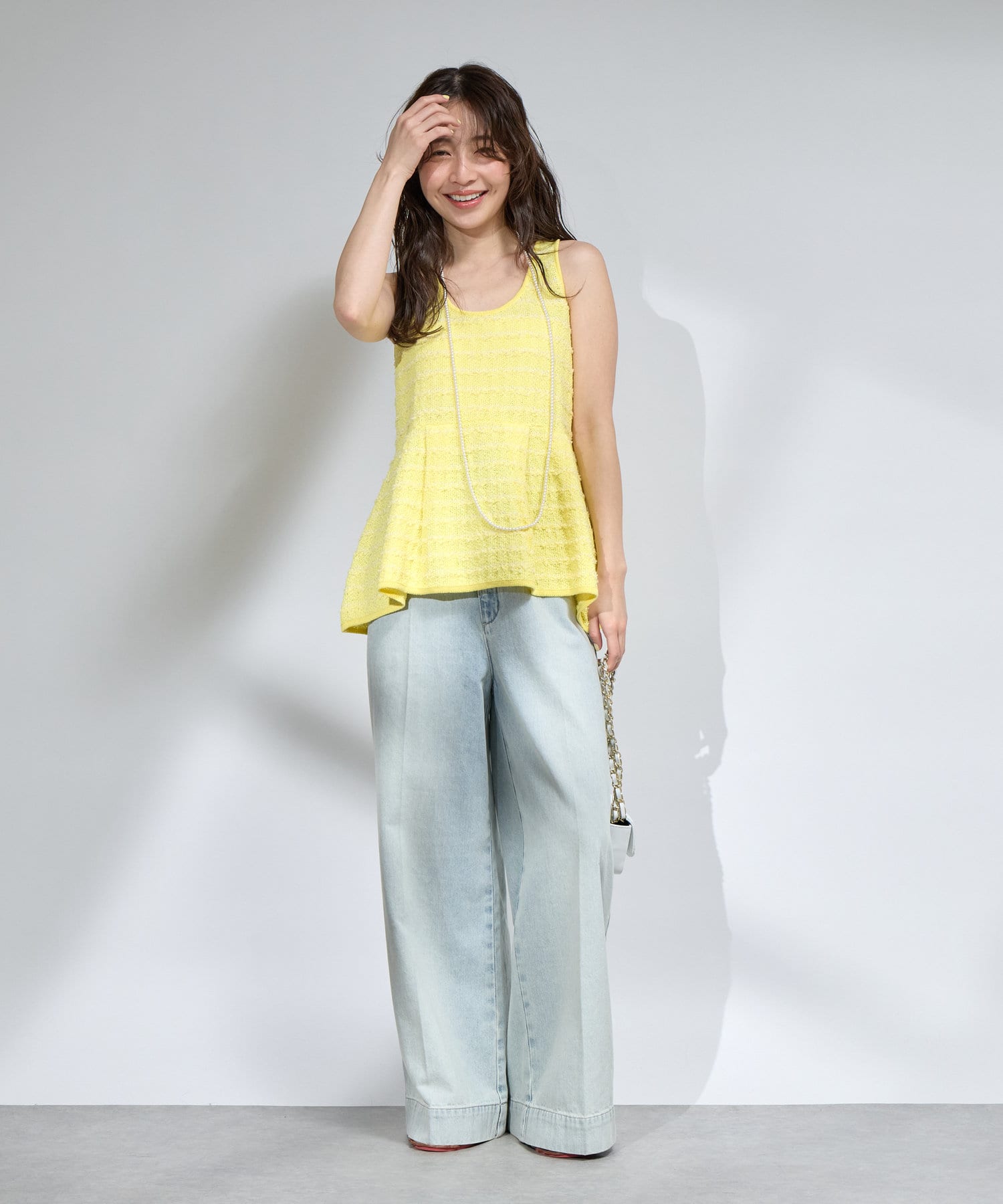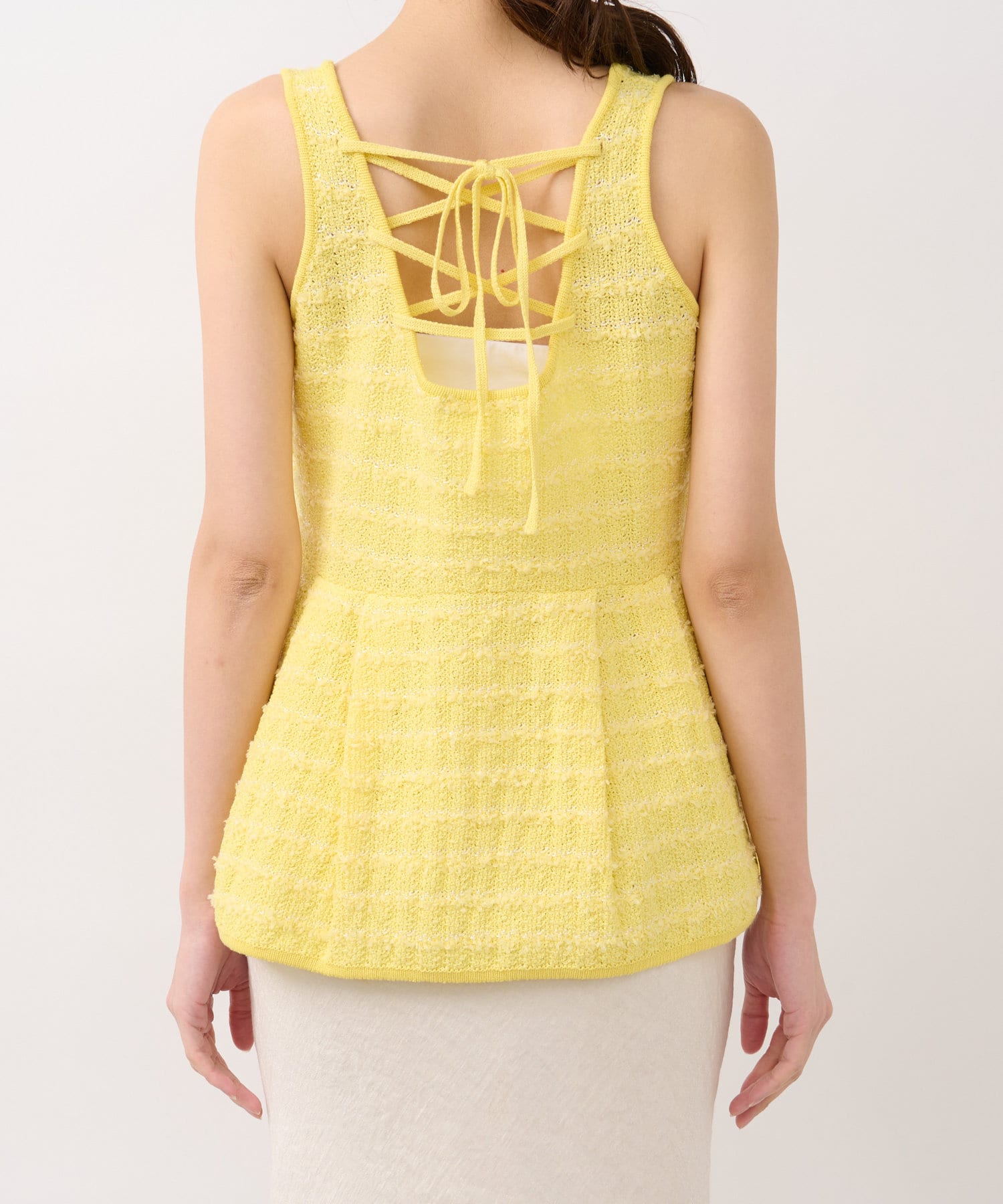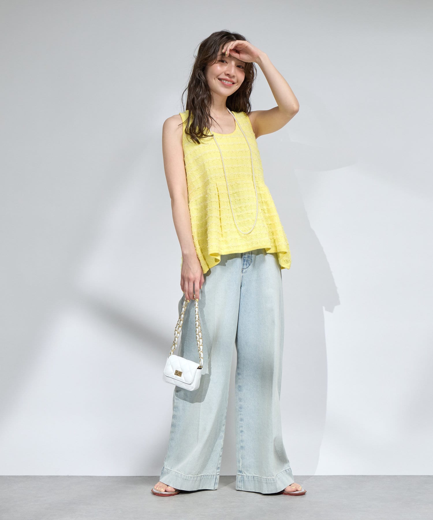 【きれい目カジュアル】ツイードノースリペプラムニット