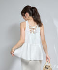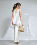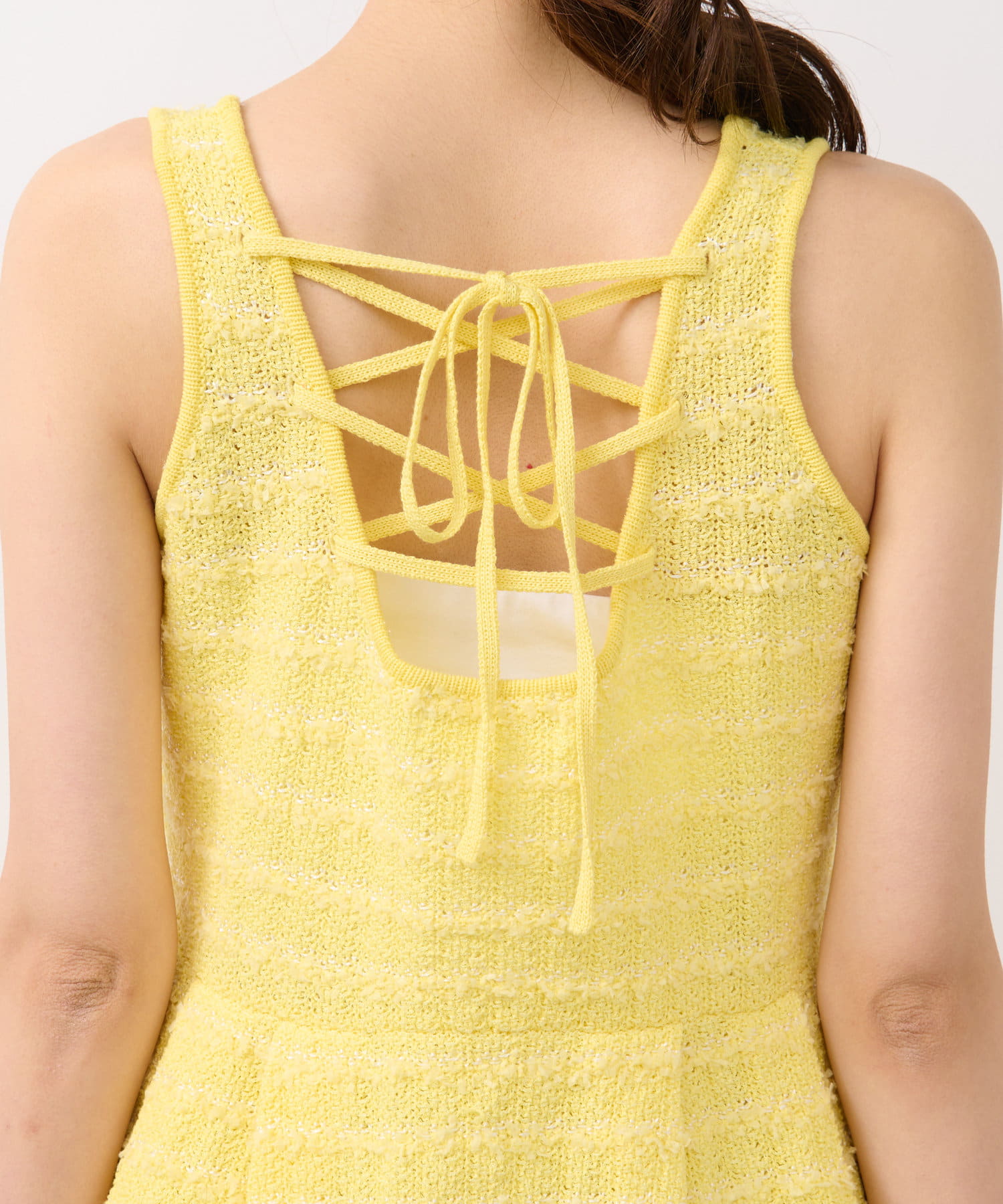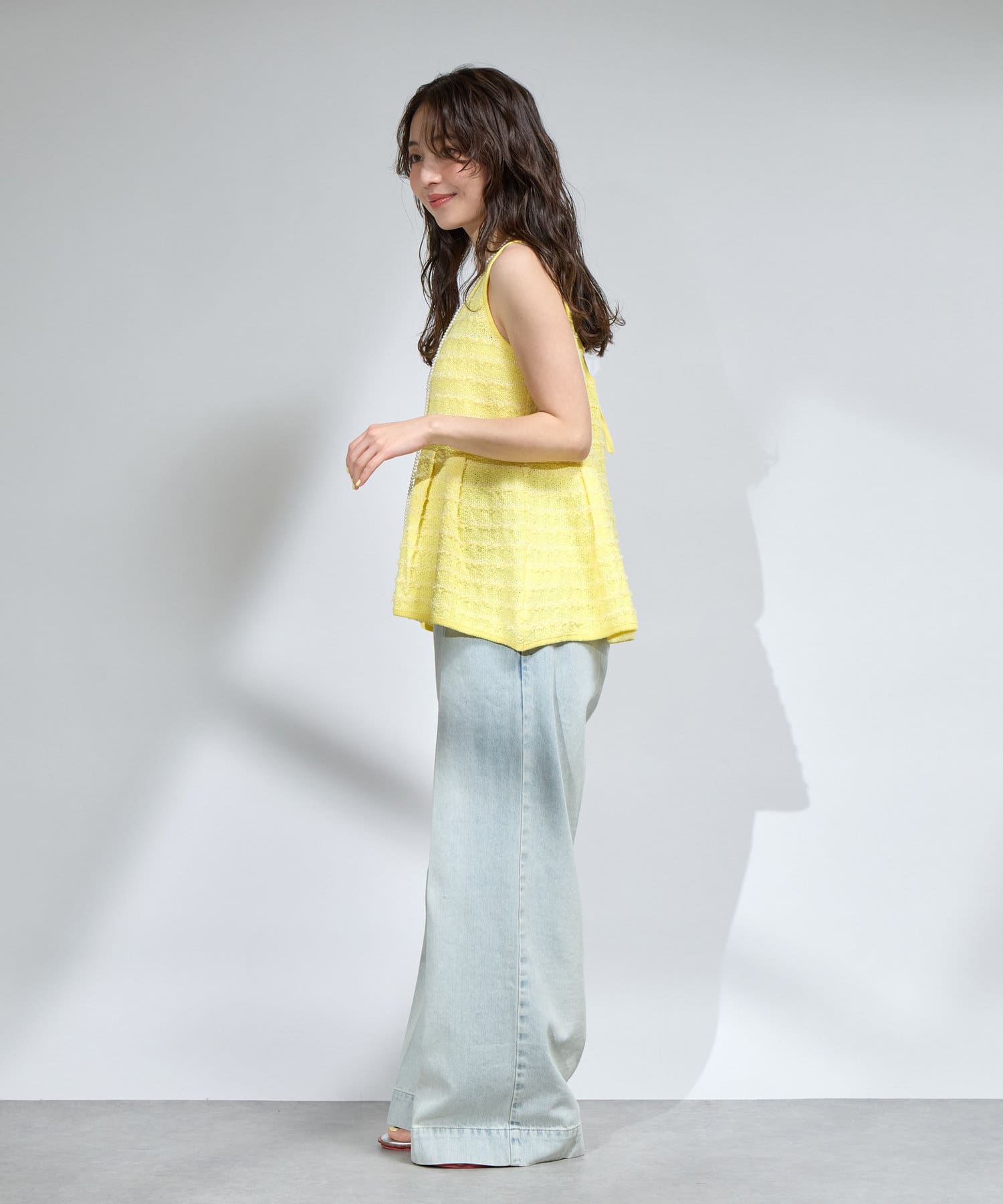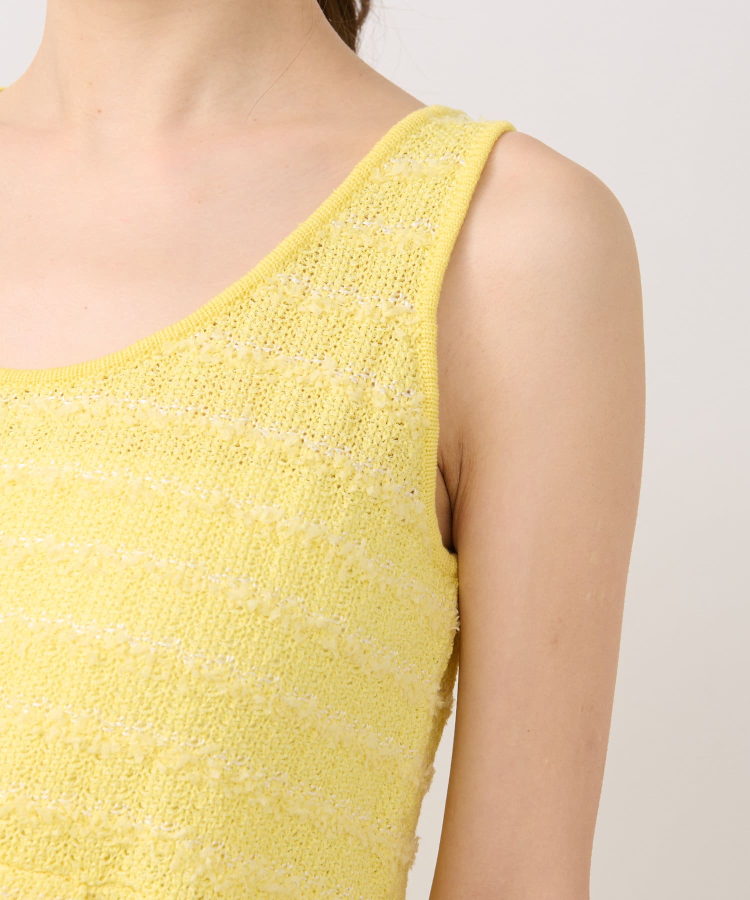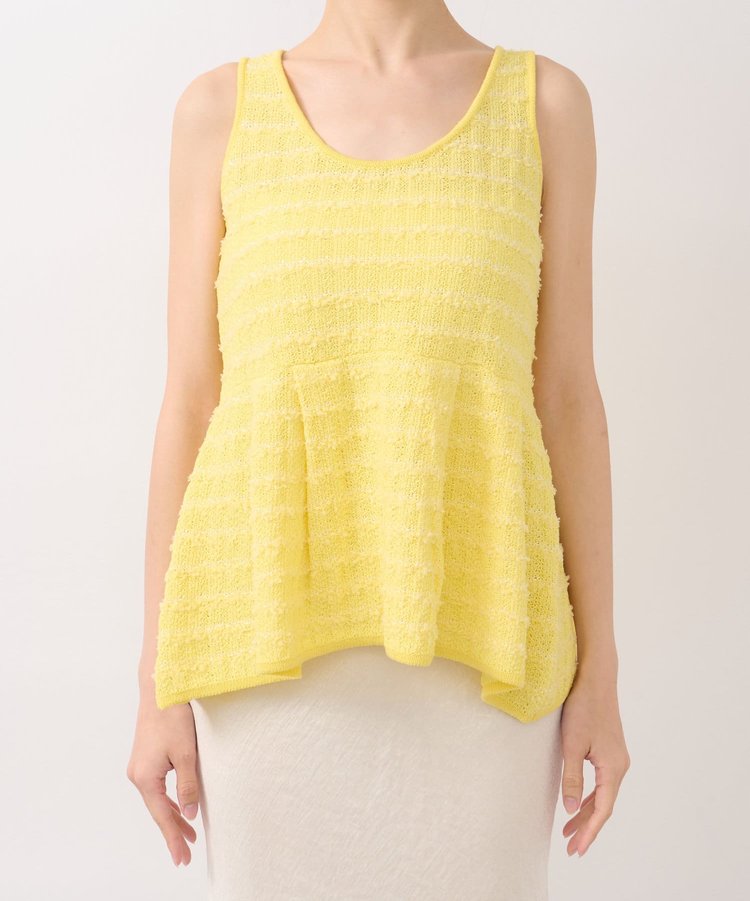【きれい目カジュアル】ツイードノースリペプラムニット