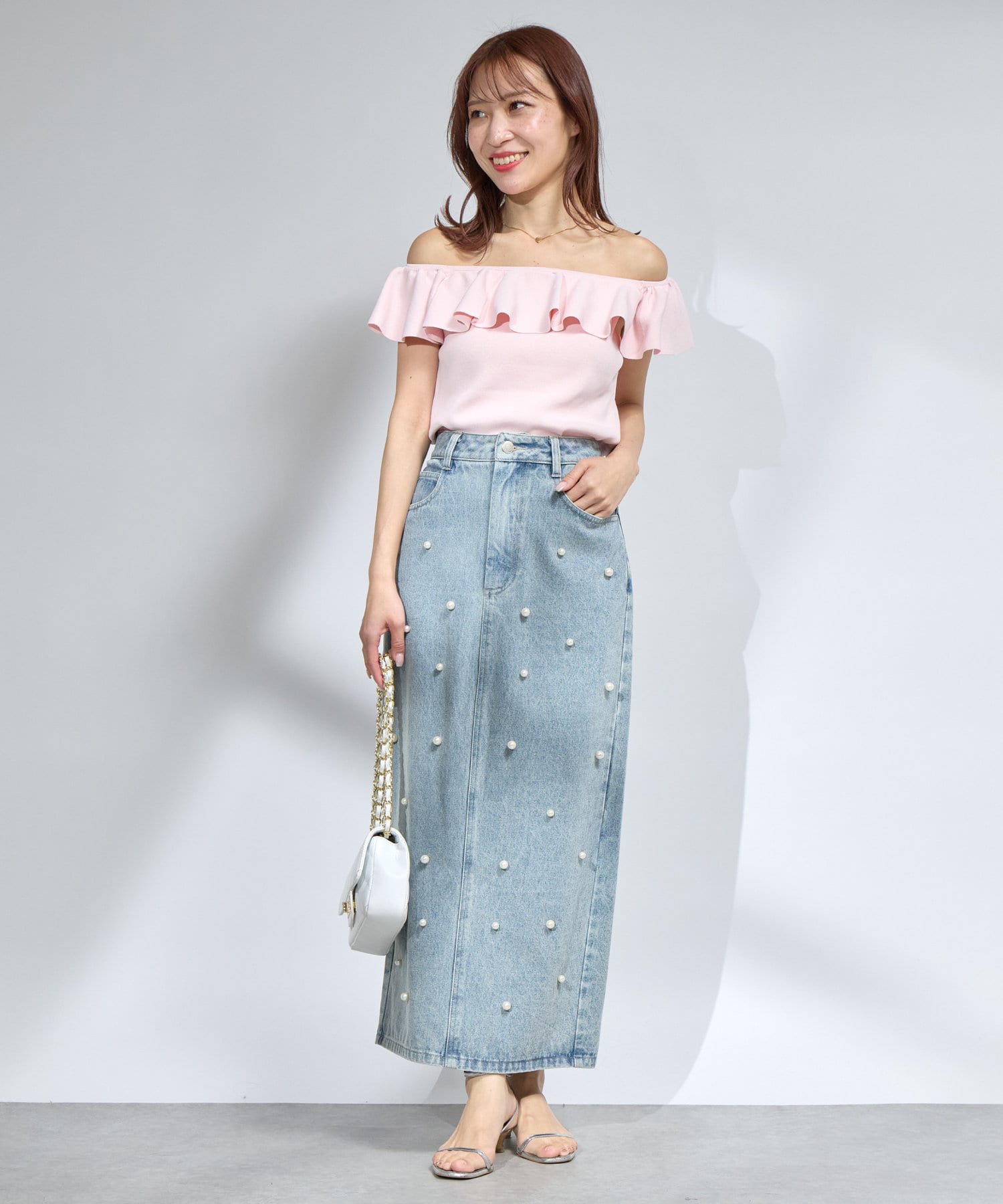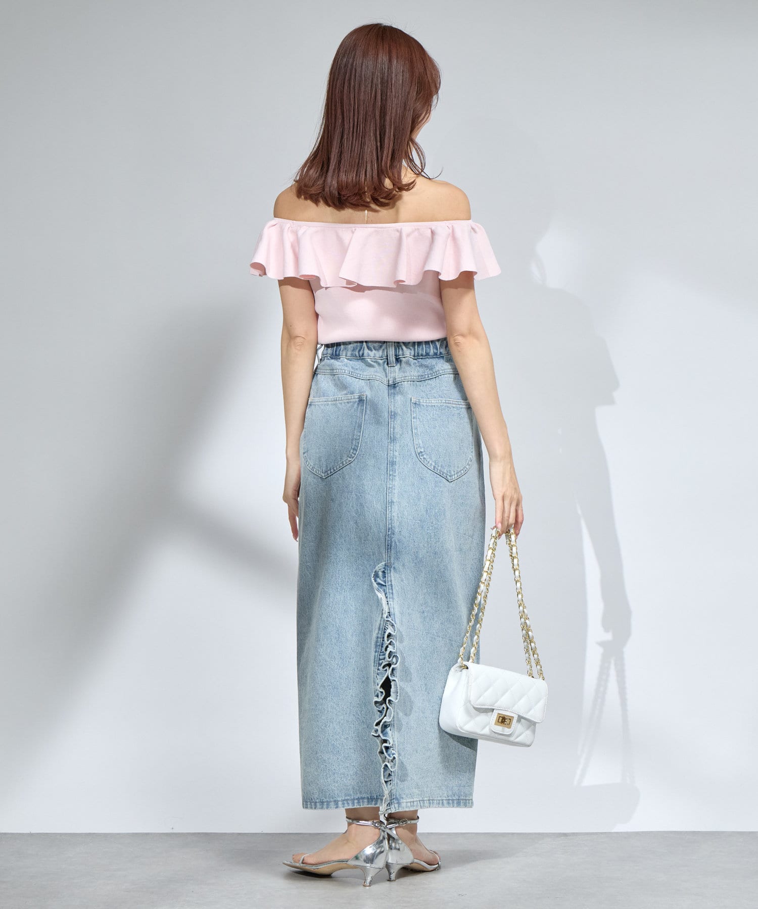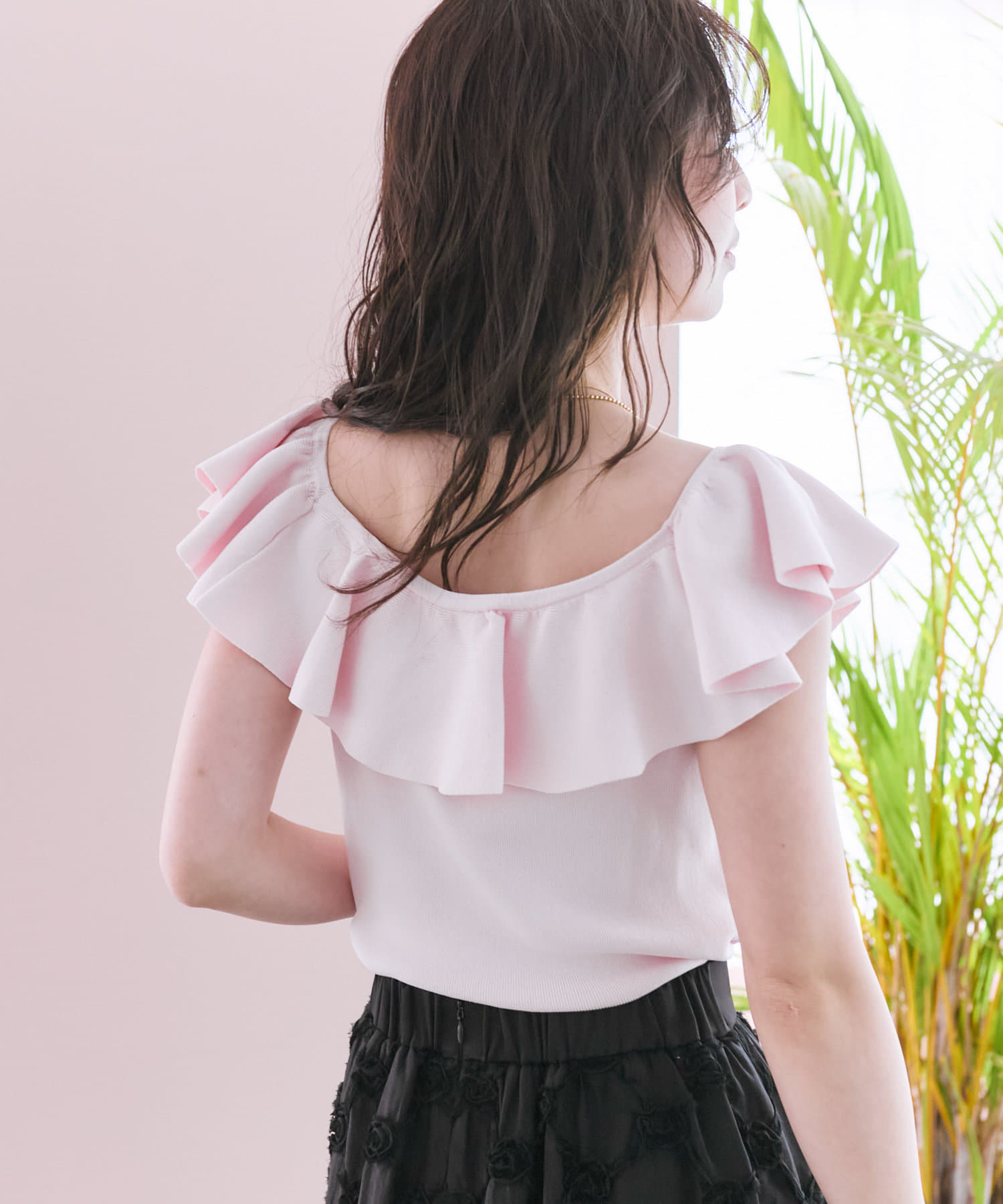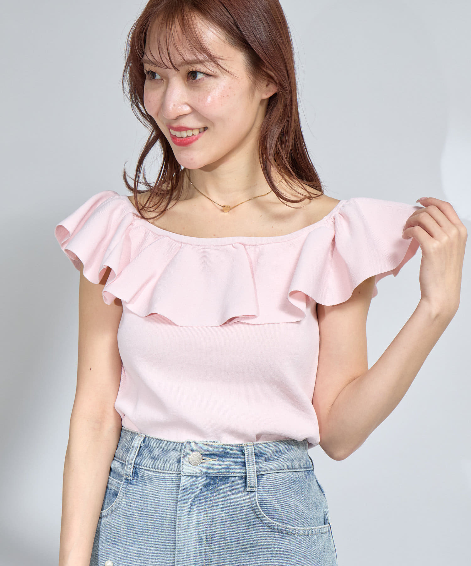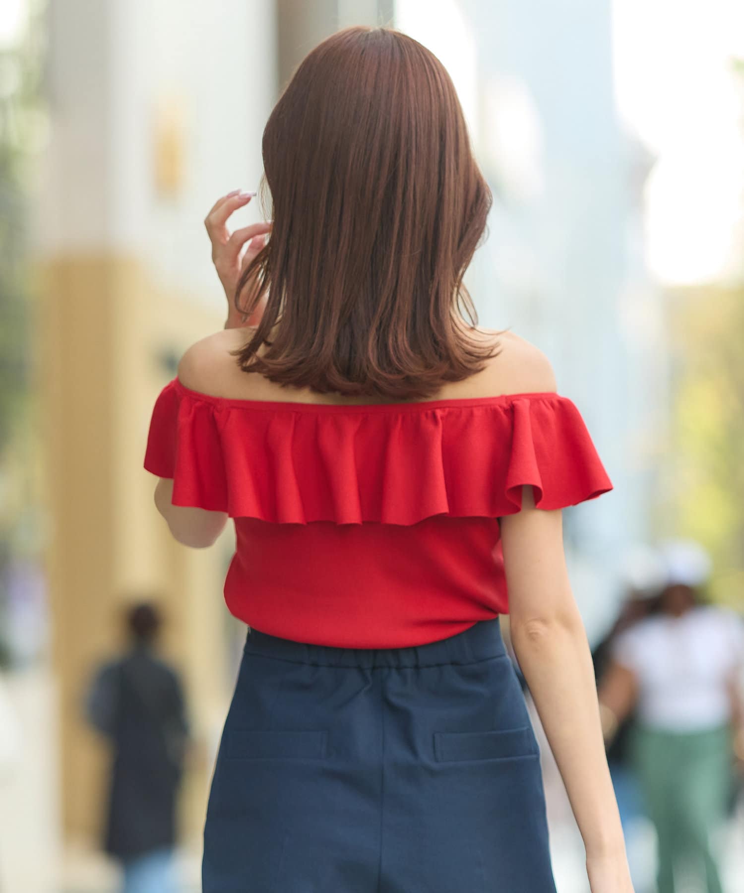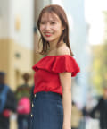 【スタッフKAZUMI監修カラー】クールタッチUVオフショルラッフルニット