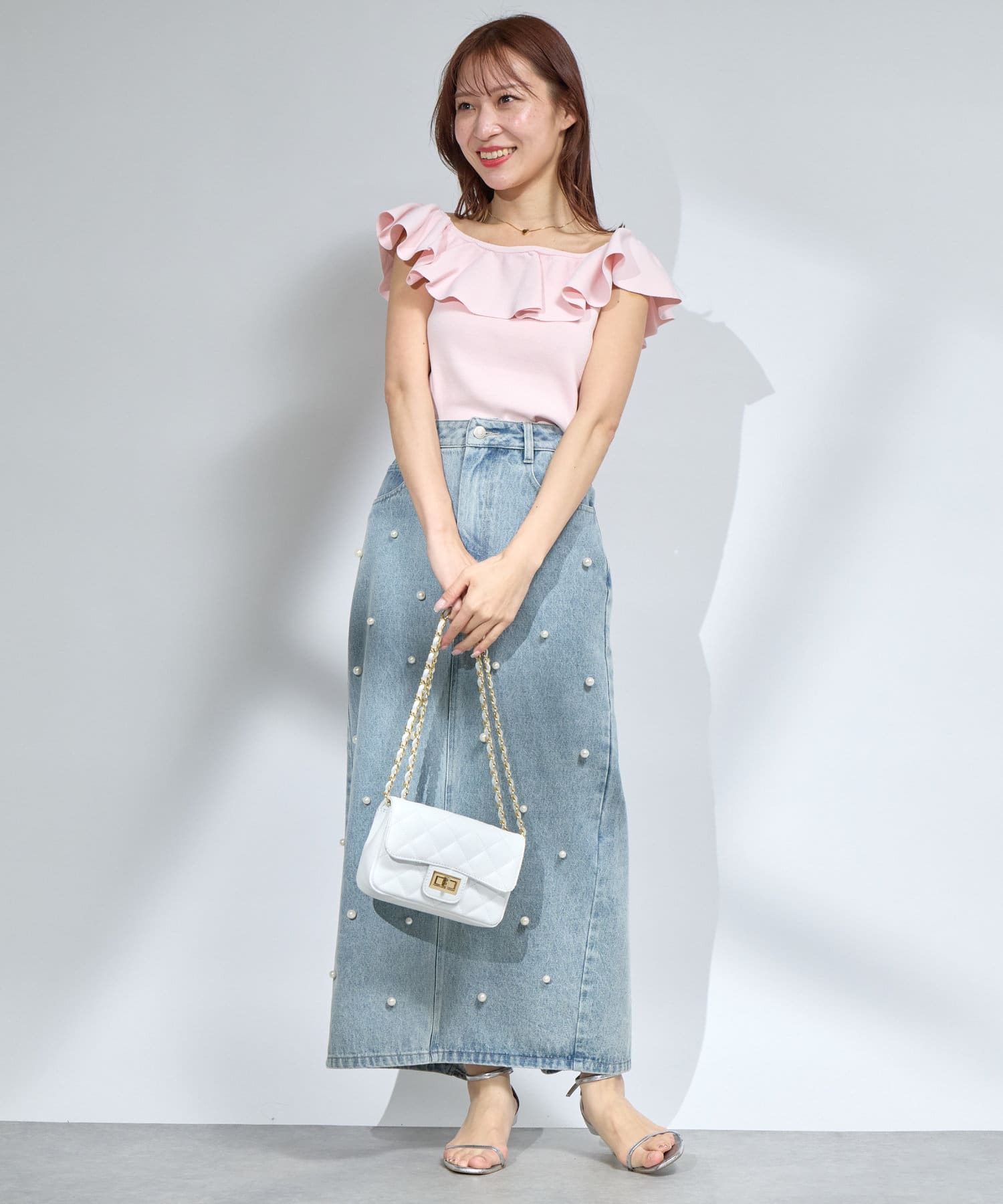 スカートなど華やかなボトム合わせに使いやすいアイテムです。