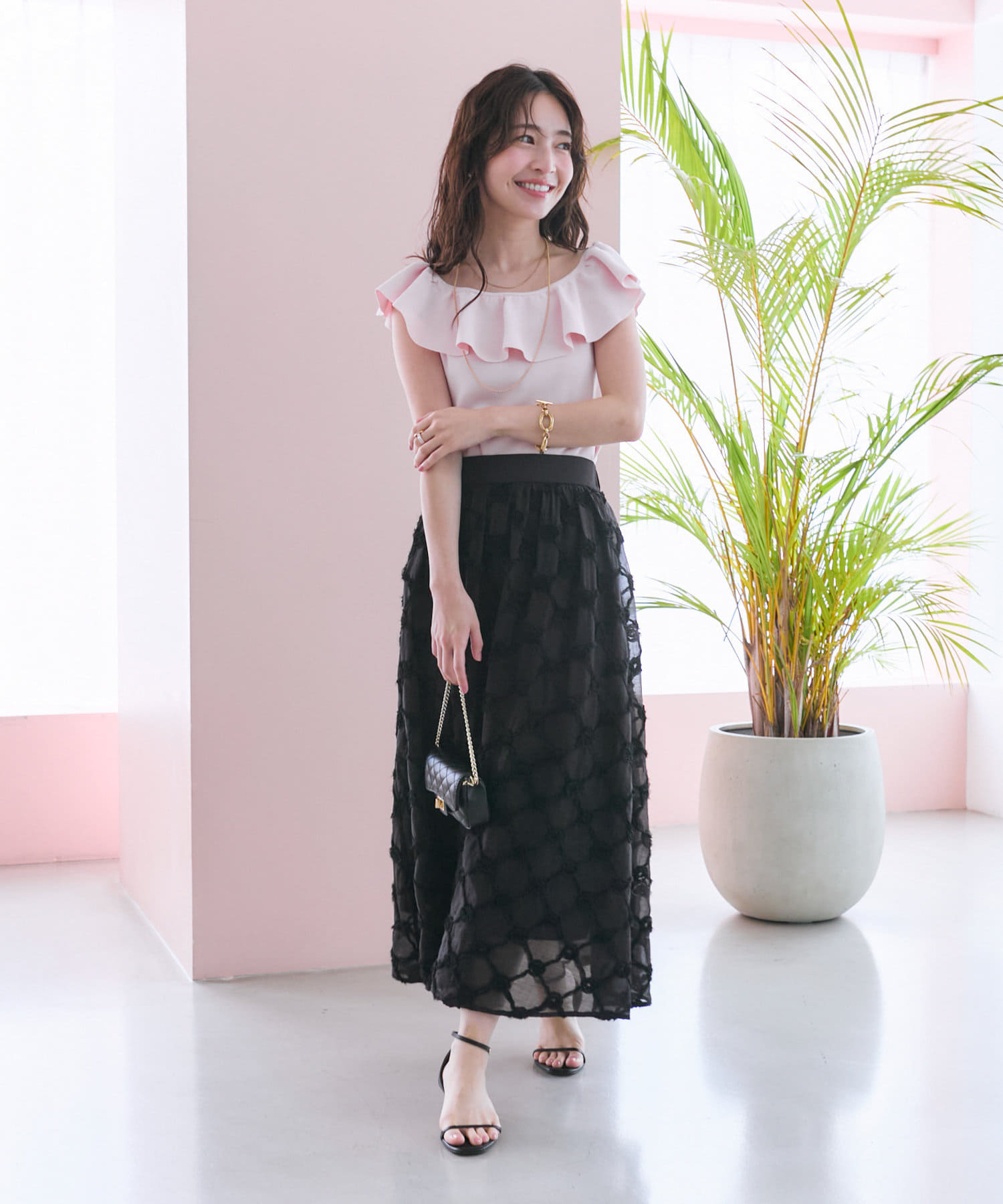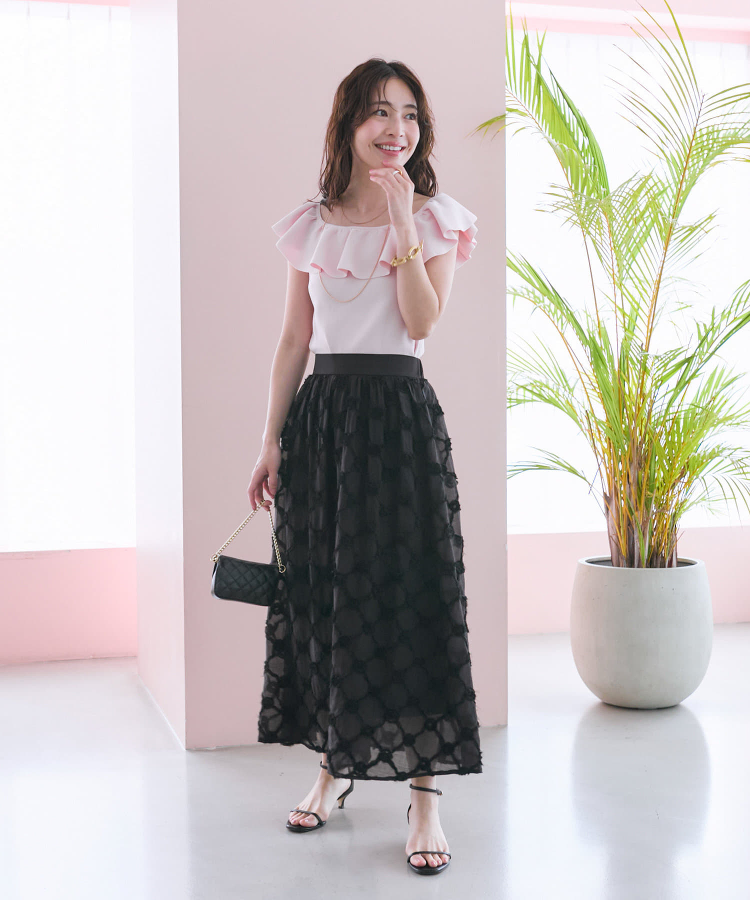 ふんわりスカートでフェミニンにも、パンツできれいめにも合わせて頂けます。