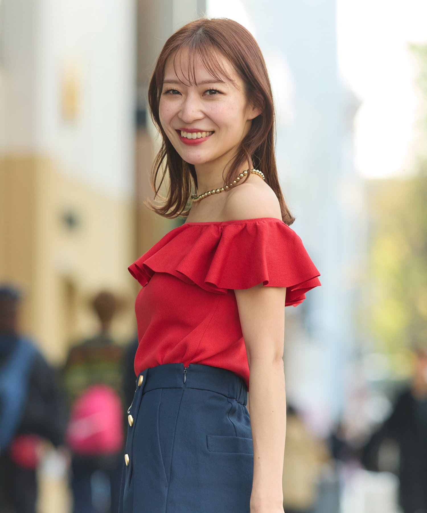 夏に映えるフレッシュな赤がレディライクな印象に。