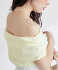 ターンバックした襟の両端にギャザーを施した動きのあるデザインで、二の腕も程よく隠してくれます。