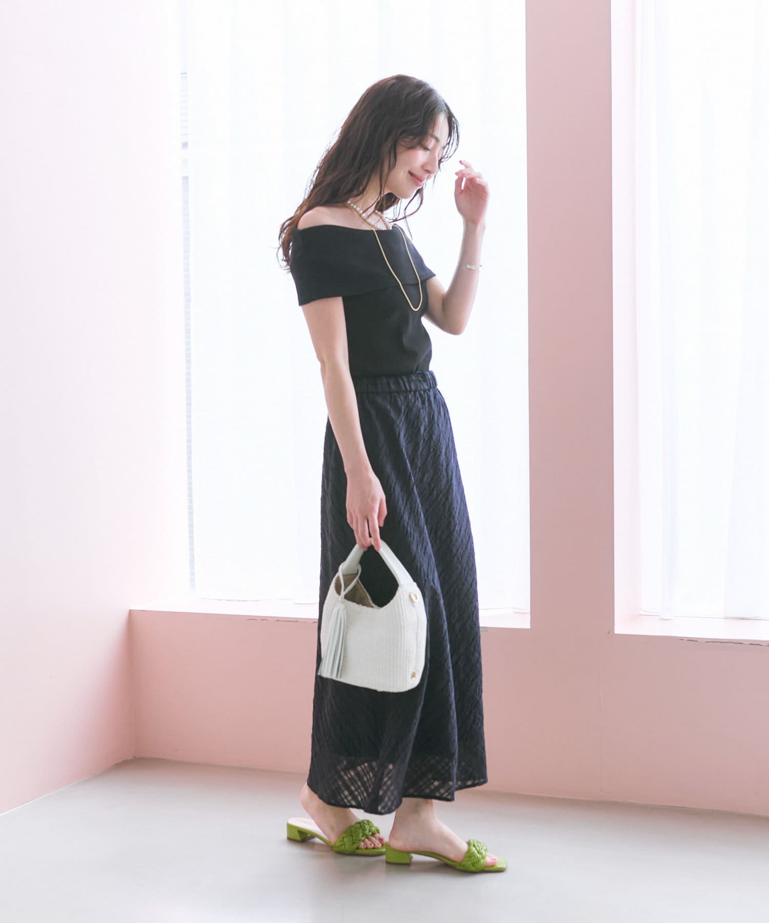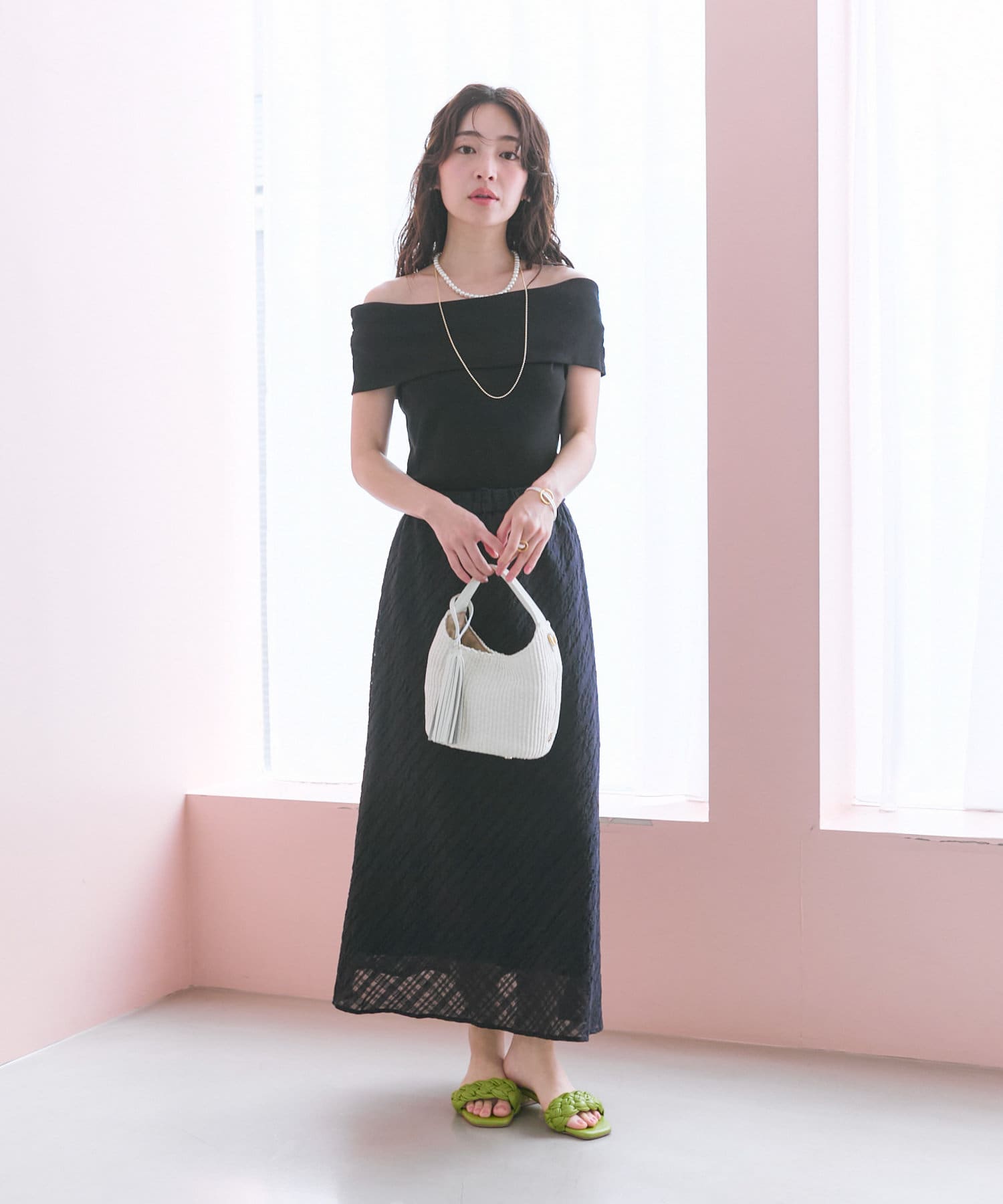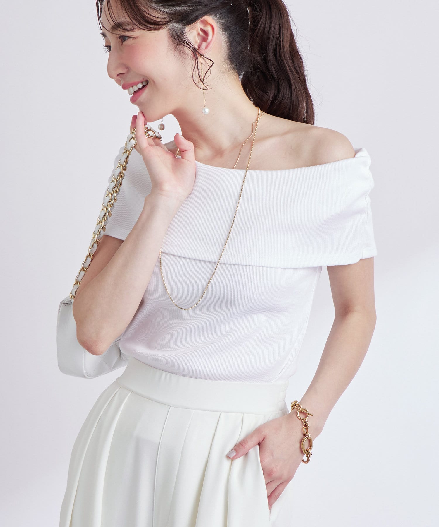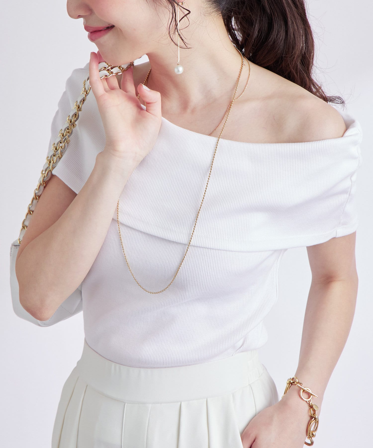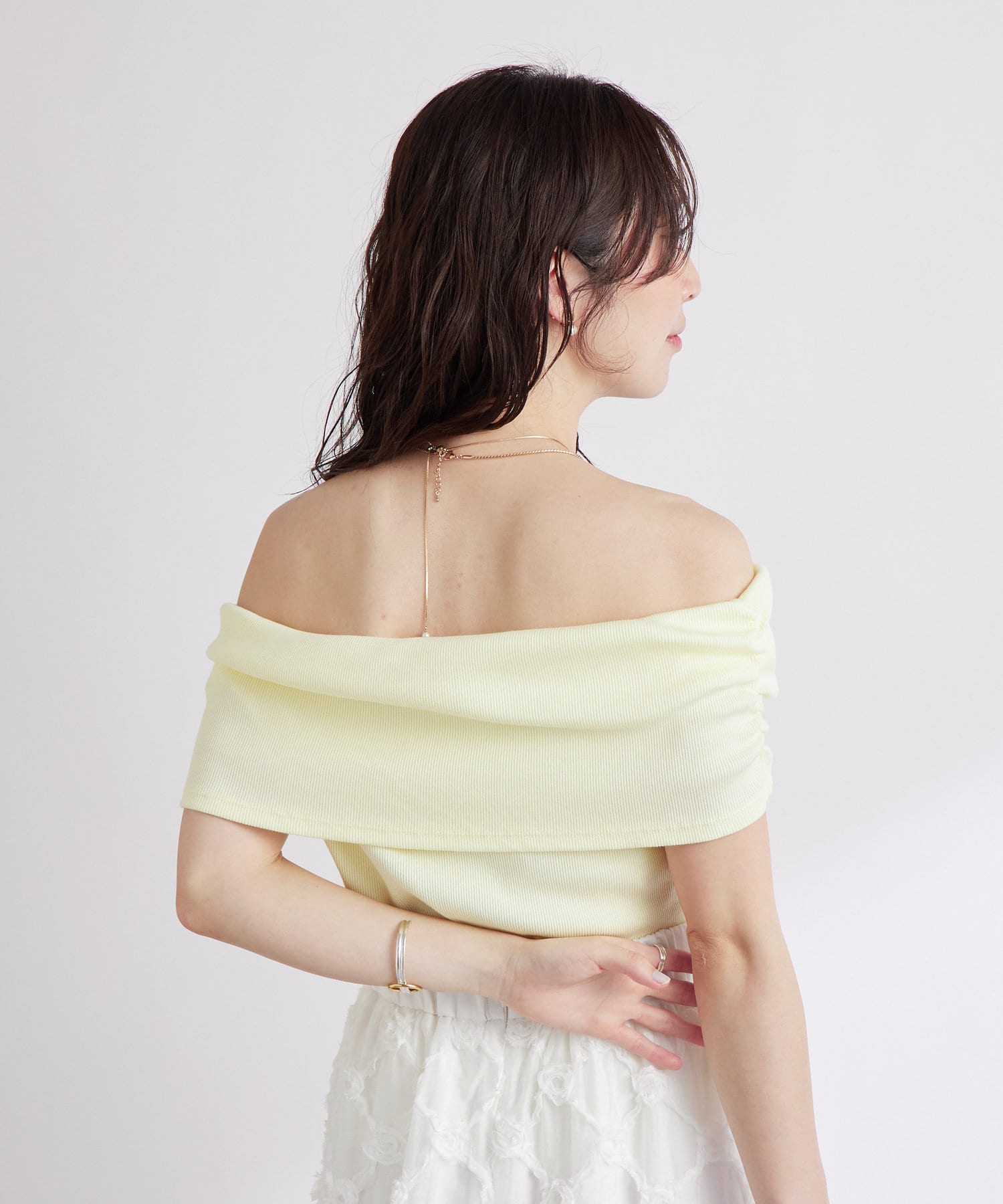 ・デコルテを美しく見せるオフショルデザイン