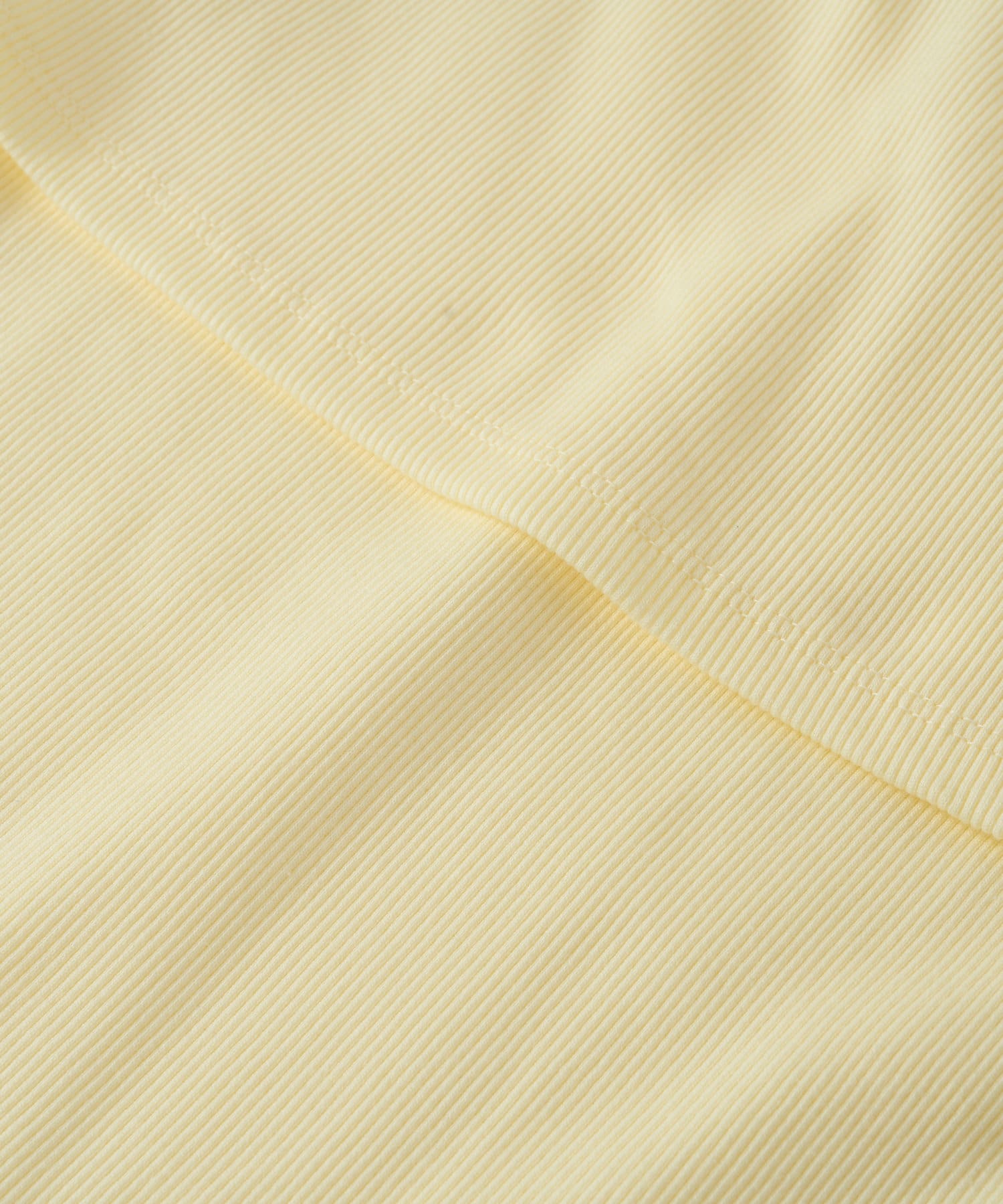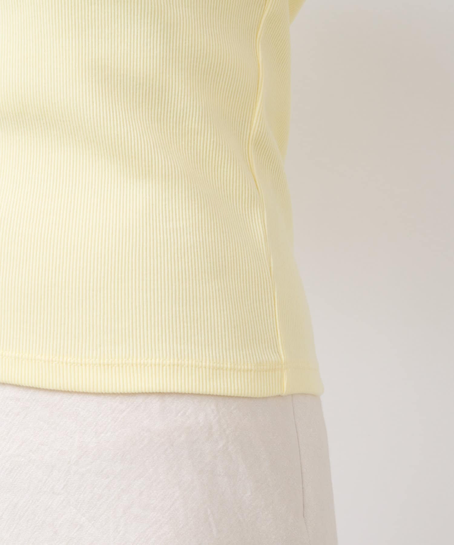 程よい厚みのテレコは透けず、キックバックがよく、身体のラインを拾いにくい素材感。