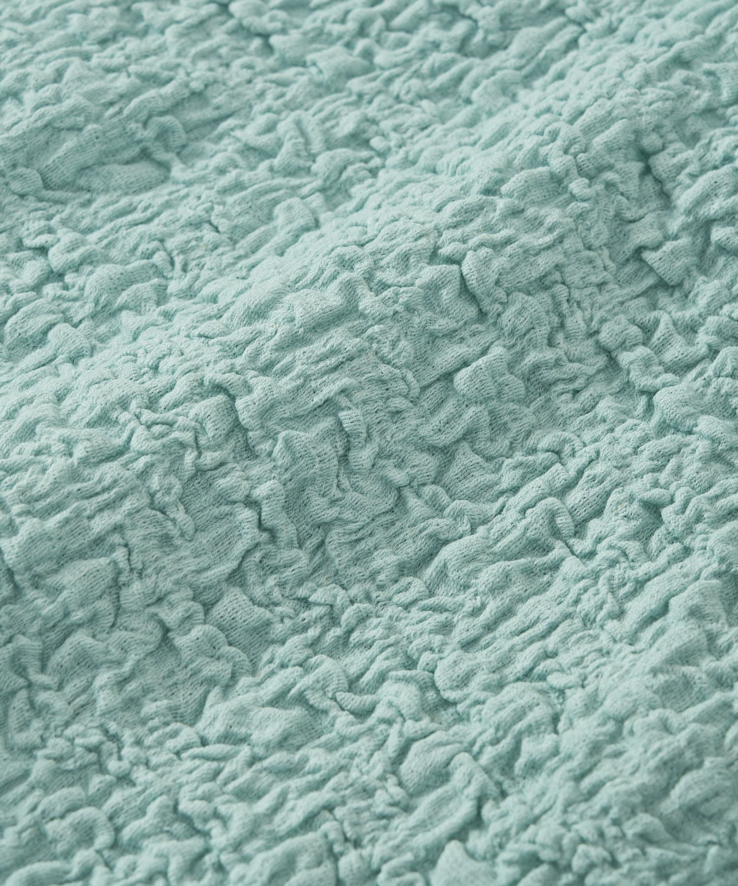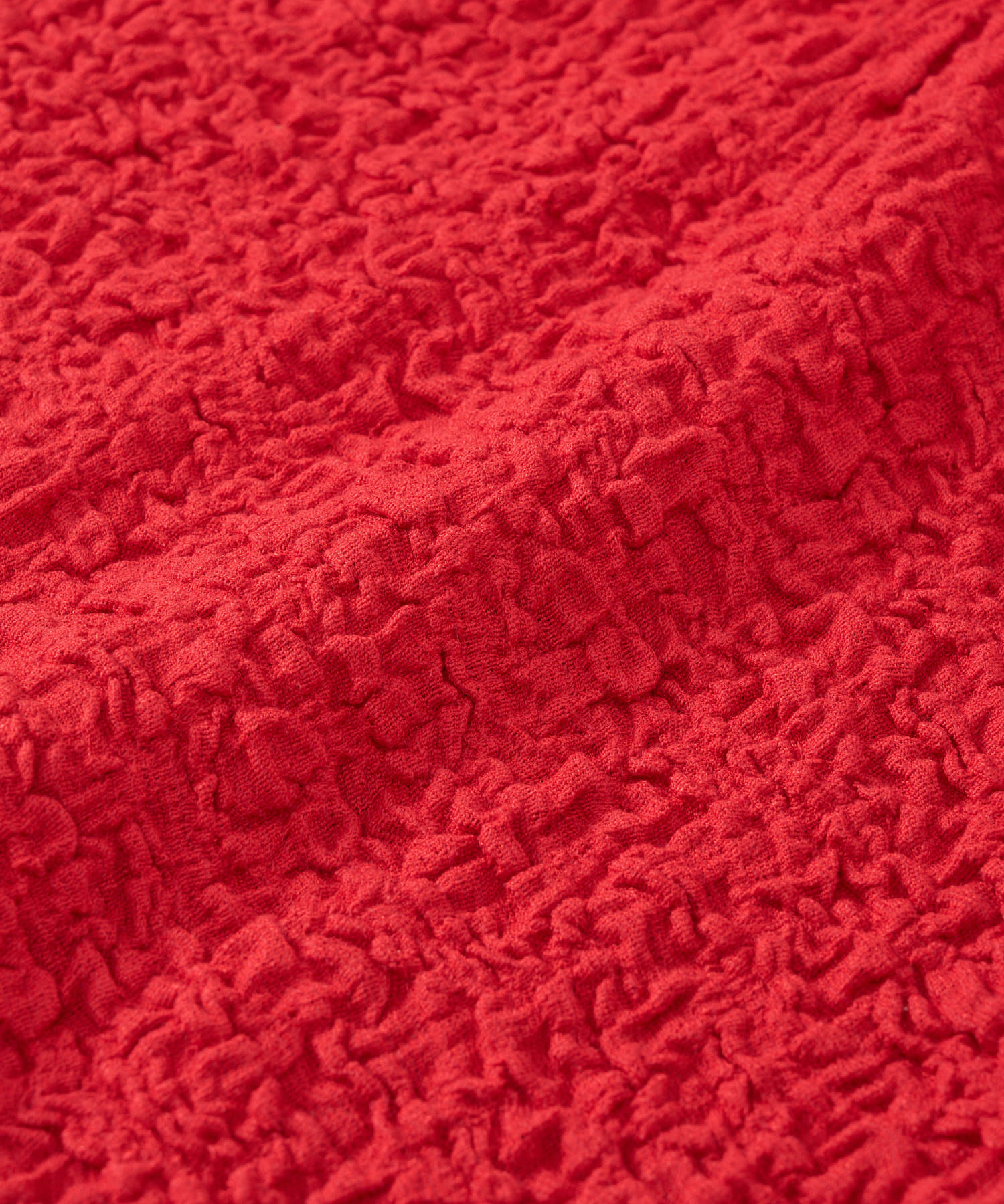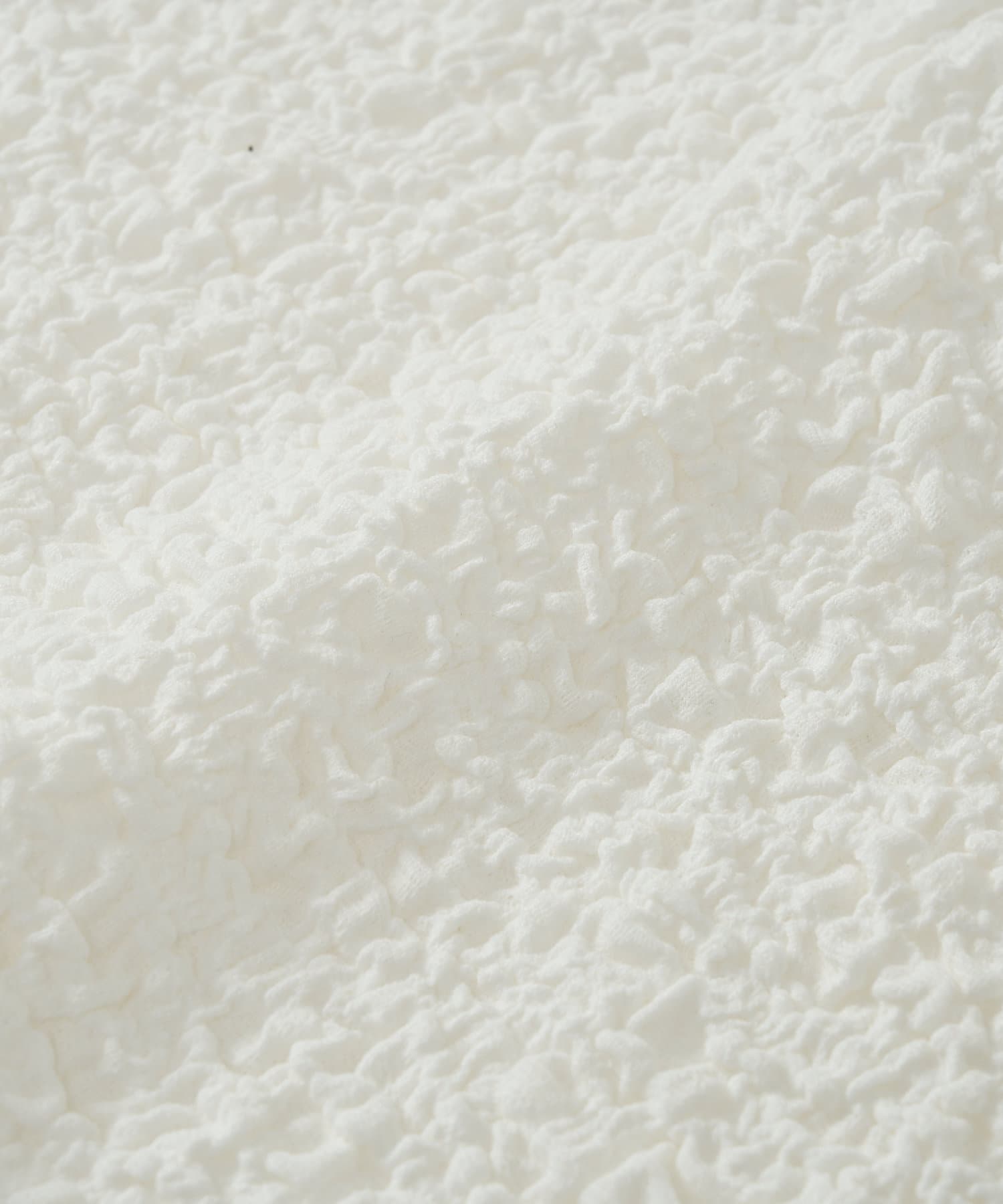 凹凸感と生地の程よい厚さで身体のラインを拾いにくいのが嬉しいポイント。