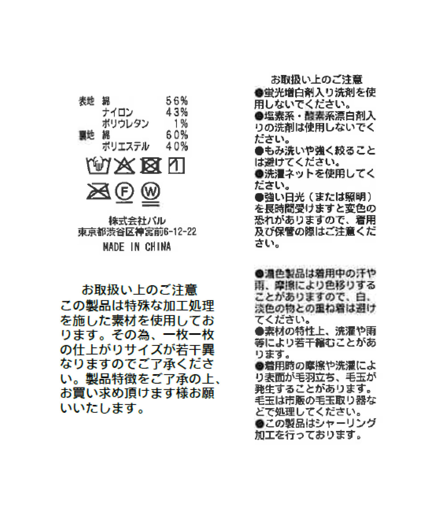 品番 LBZ1051506A0005 素材 ・表地 綿56% ナイロン43% ポリウレタン1%
