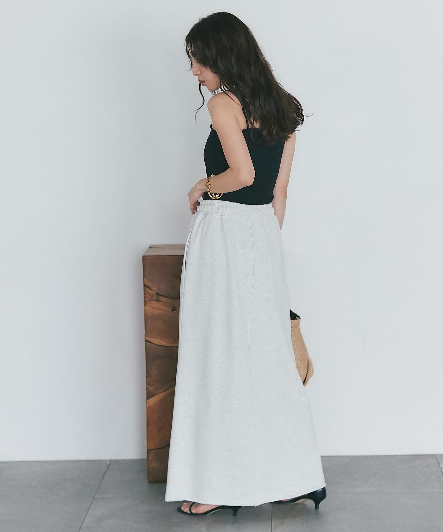 細い肩ひもが女性らしさと華奢見えをかなえます。