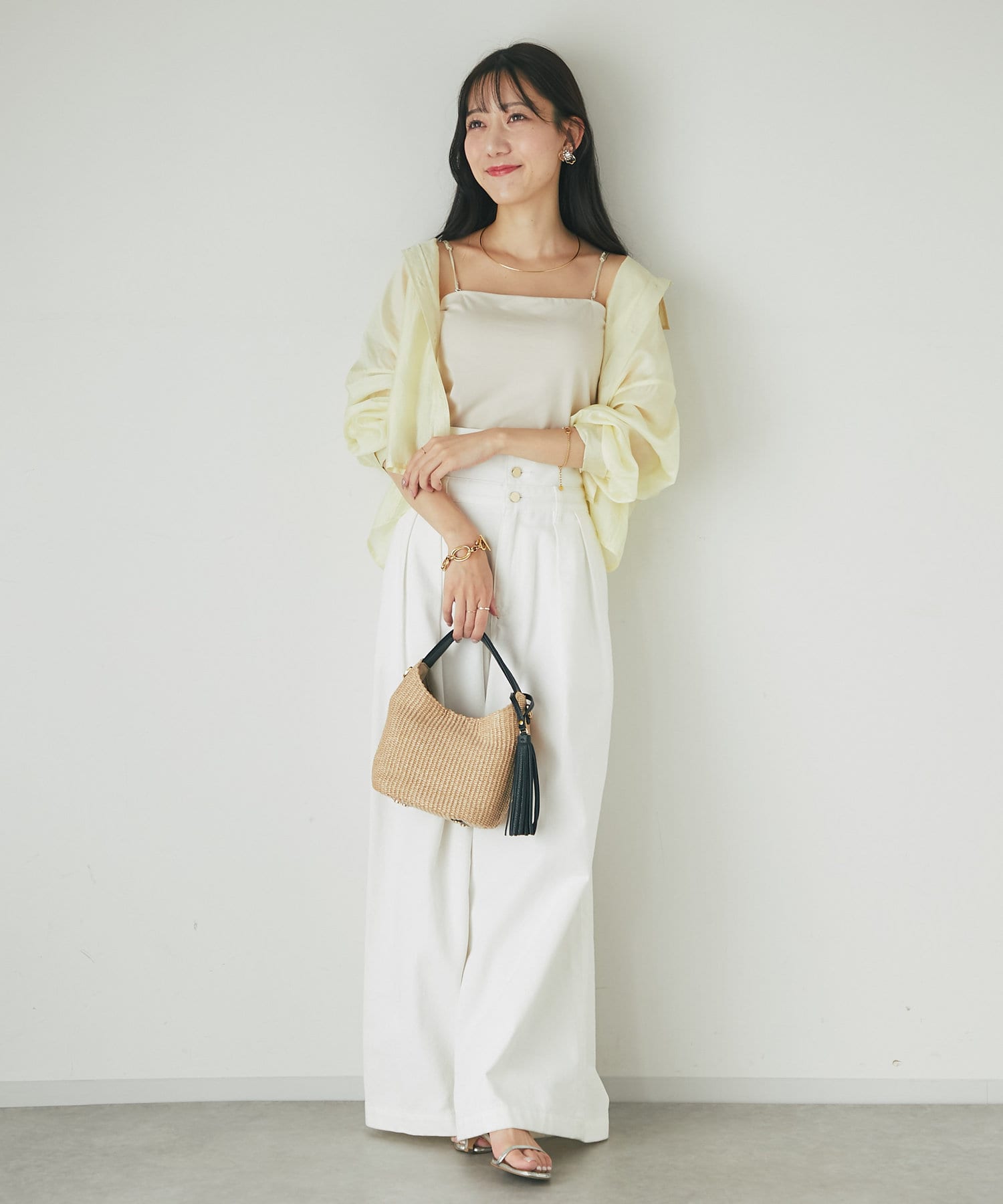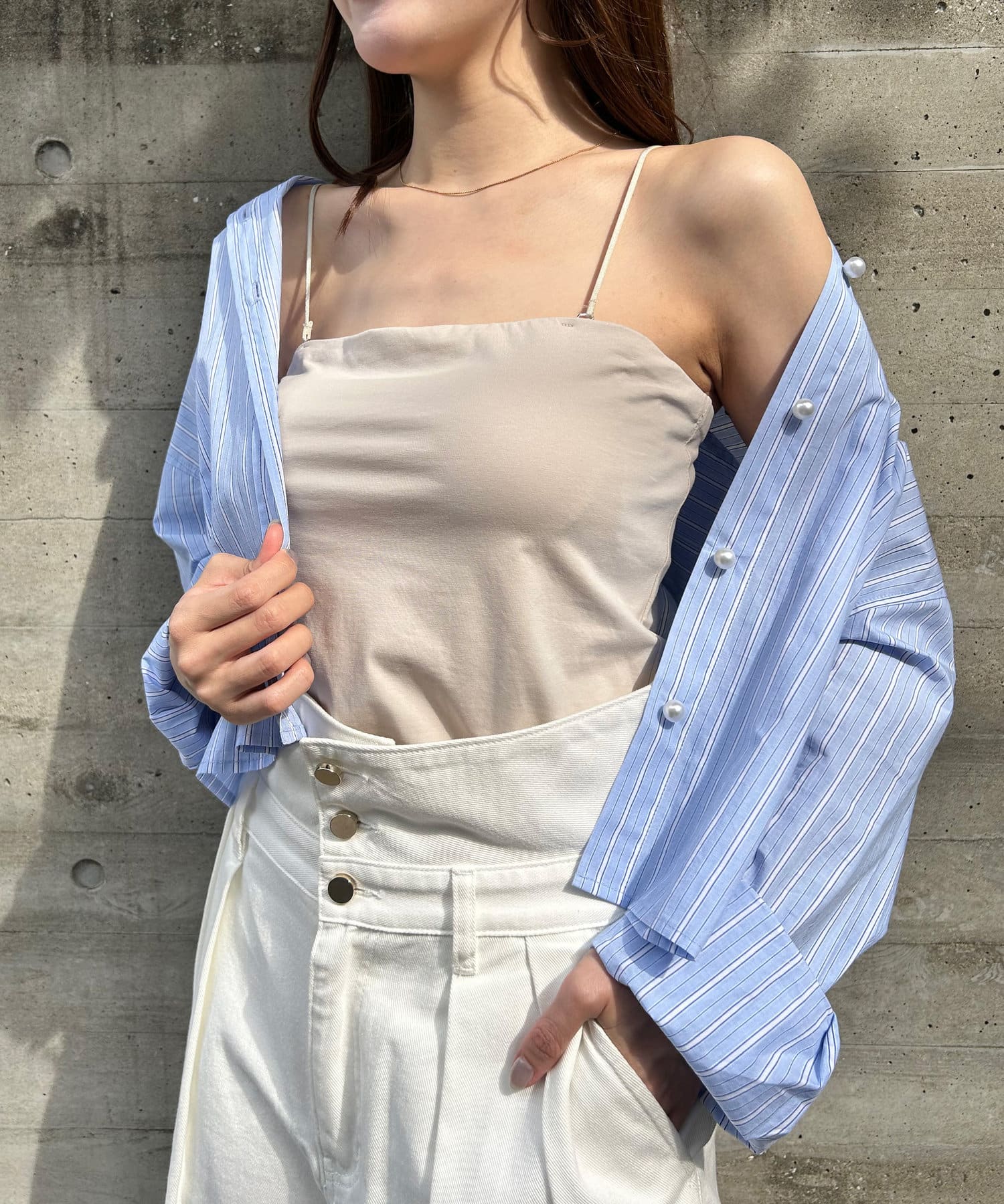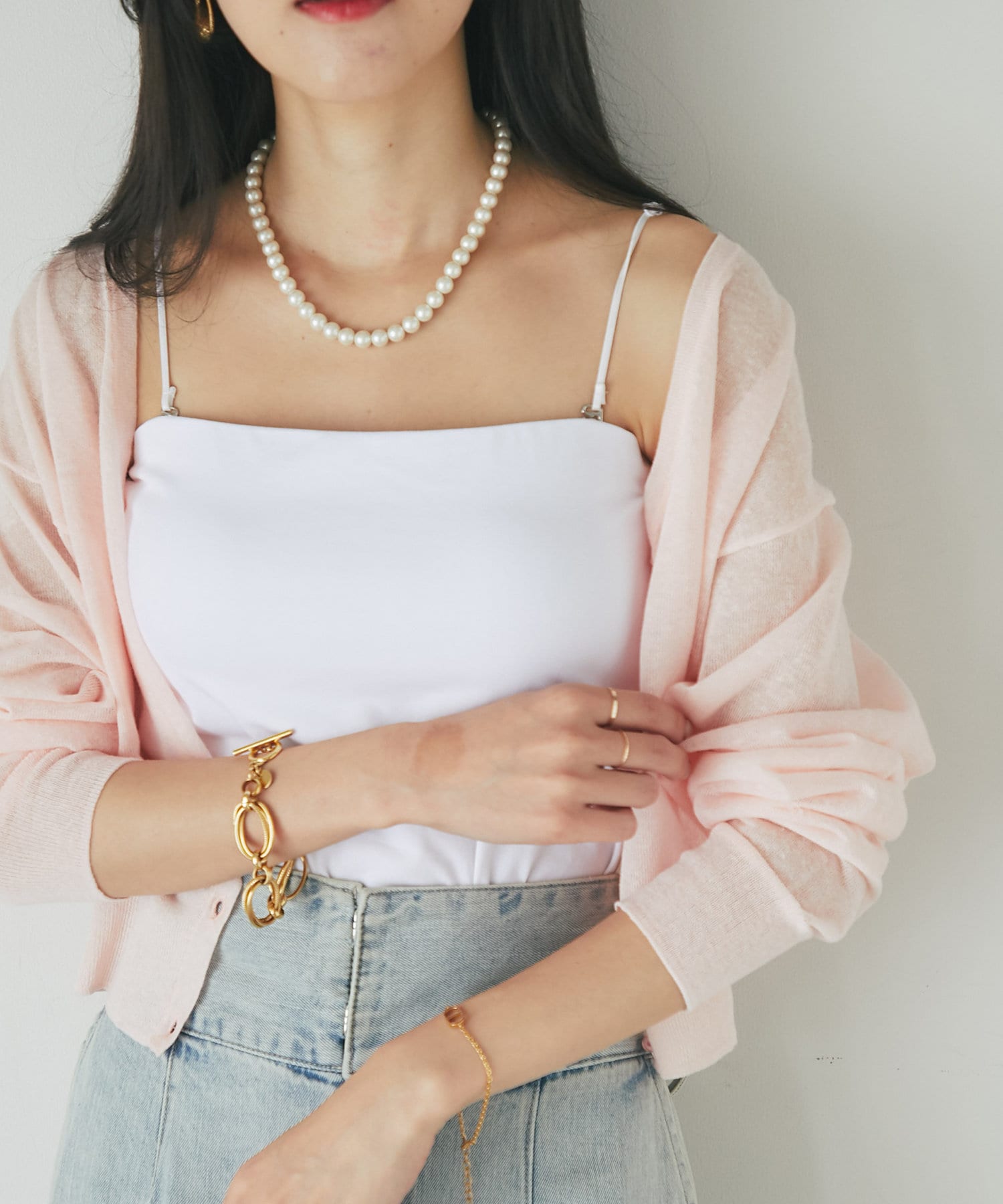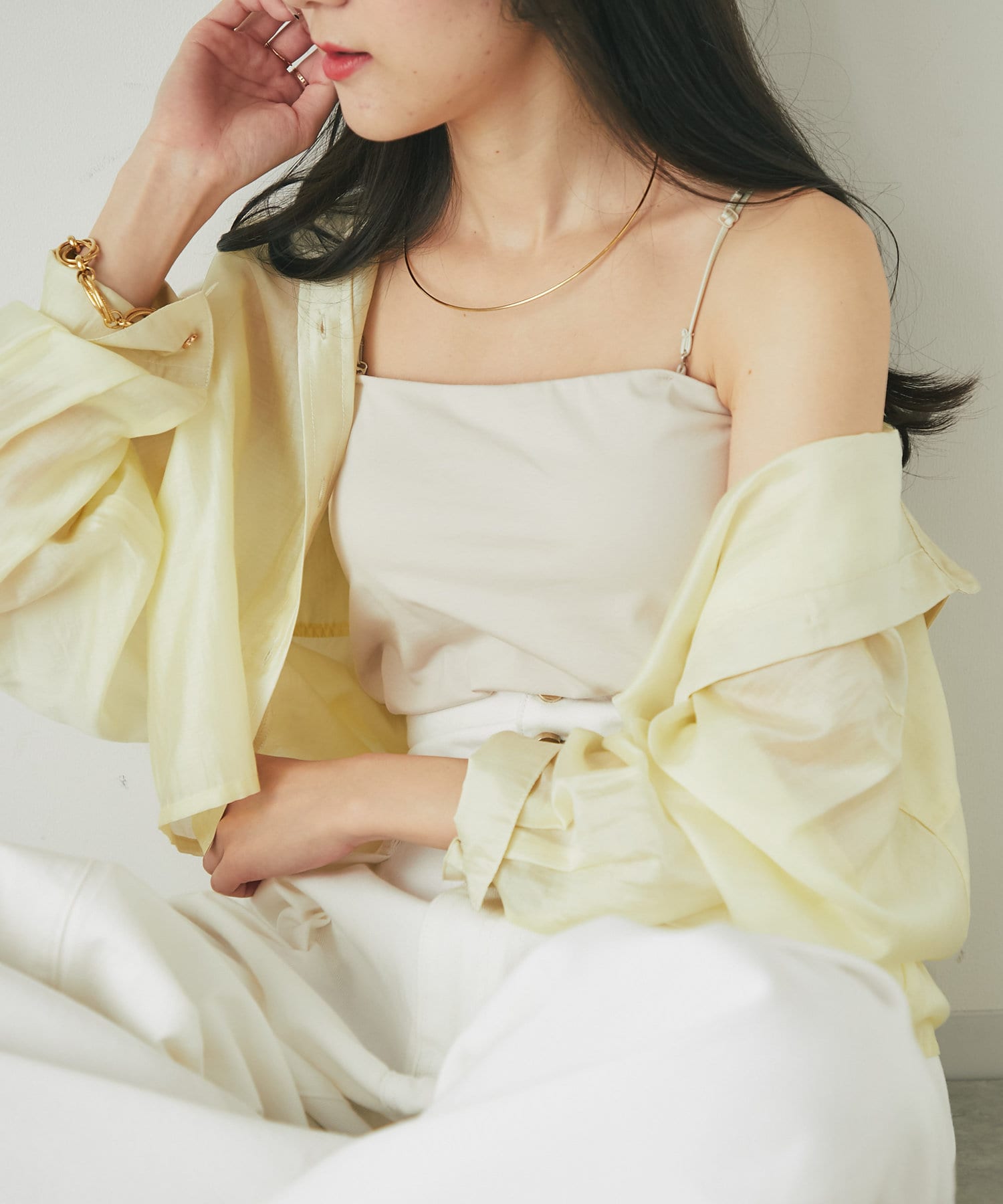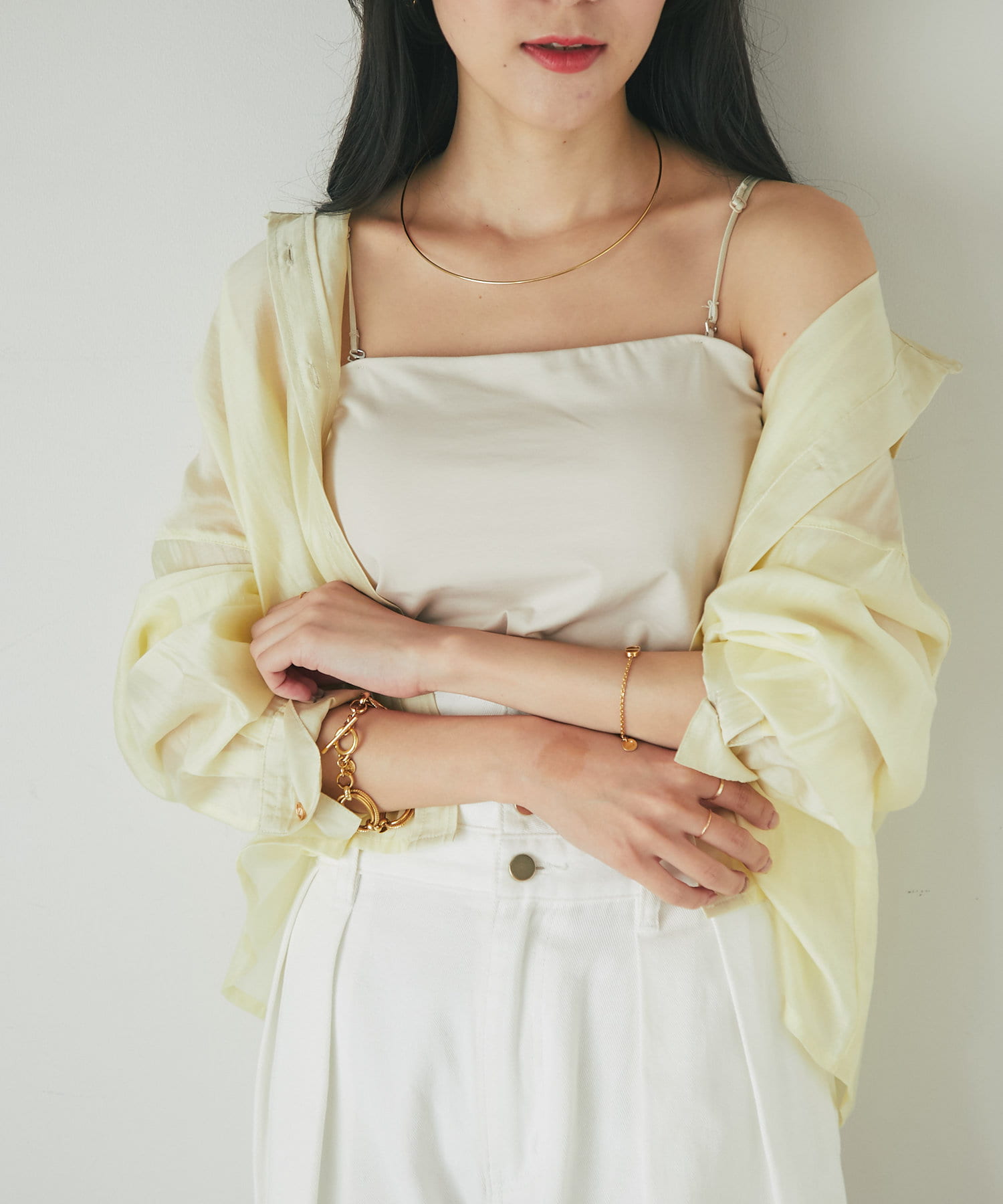 シアー素材のトップスや抜け感のあるゆったりしたトップスのインナーとしておすすめです。