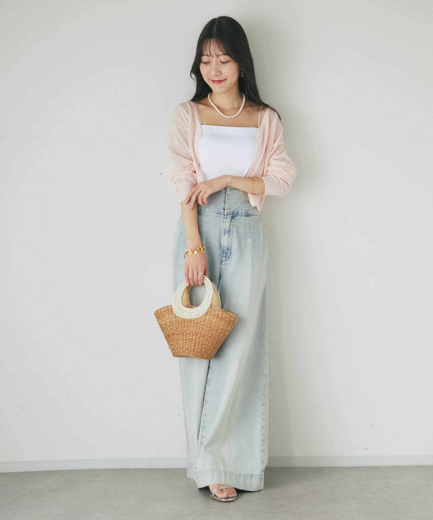 ホワイトパンツやなど透け感が気になるボトムと合わせることで安心して着て頂けます。