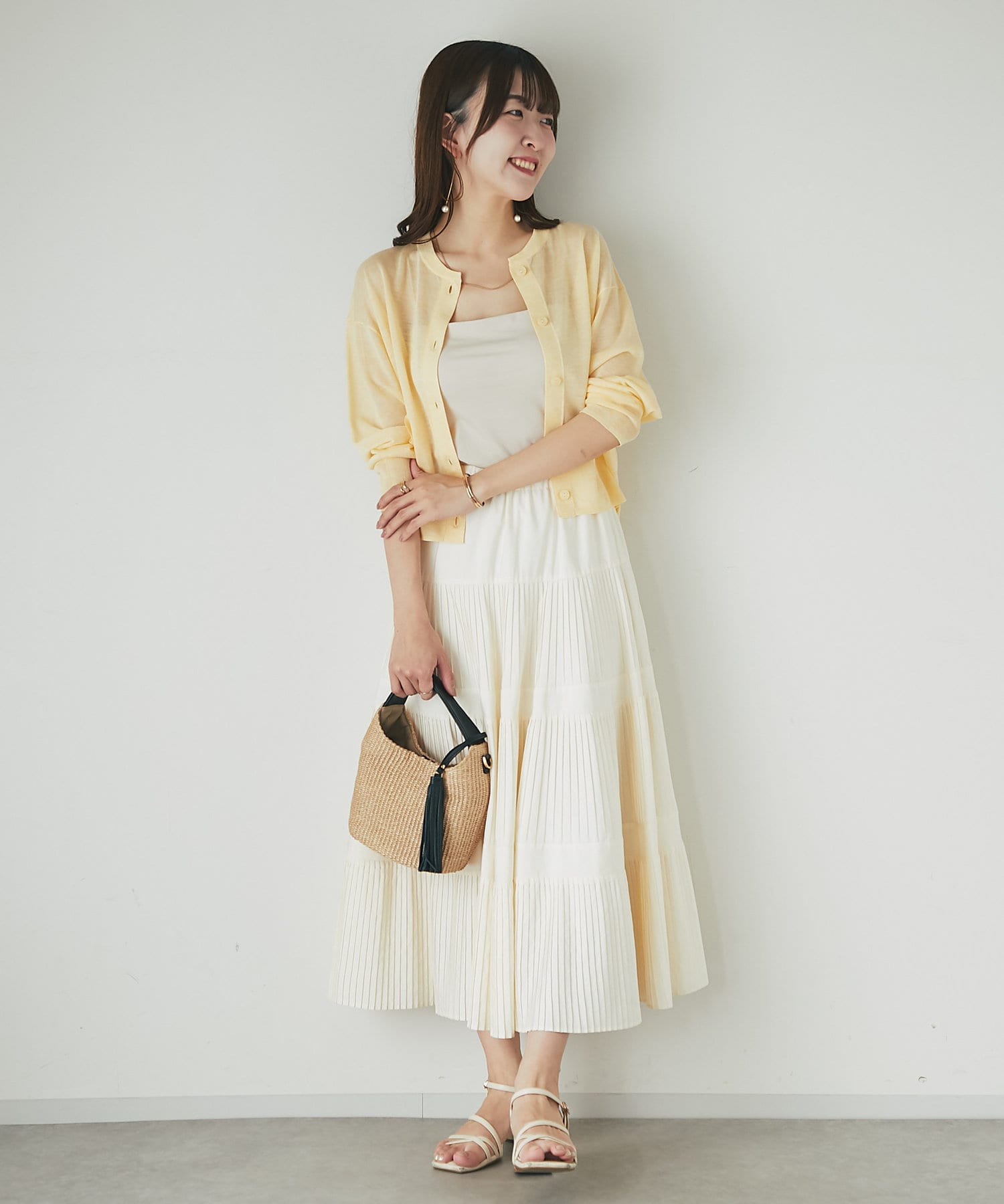 淡いカラーのスカートやワンピースなど透け感が気になるアイテムと合わせることで安心して着て頂けます。