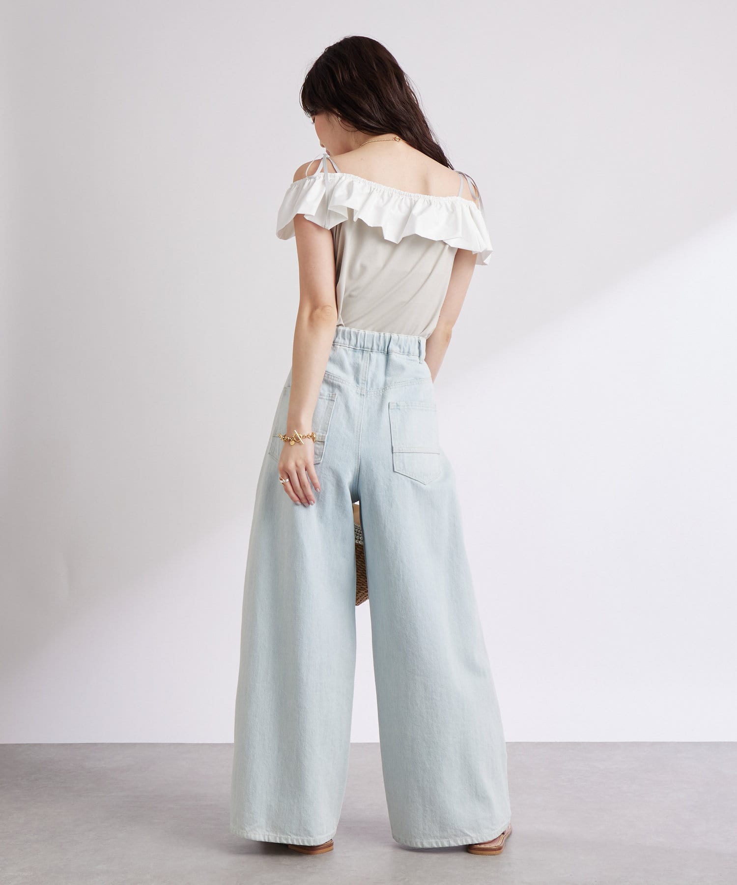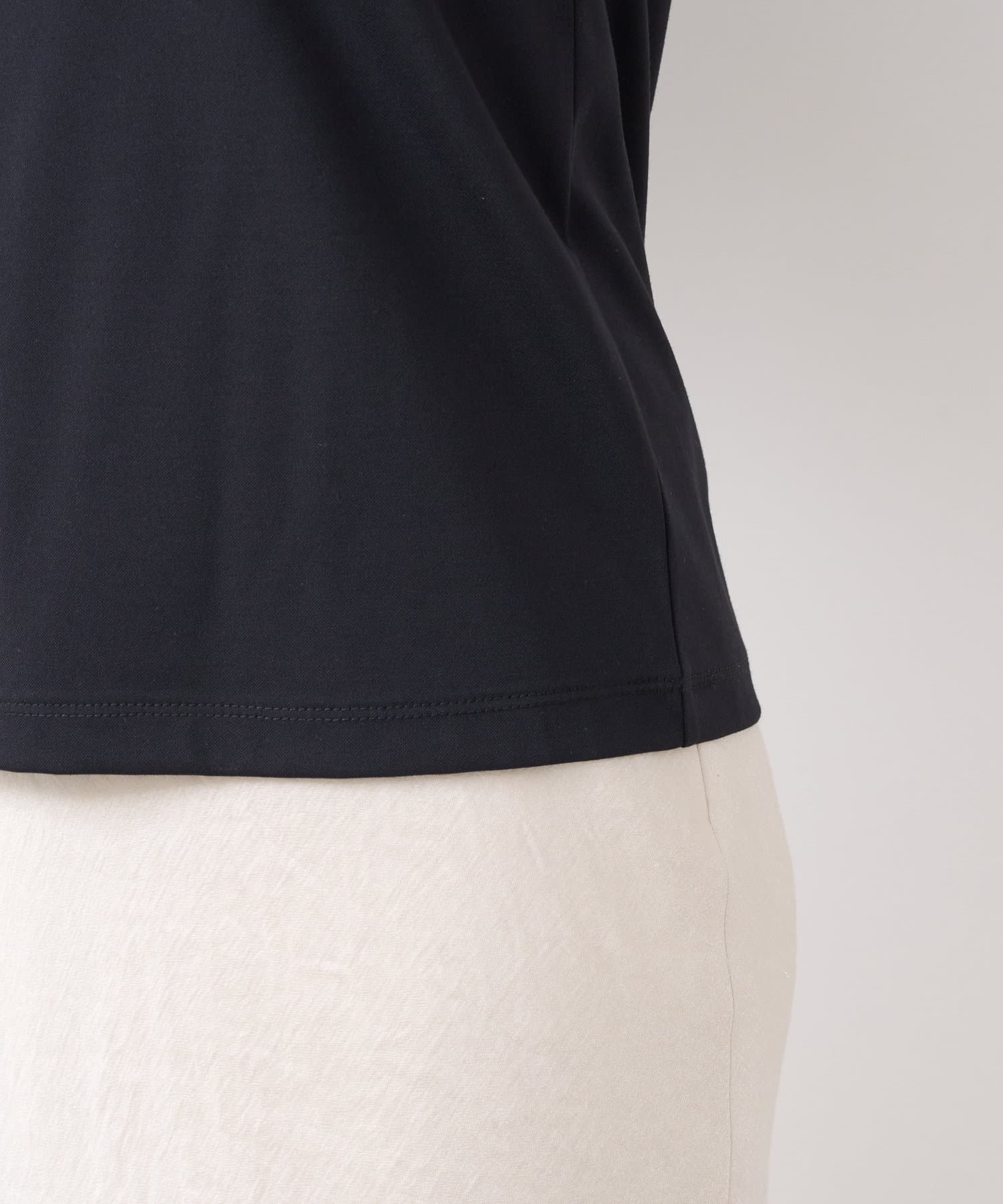 スクエアーのようなラウンドネックラインはゴム仕様でオフショルダーとしても着られます。