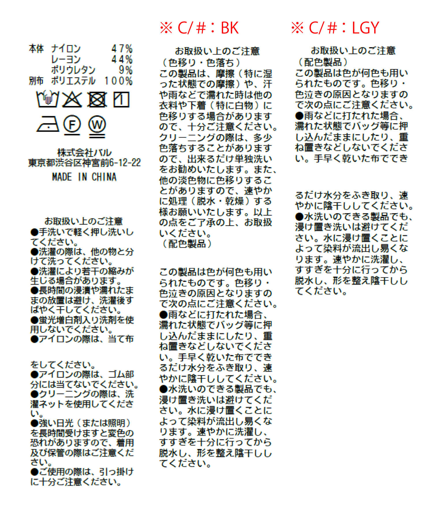 品番 LBZ1051506A0008 素材 本体:ナイロン47% レーヨン44% ポリウレタン9%