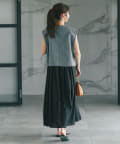 リネン特有の自然なシワ感と、ポリエステルの程よいハリ感が、上品な印象を与えます。