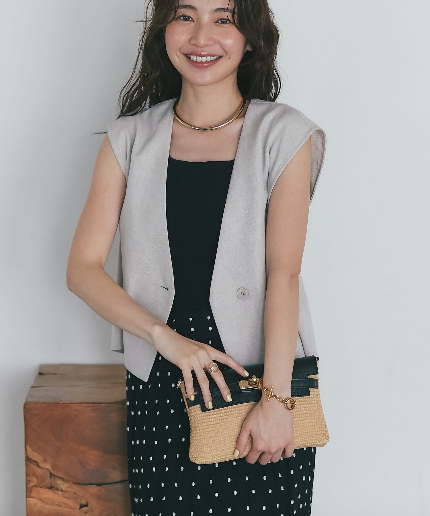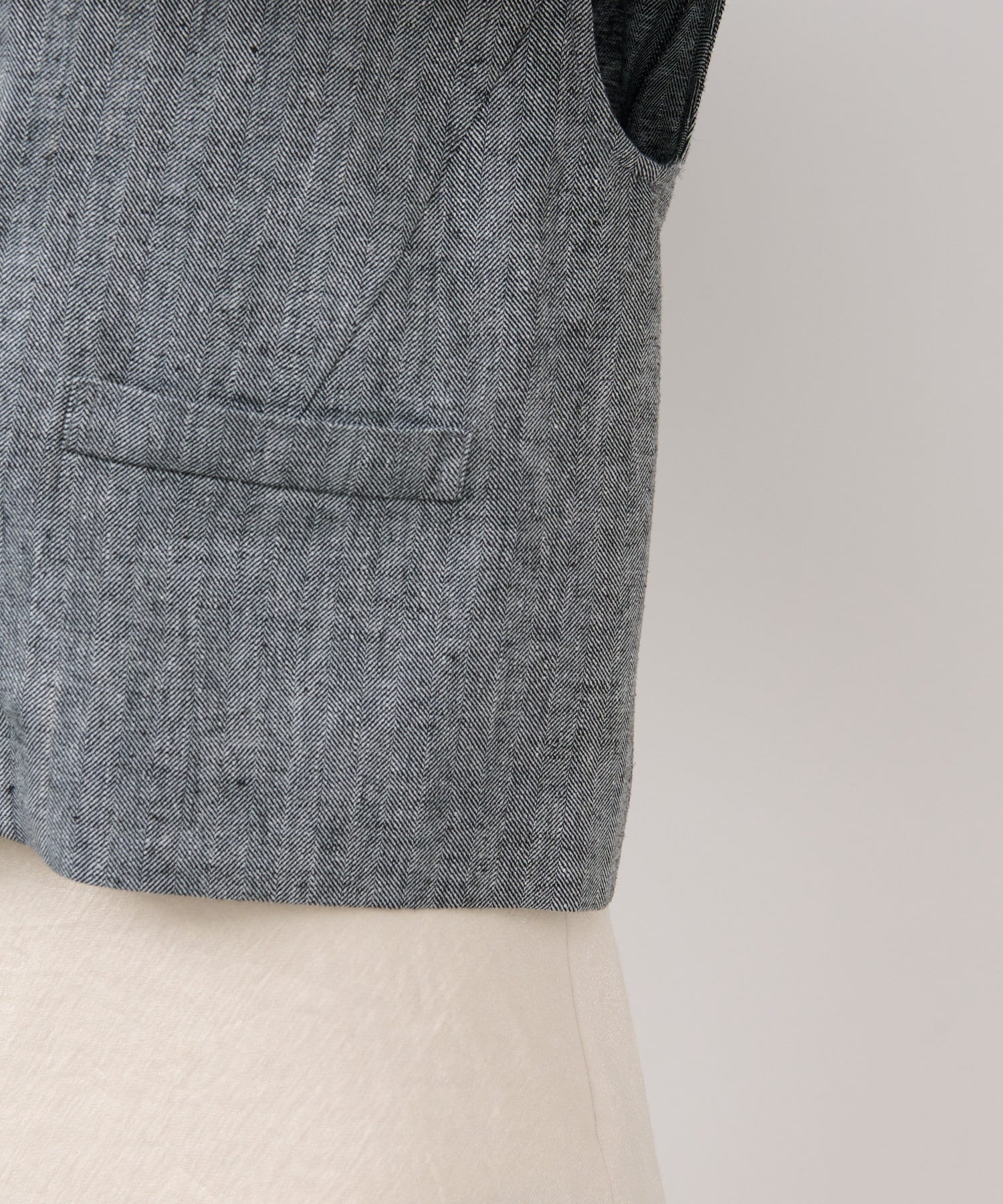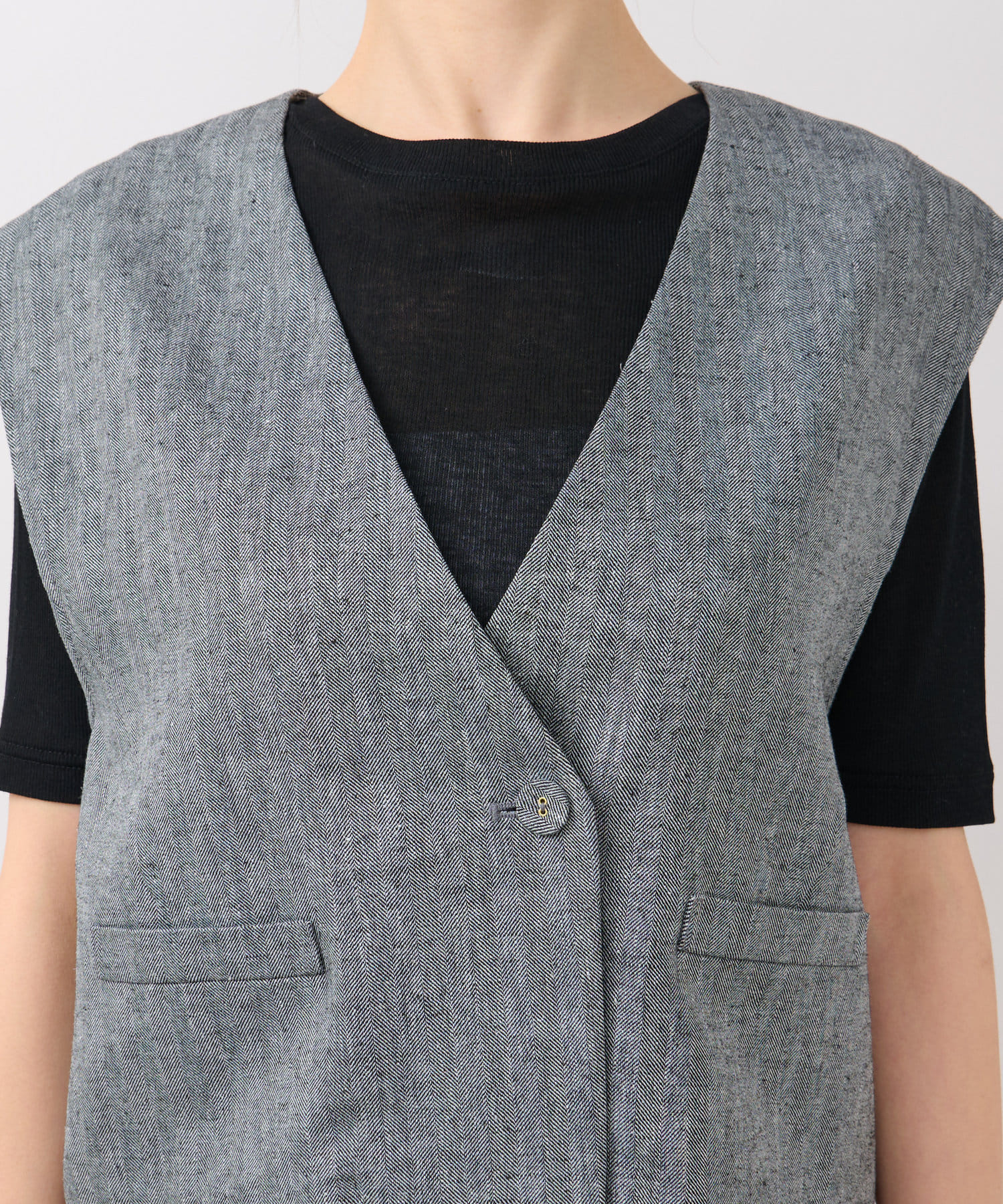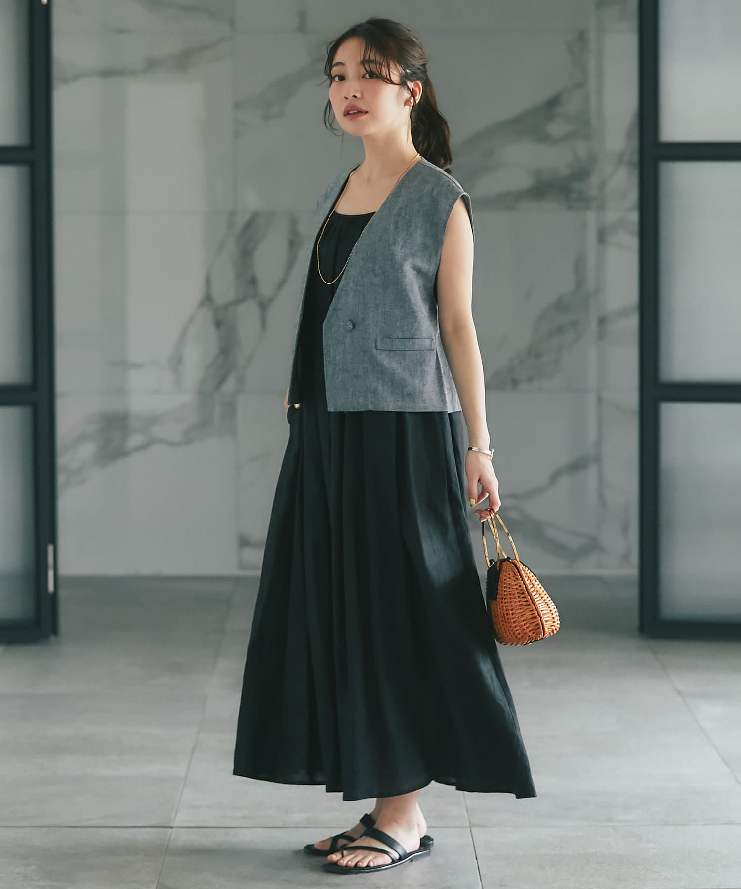 大人のこなれ感を演出するリネン混ノースリーブジャケット