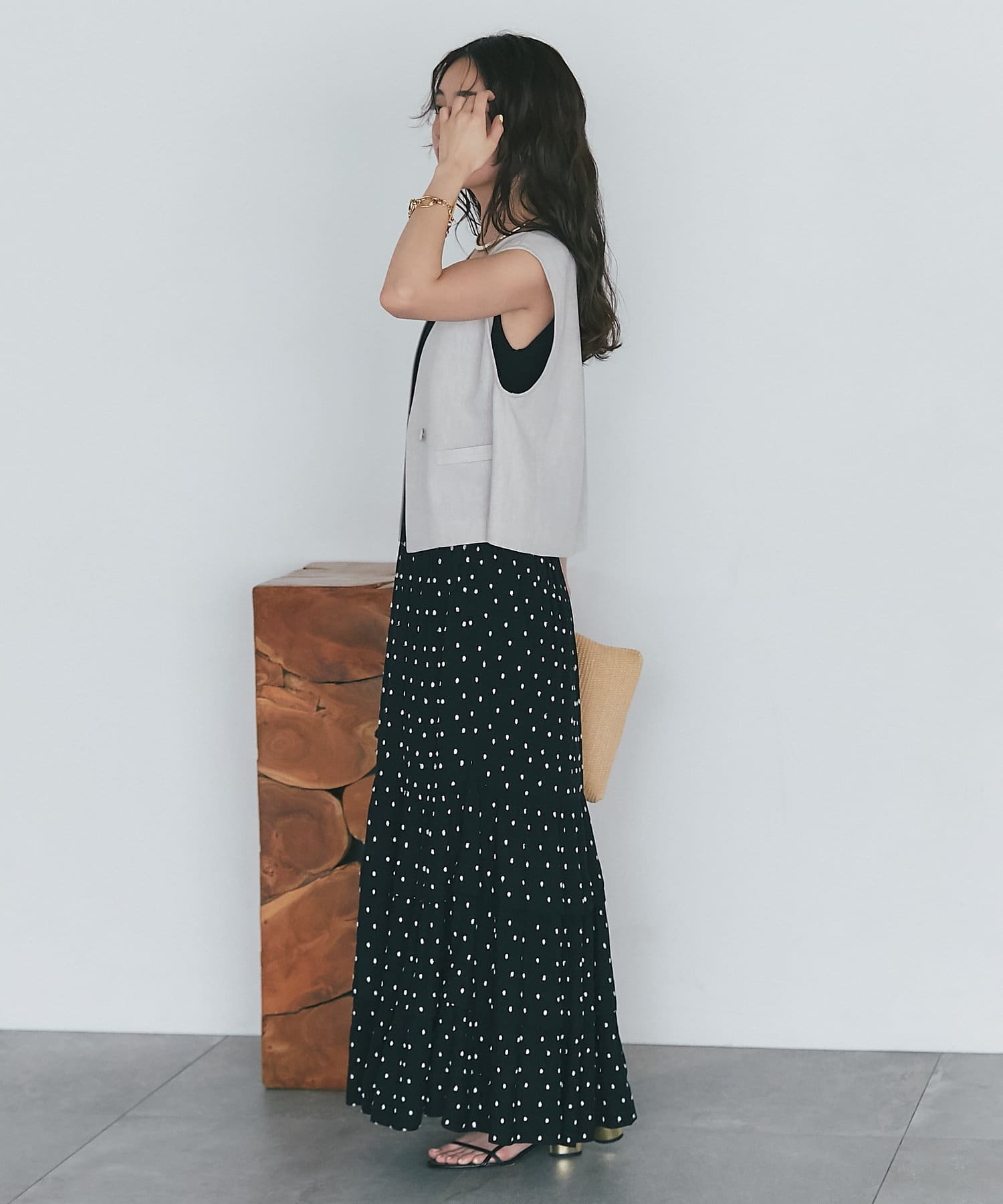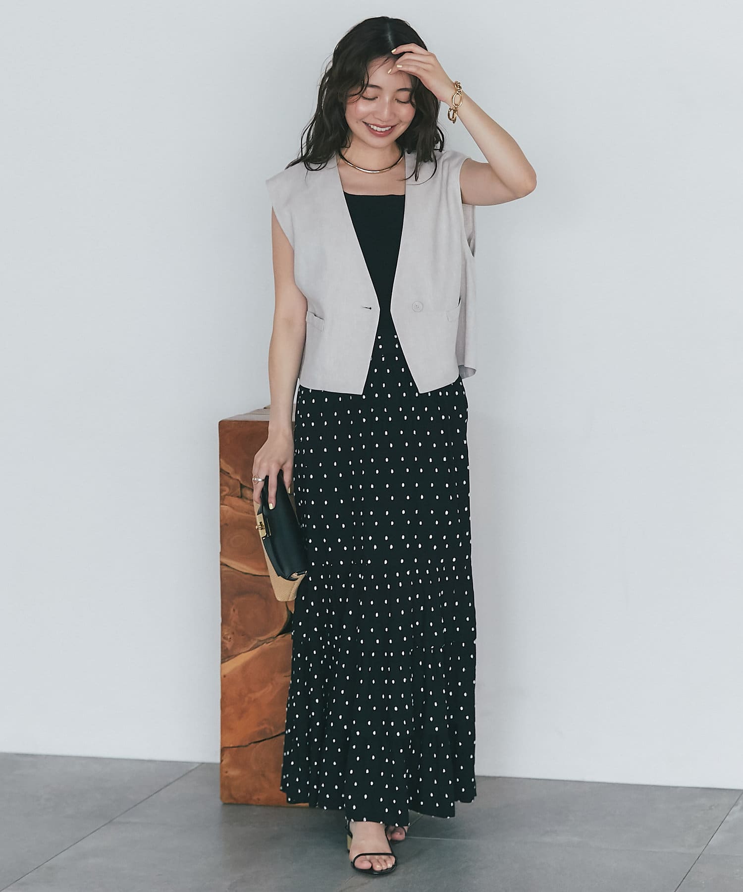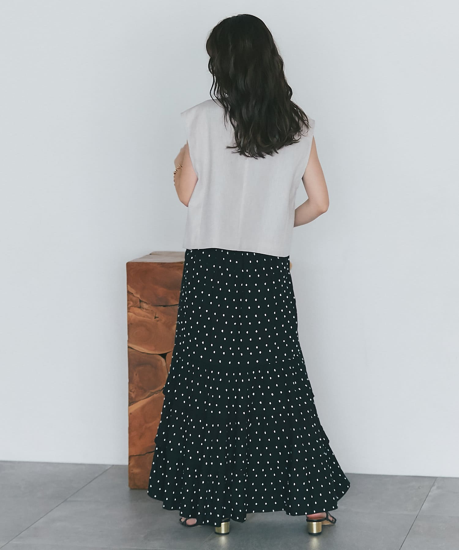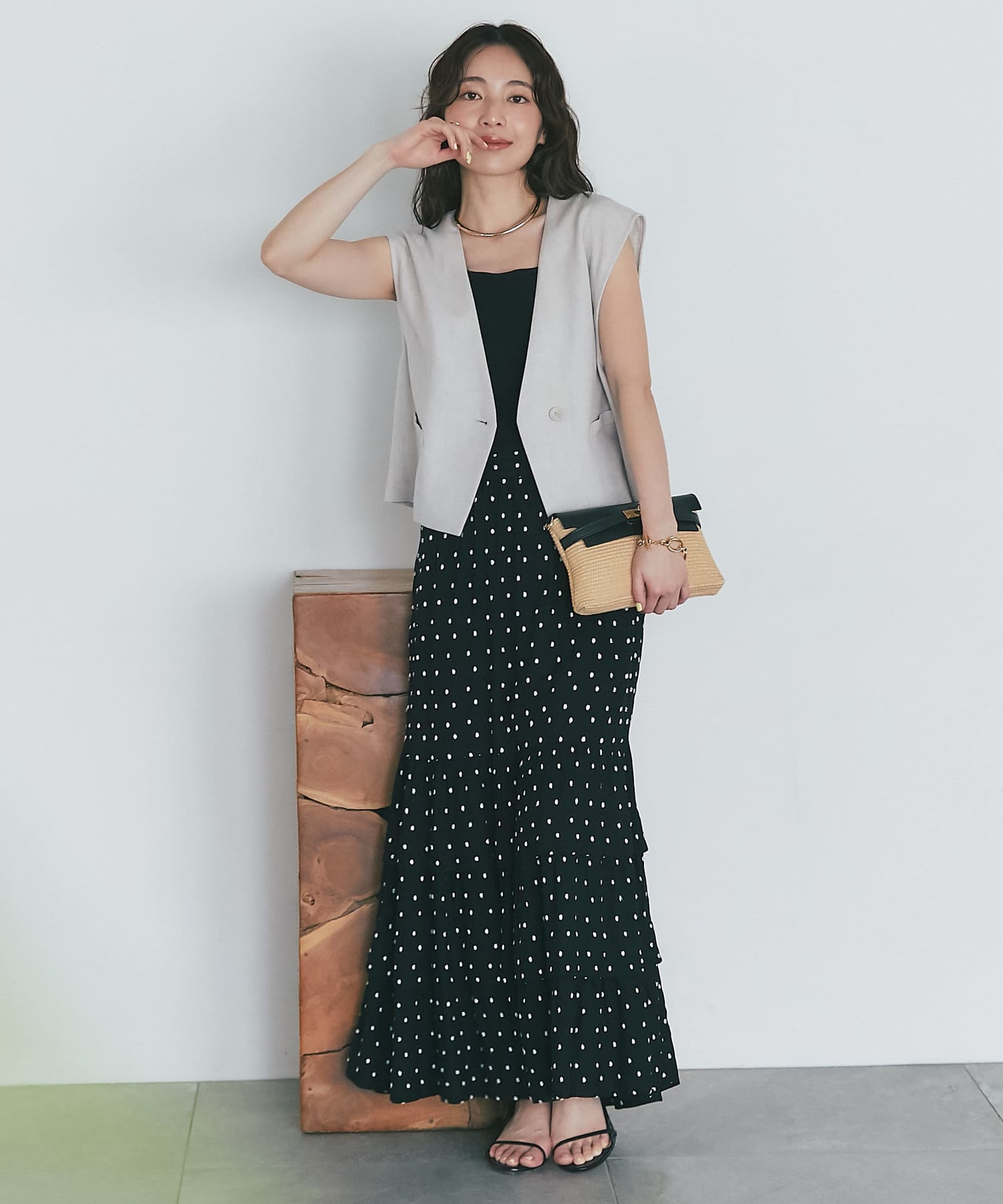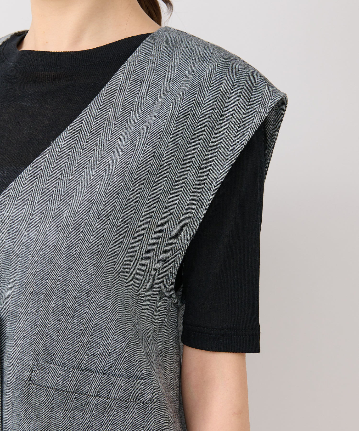 大人のこなれ感を演出するリネン混ノースリーブジャケット