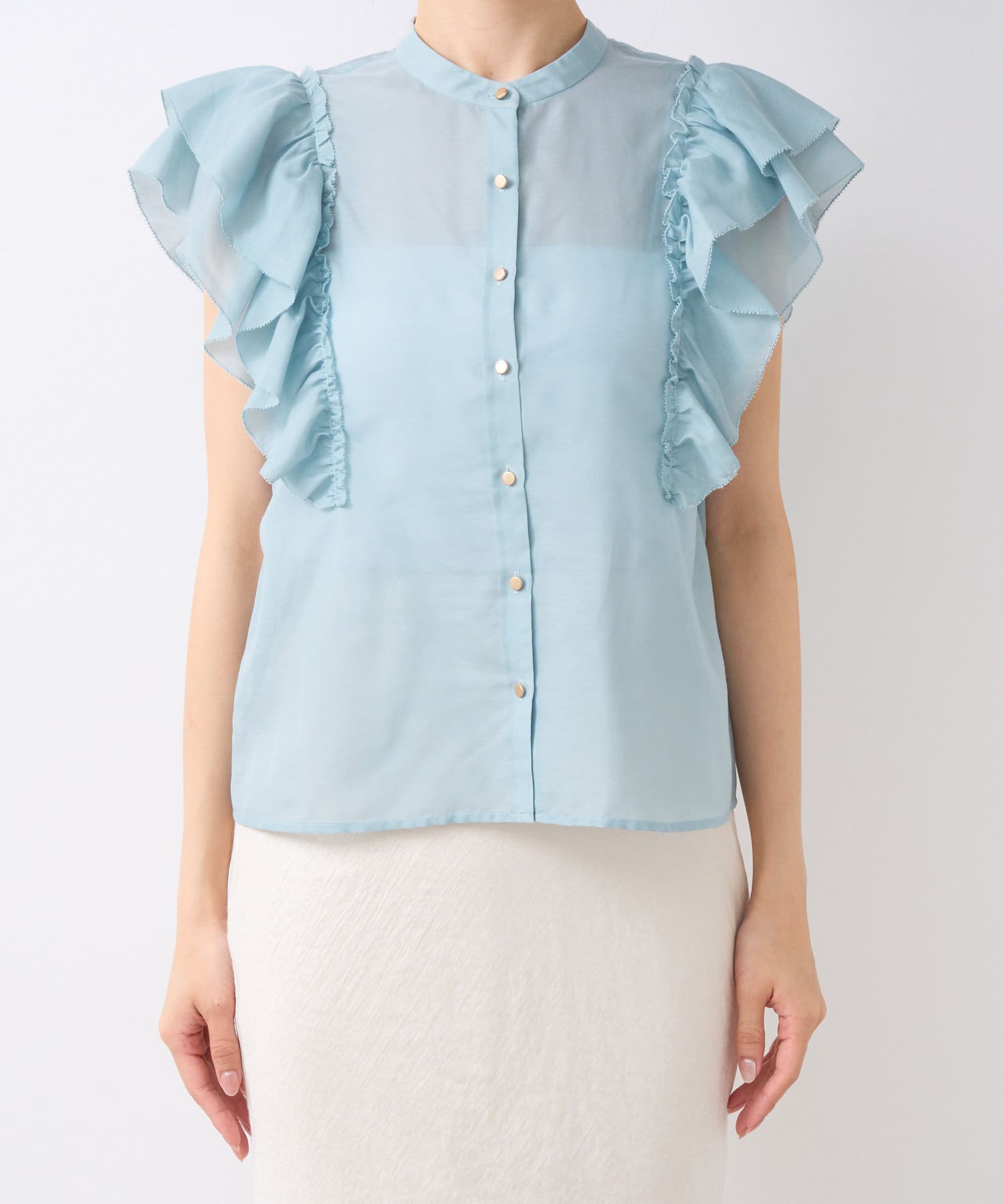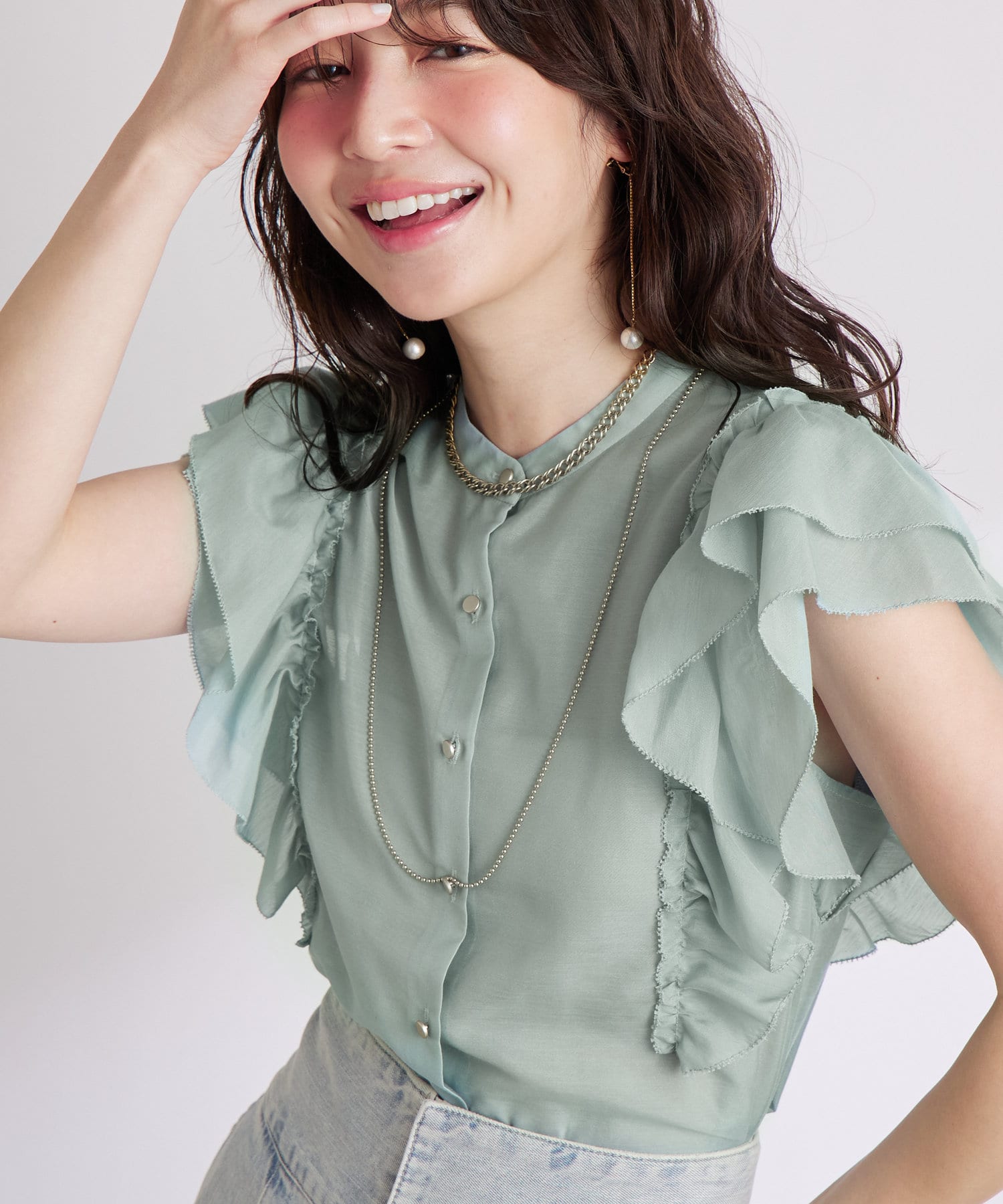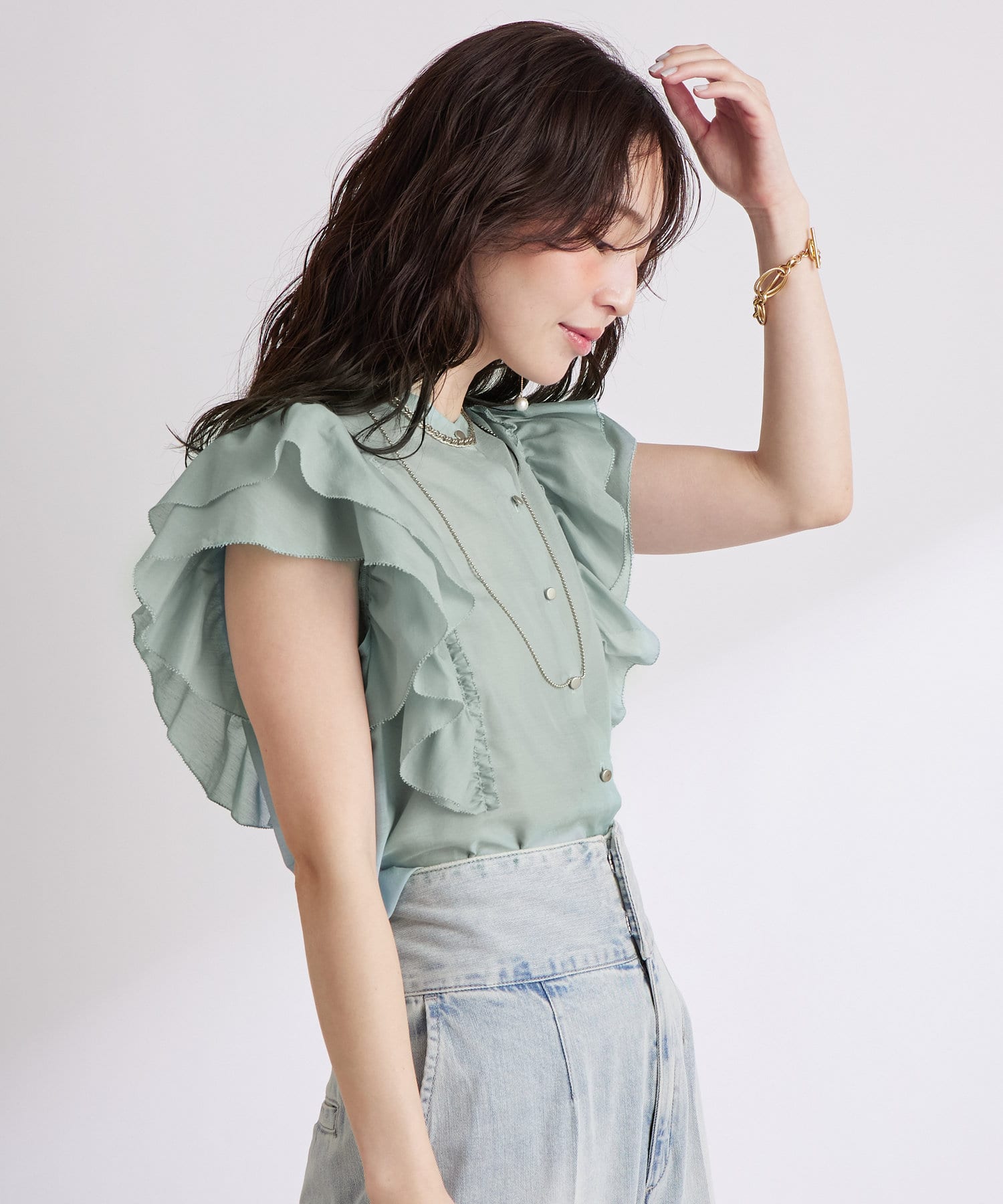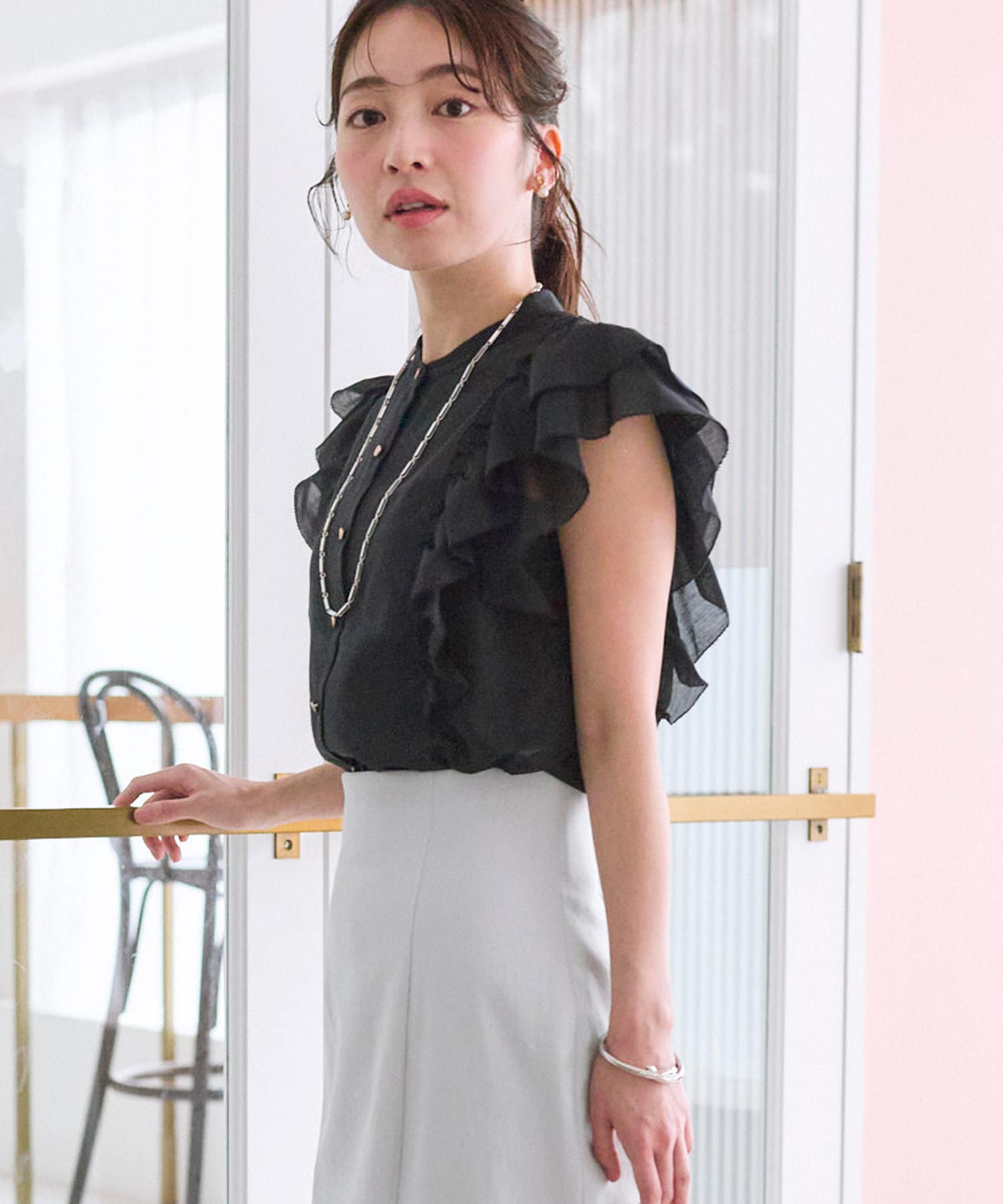 ふんわりと軽やかな印象のラッフルフリルブラウス。
