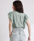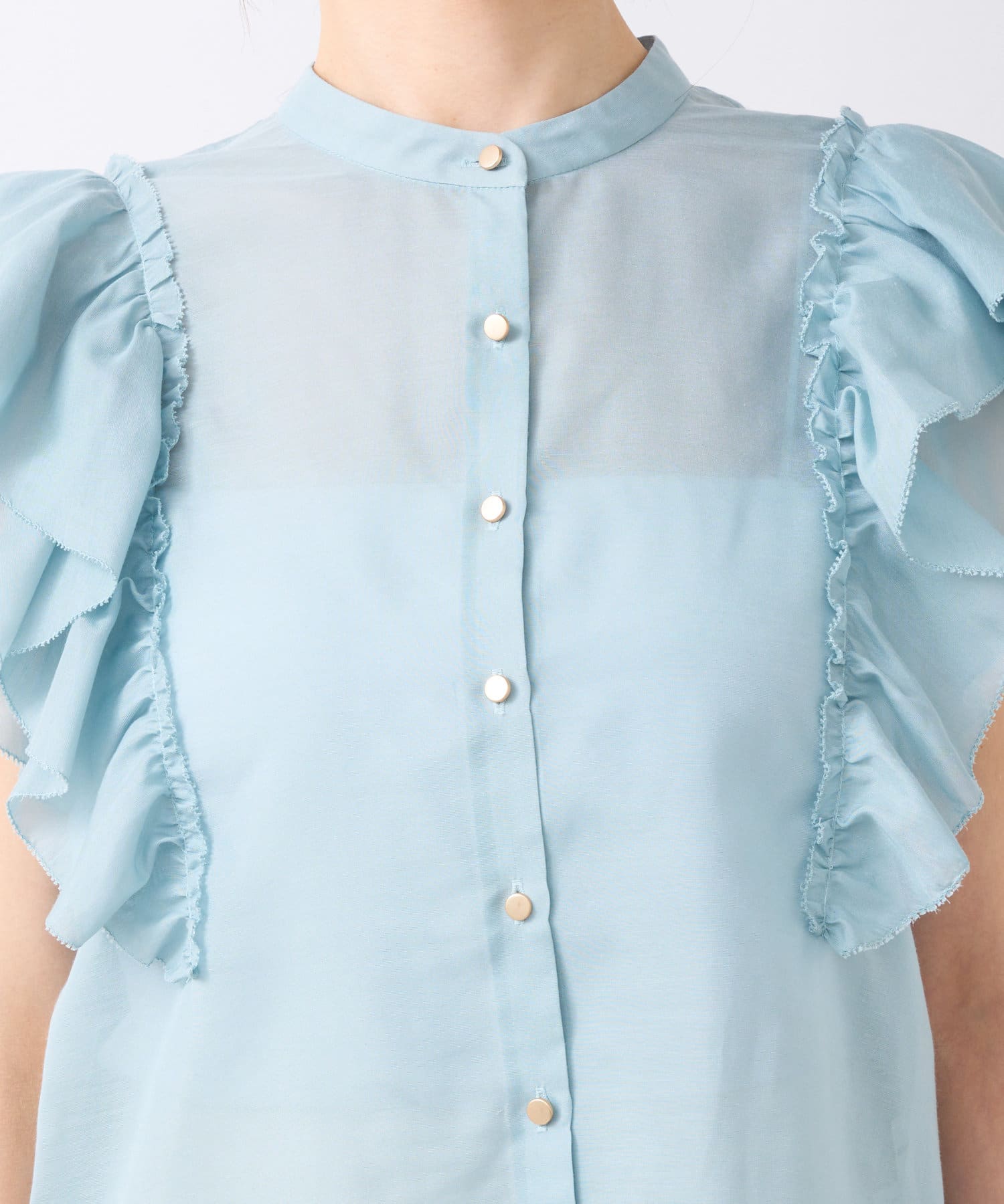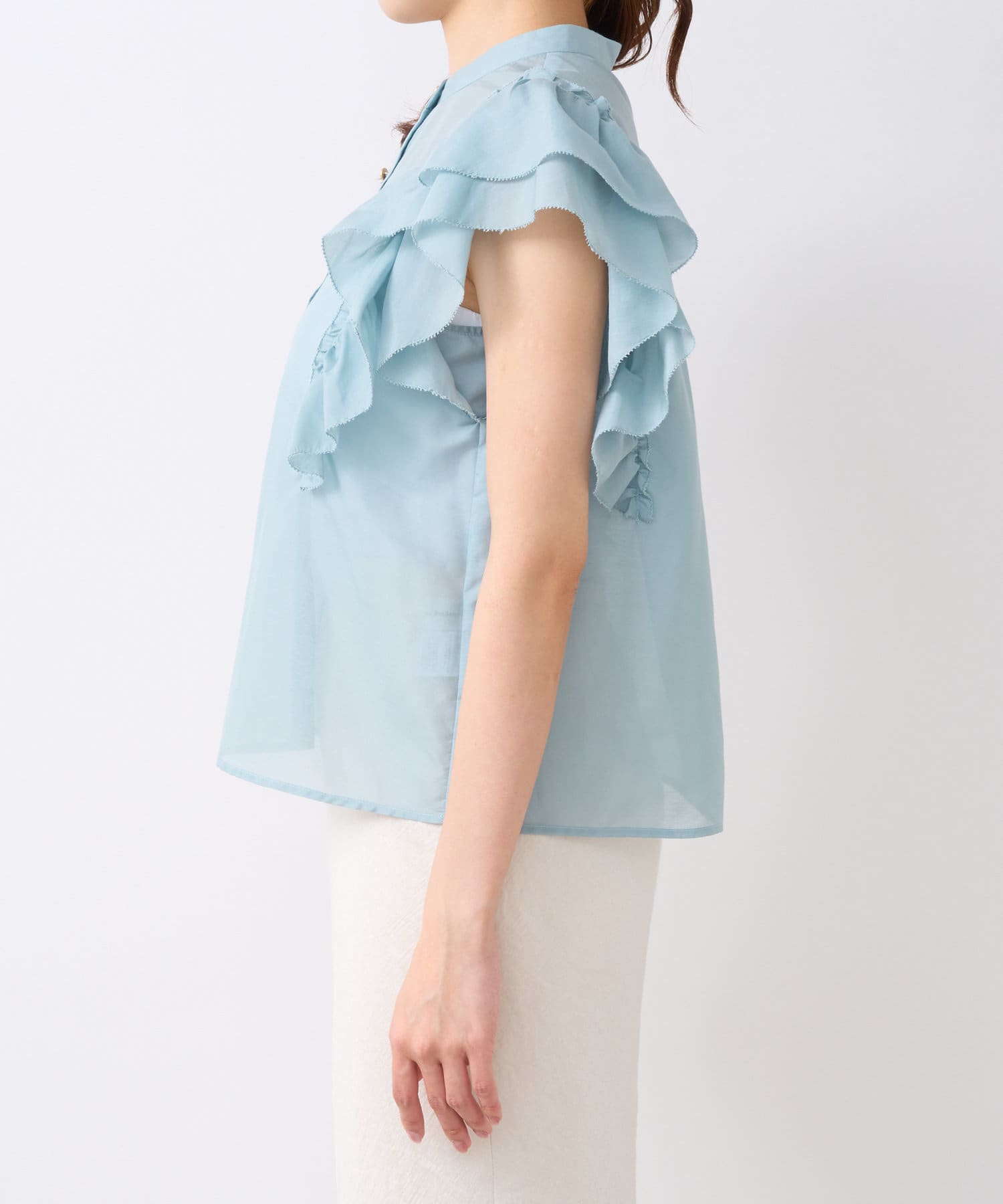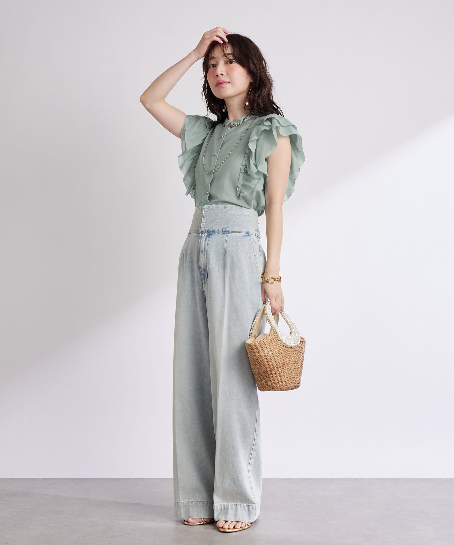 ふんわりと軽やかな印象のラッフルフリルブラウス。