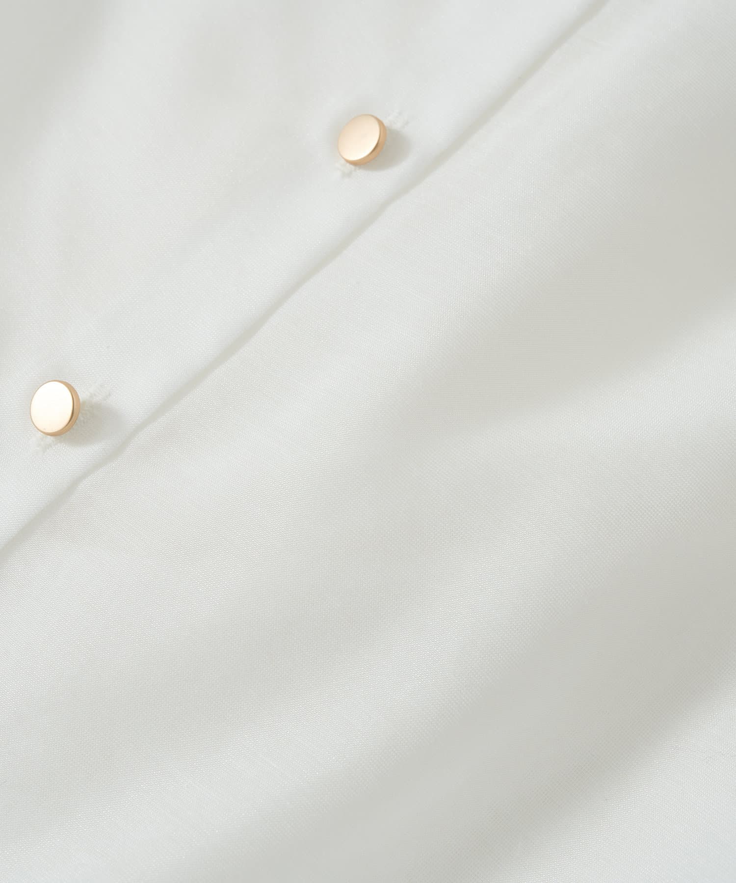 首元はすっきりとしたバンドカラーで、甘すぎない大人の上品さをプラス。
