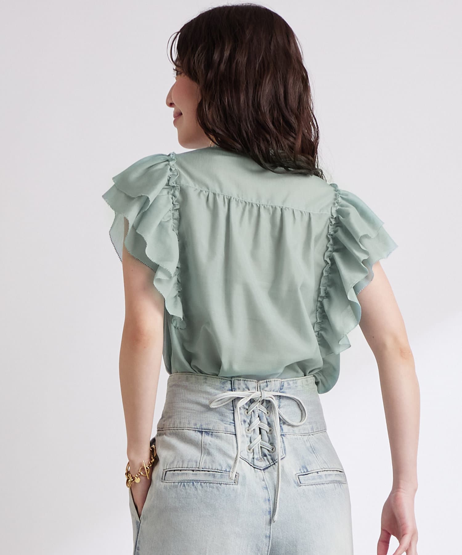 【最強お上品ブラウス】ラッフルフリルスリーブブラウス