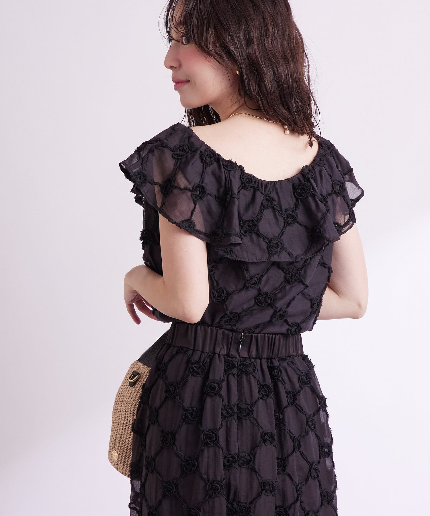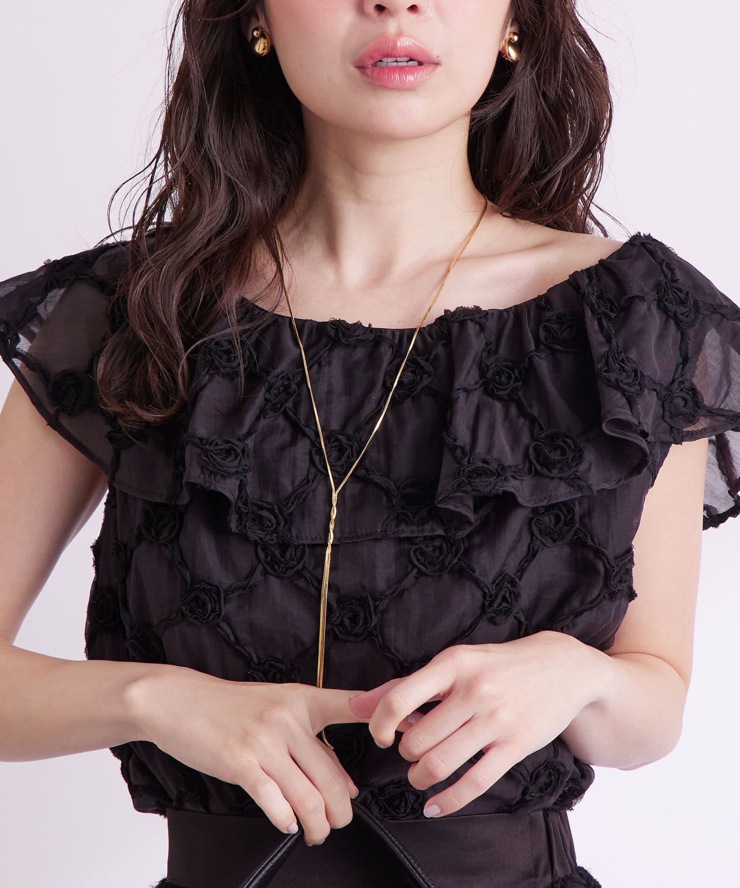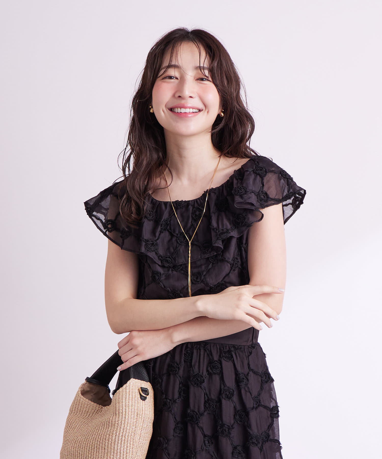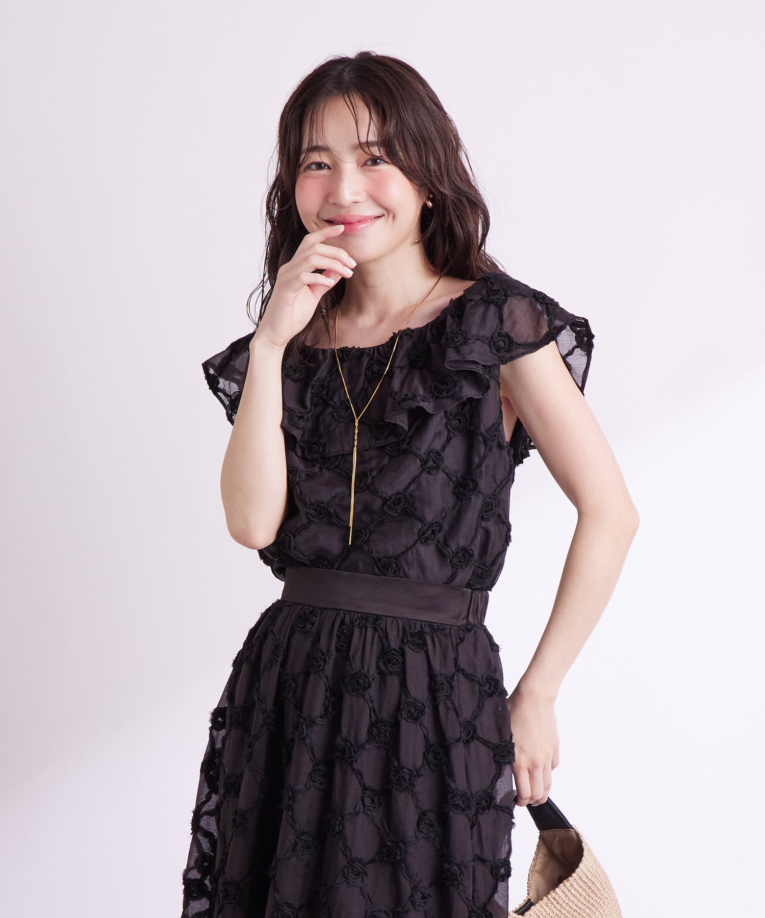 ローズのあしらわれた繊細な生地が、他にはない華やかさをもたらしてくれます。