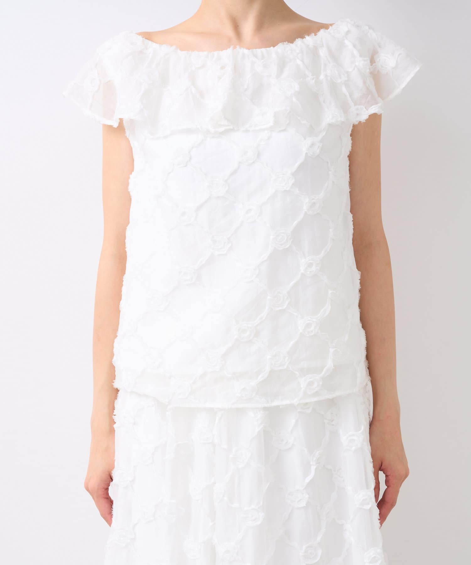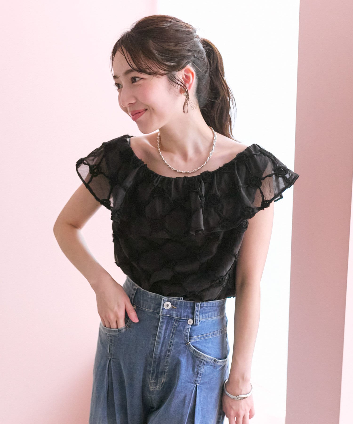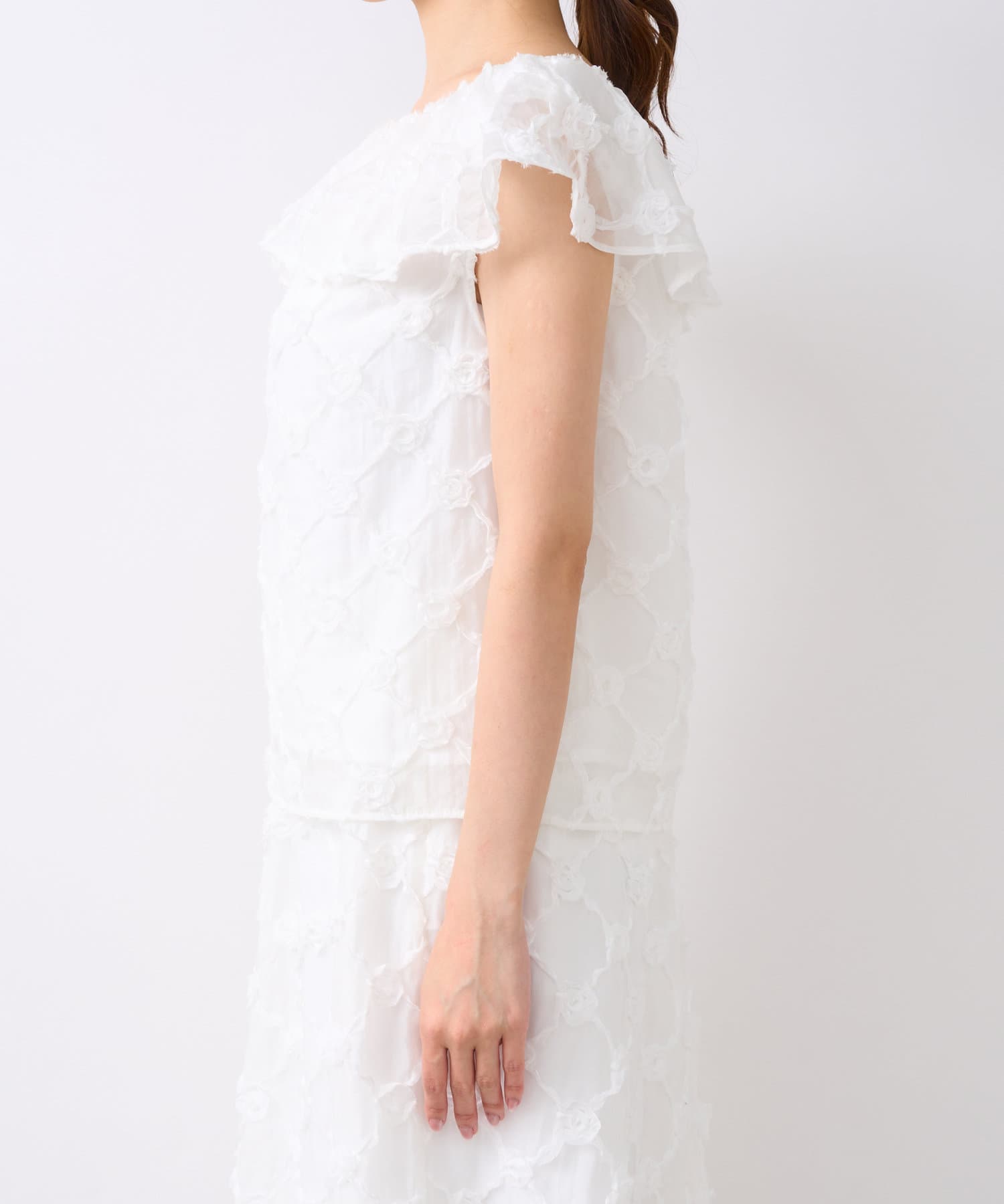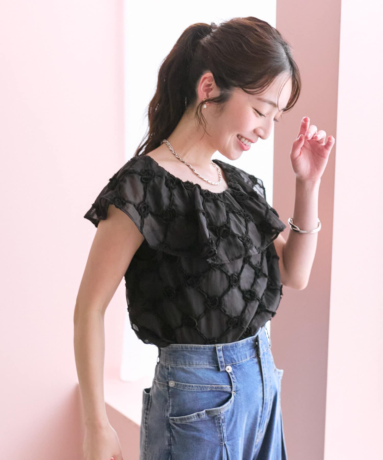 ローズのあしらわれた繊細な生地が、他にはない華やかさをもたらしてくれます。
