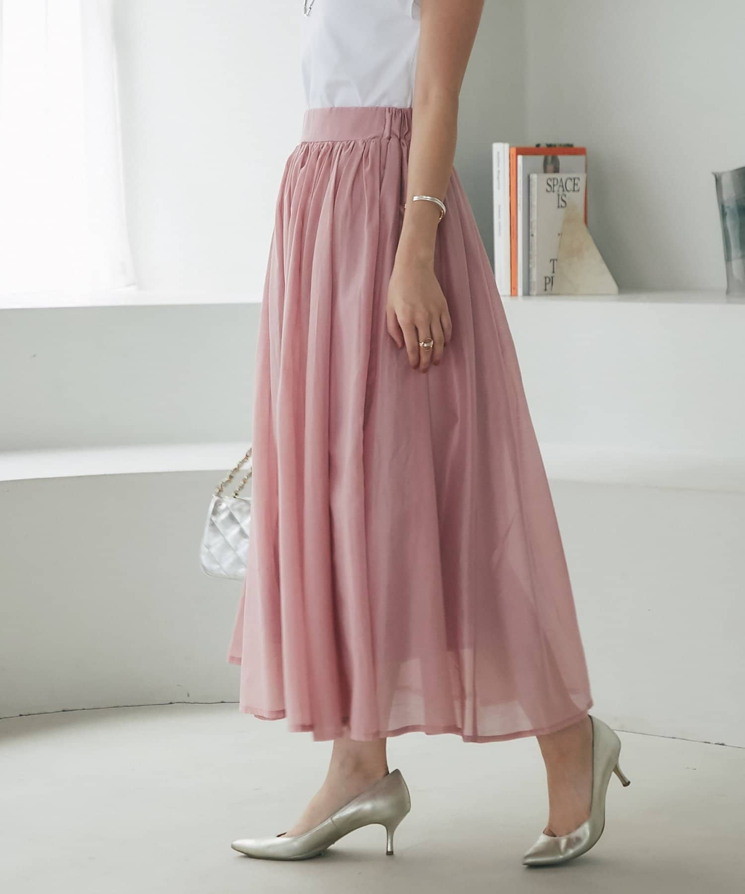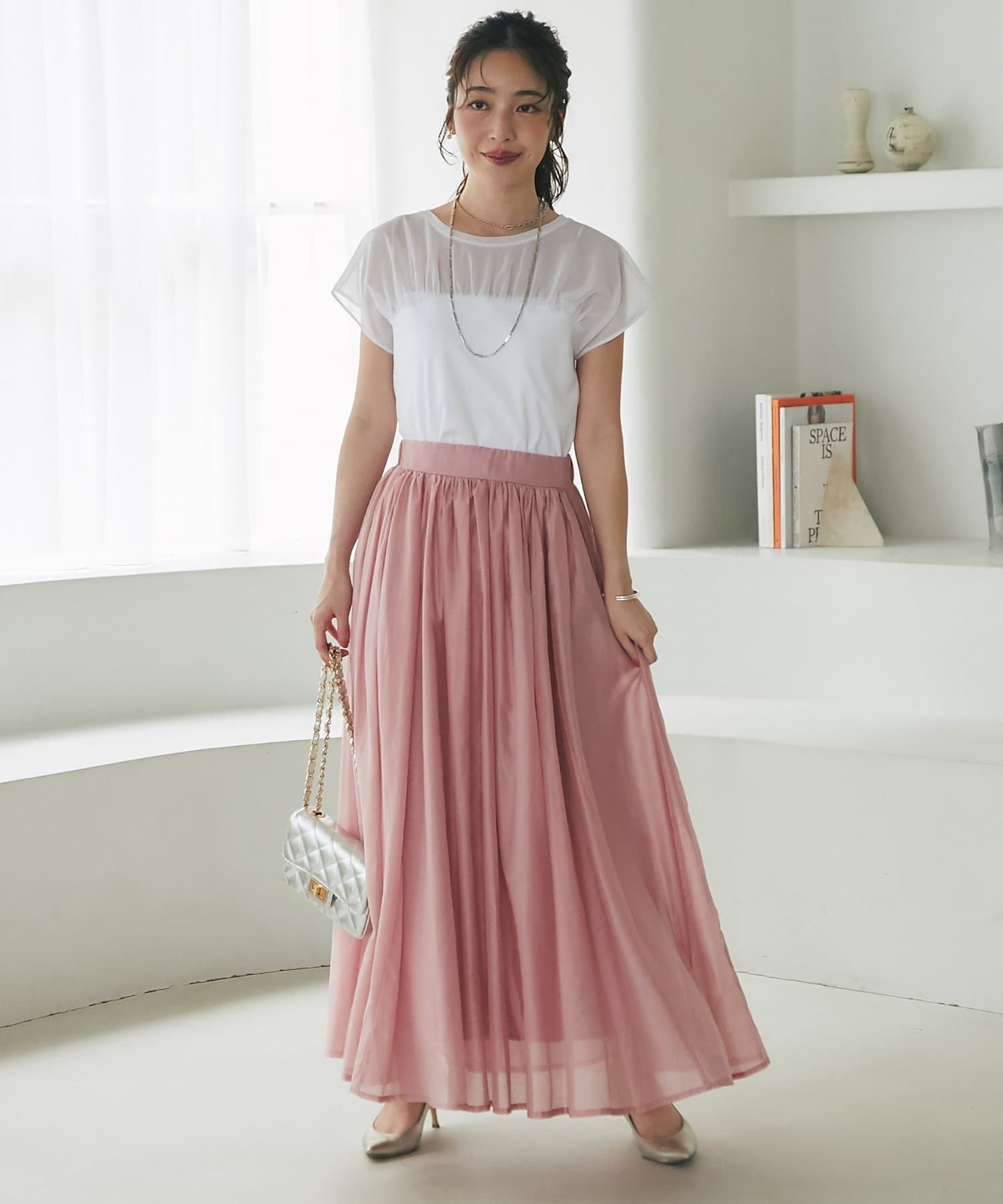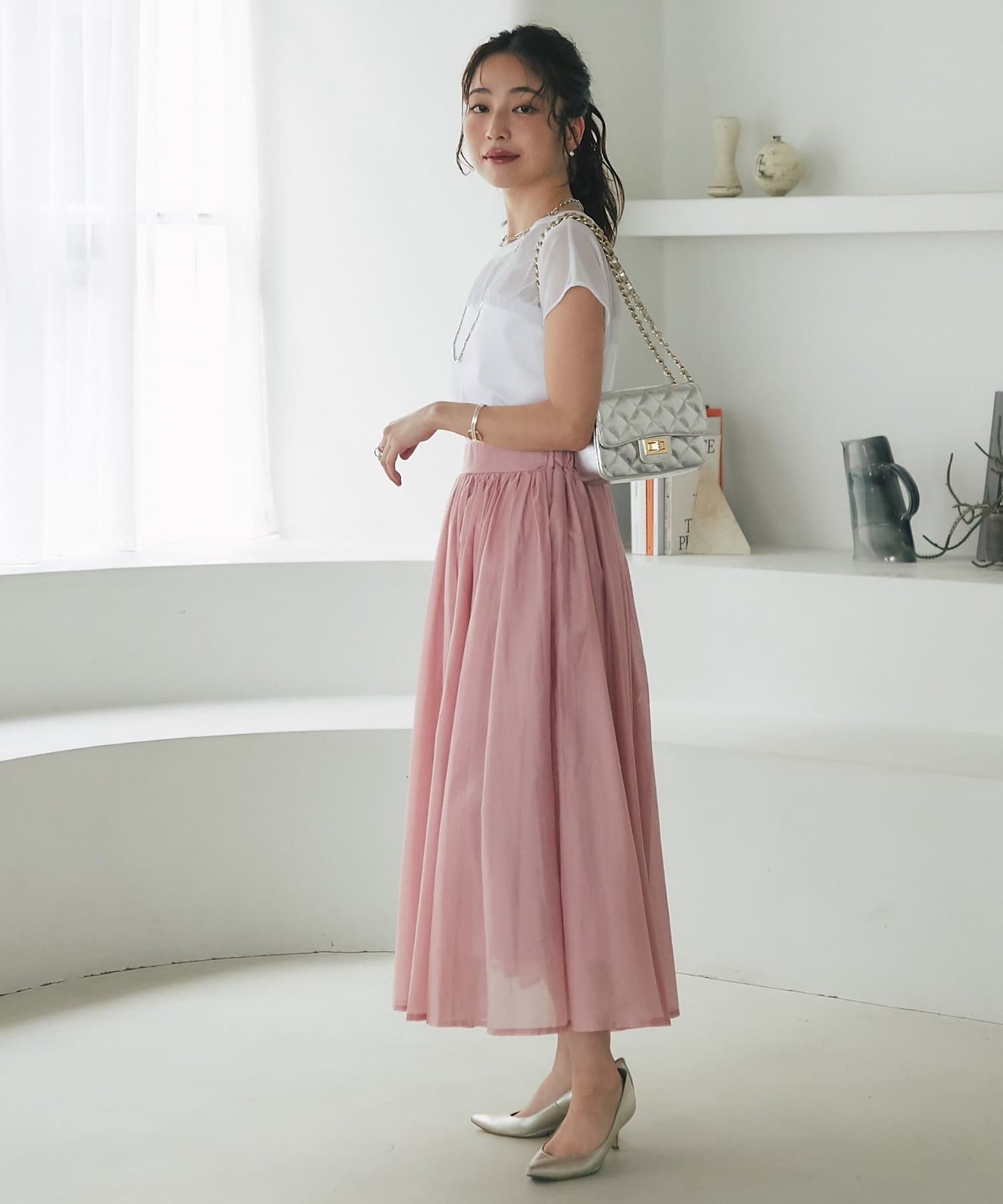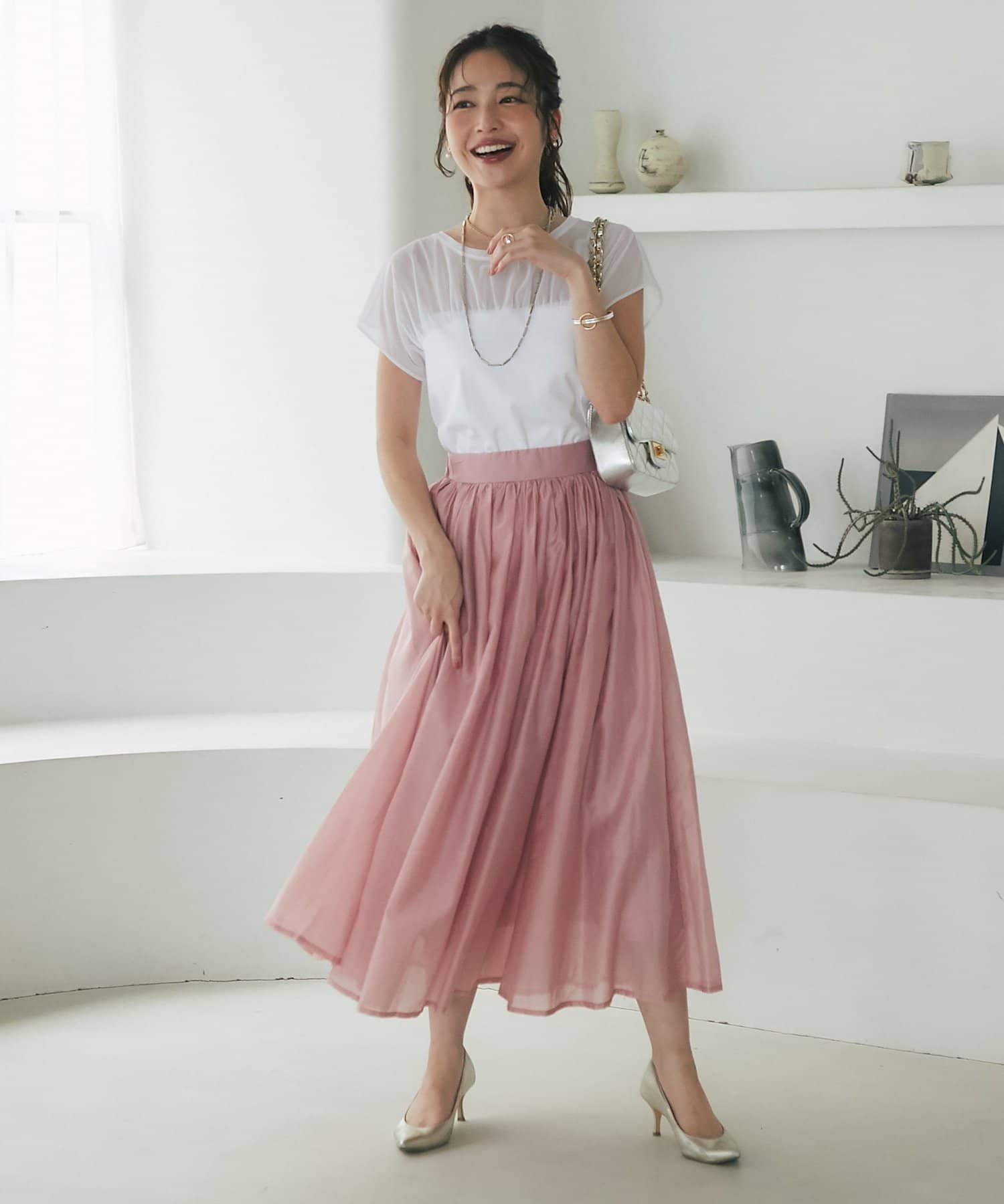 大人の女性らしさを引き立てるシアースカート。
