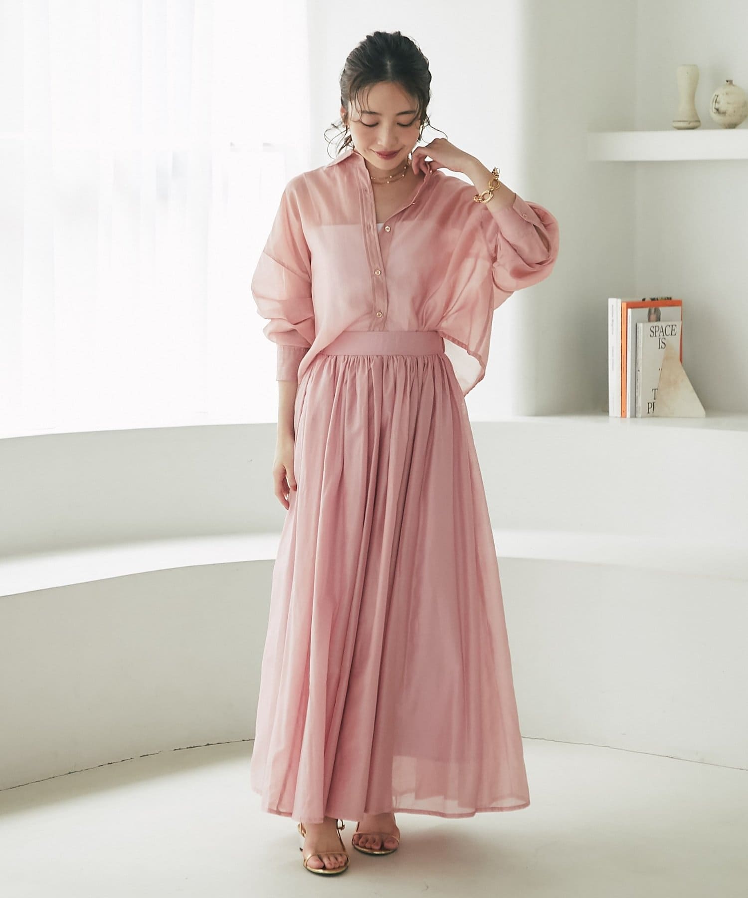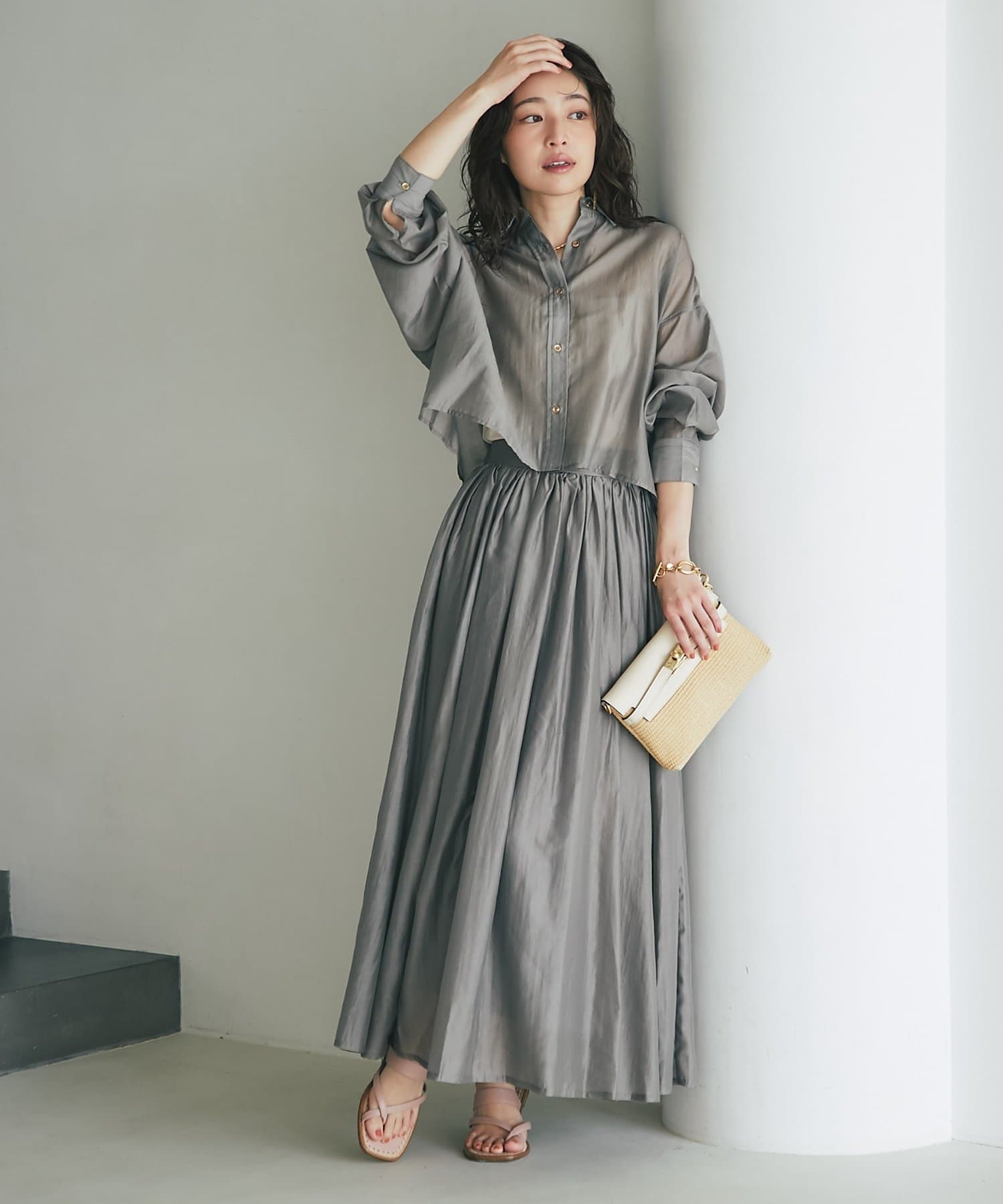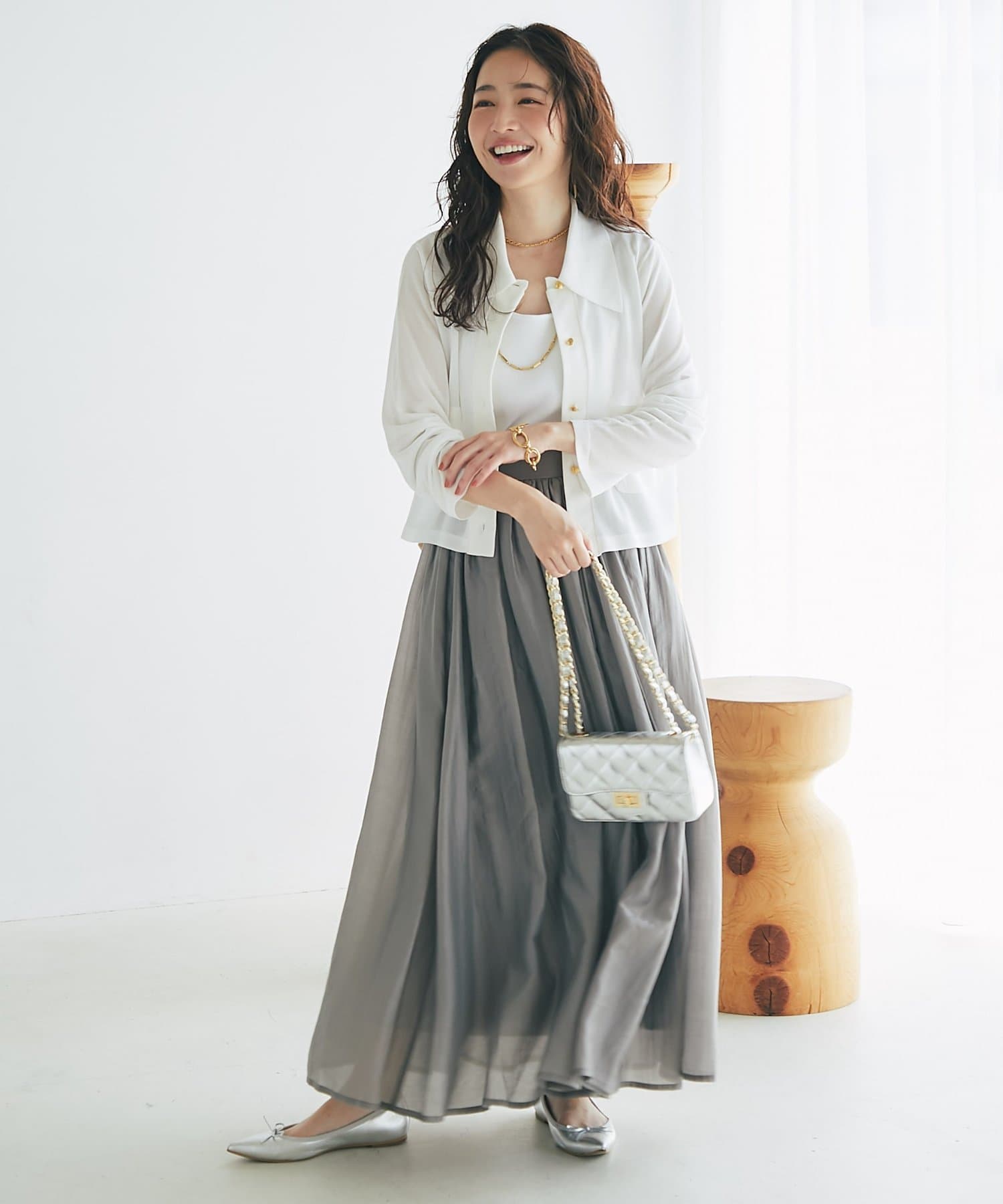 大人の女性らしさを引き立てるシアースカート。