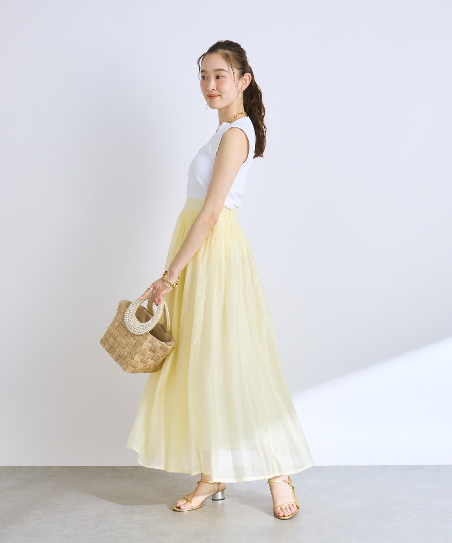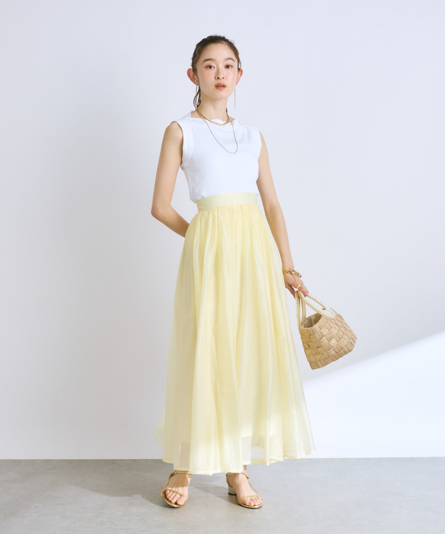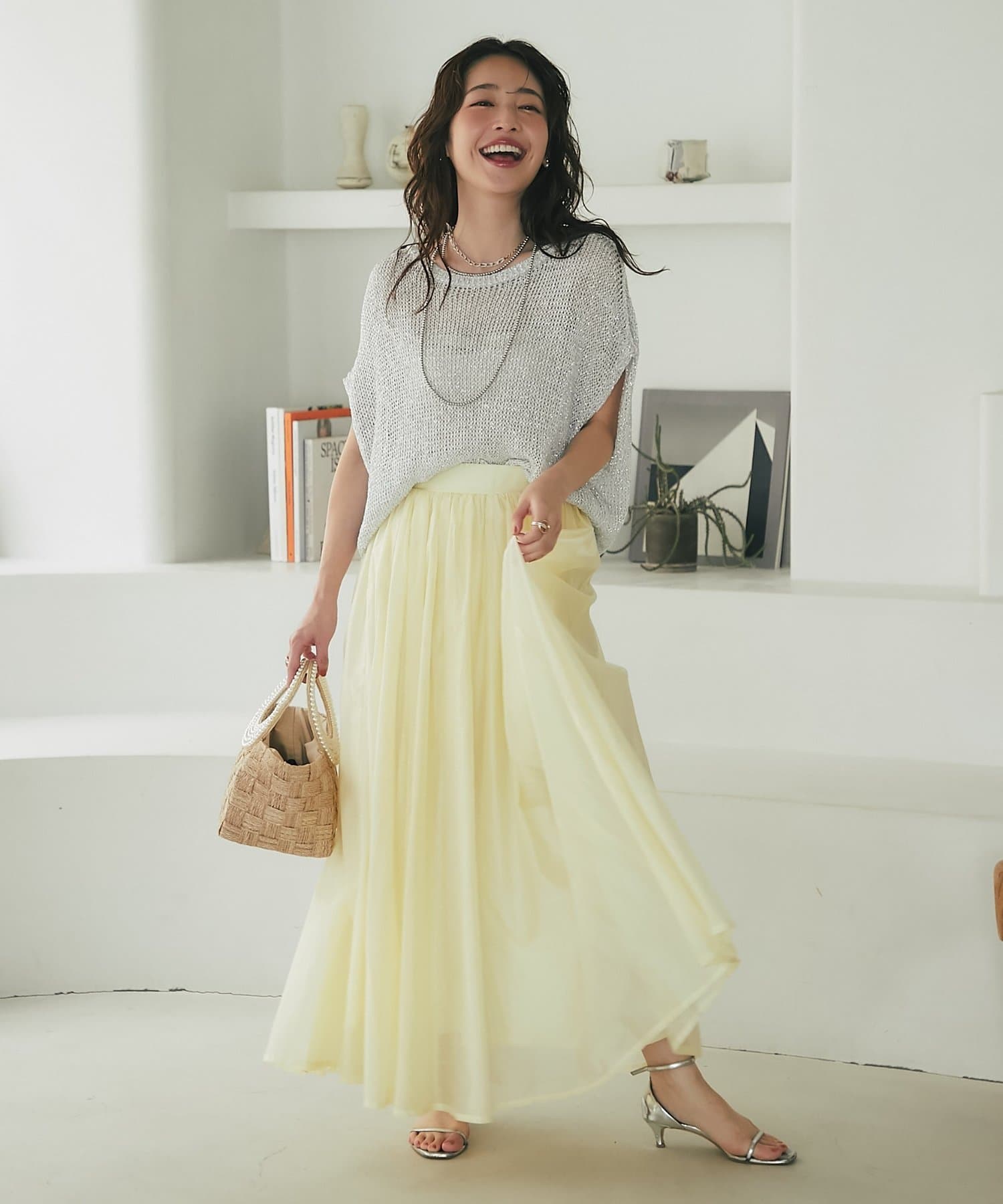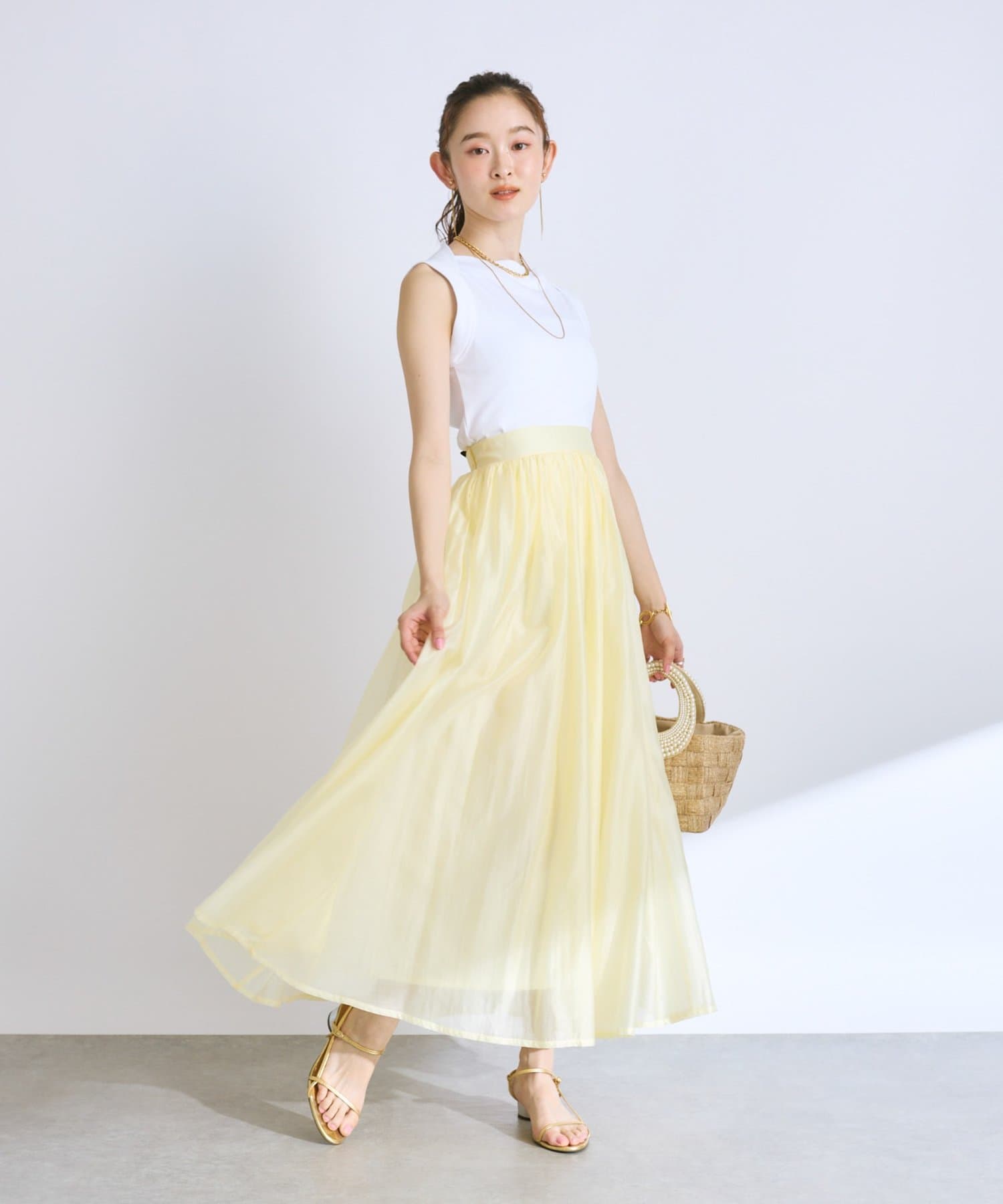 大人の女性らしさを引き立てるシアースカート。