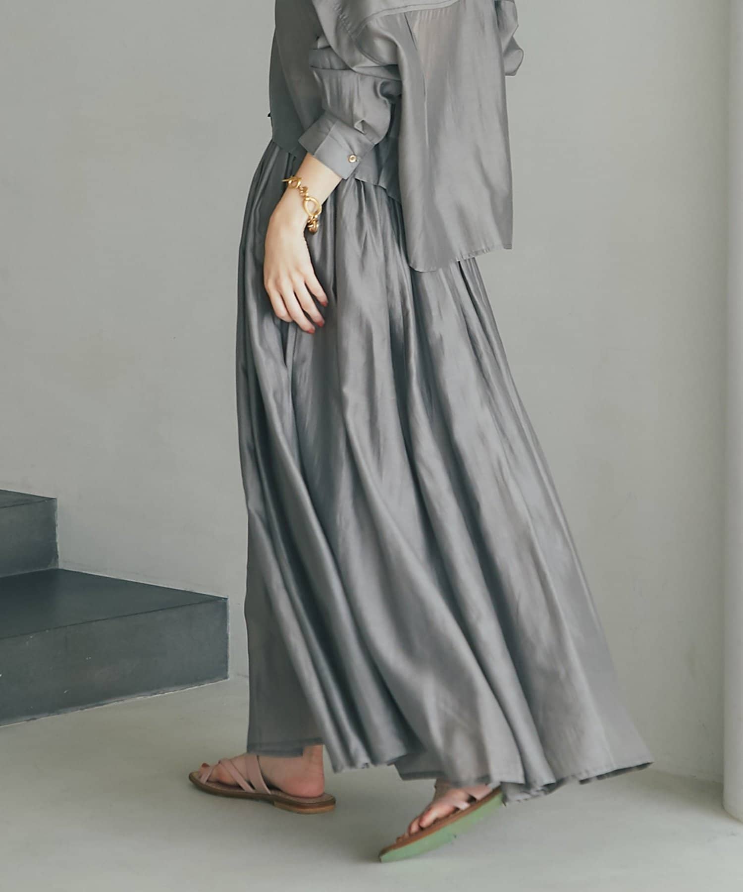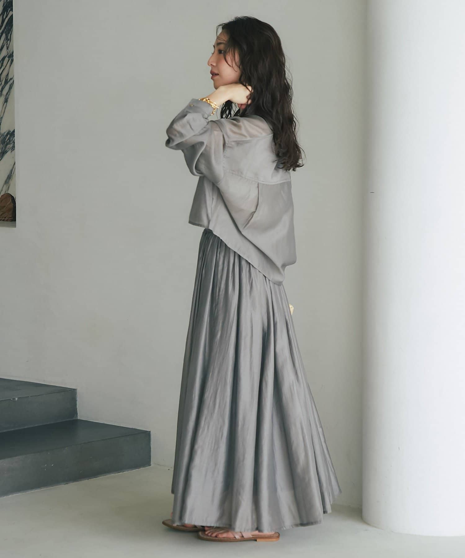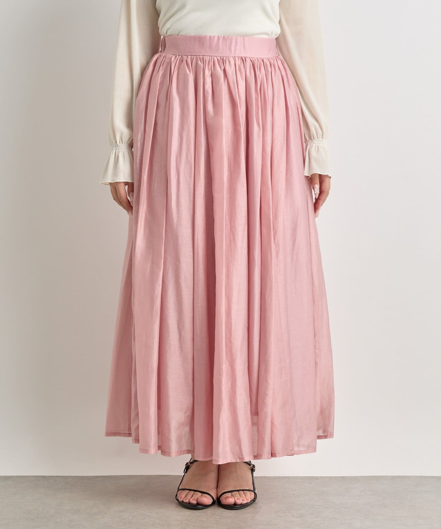 【セットアップ可・ロングシーズン着れる】ニュアンスギャザーシアースカート