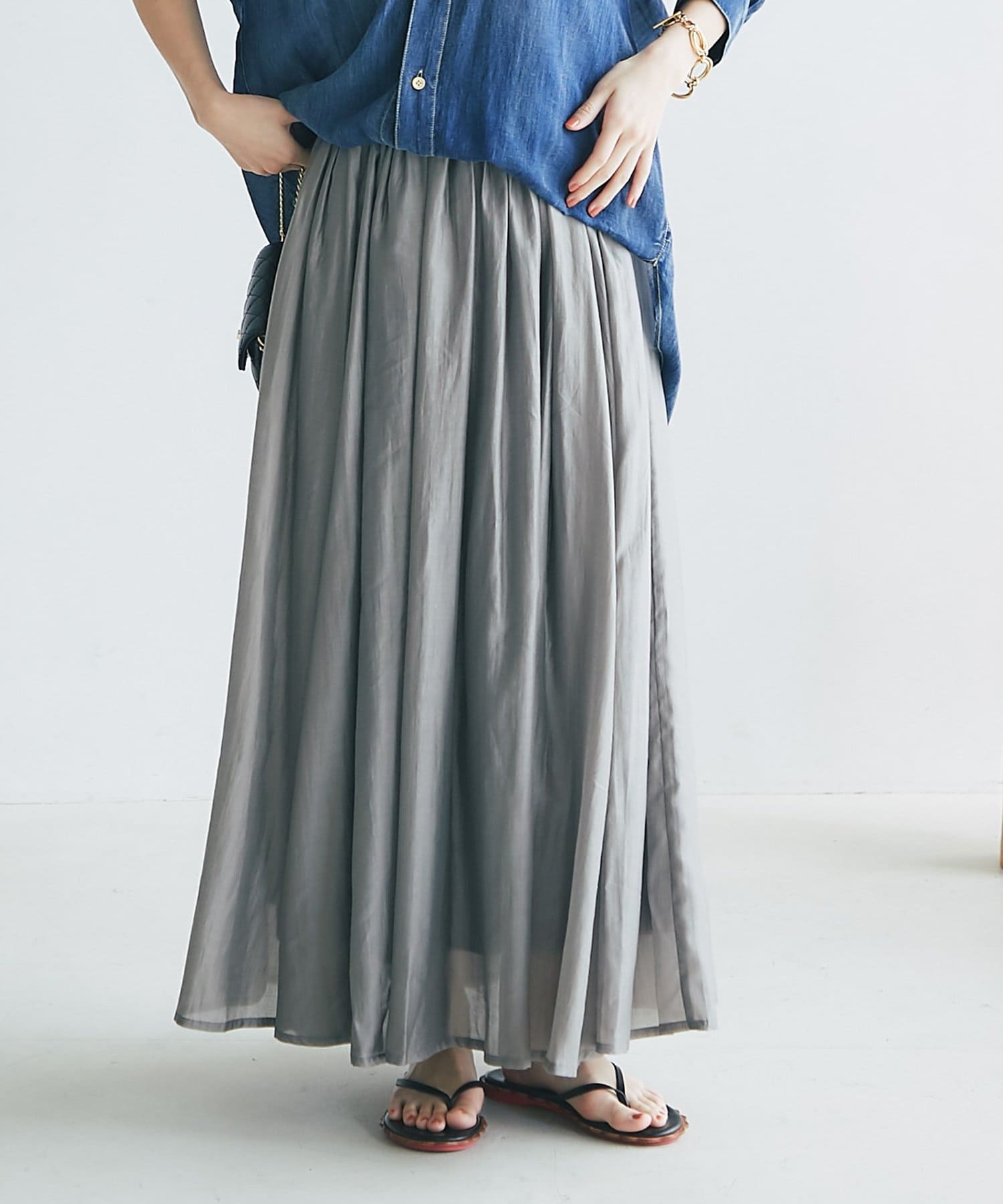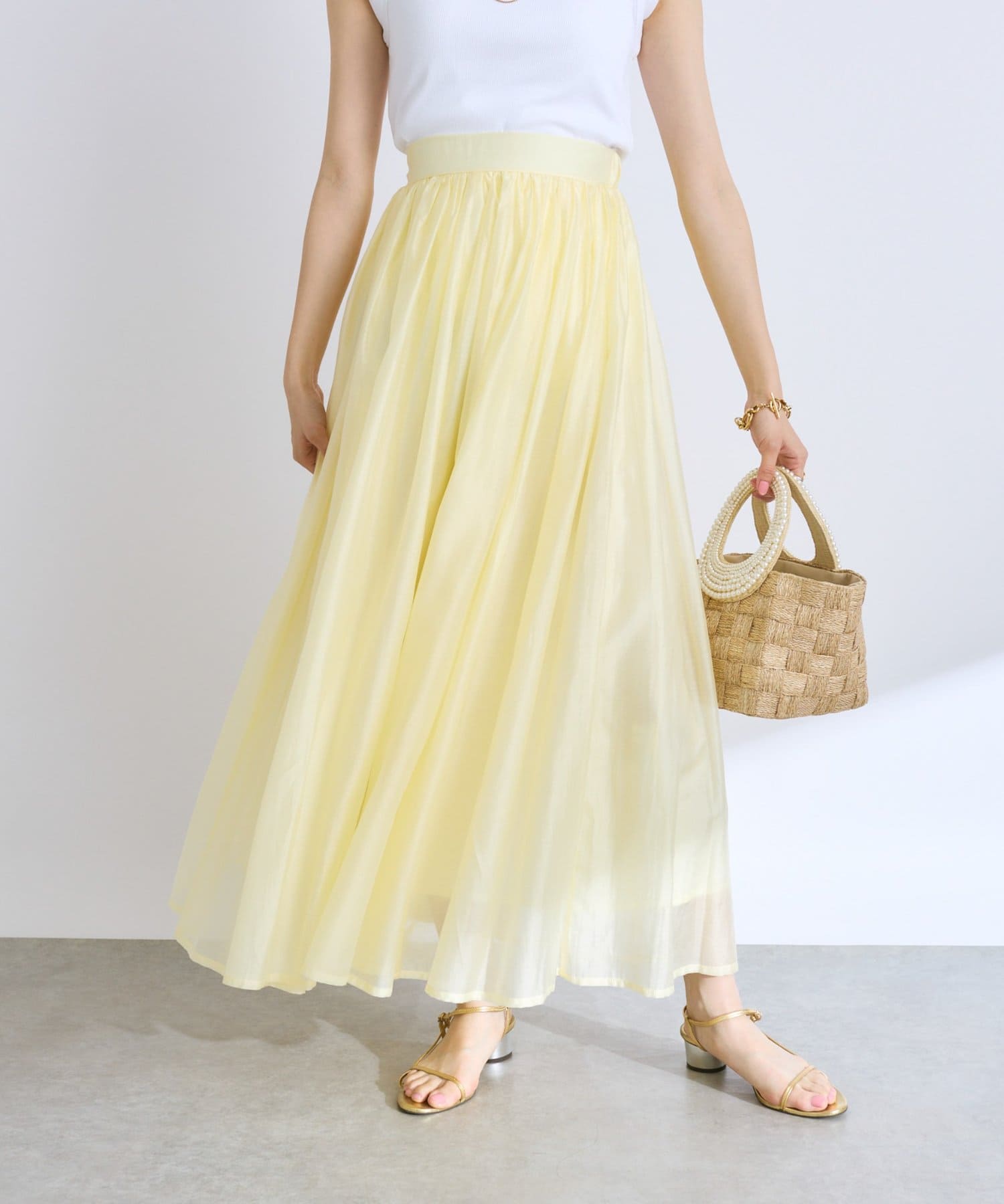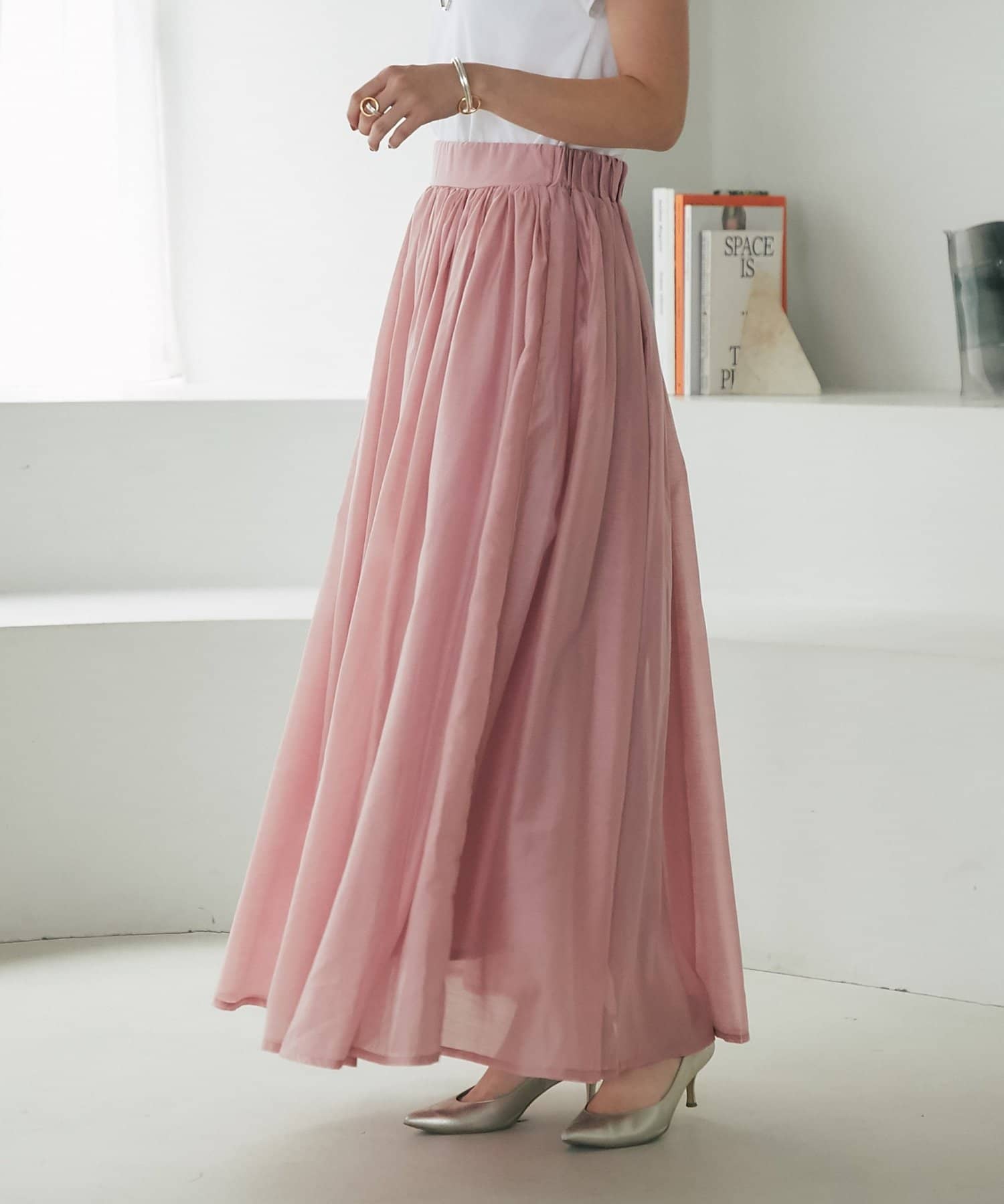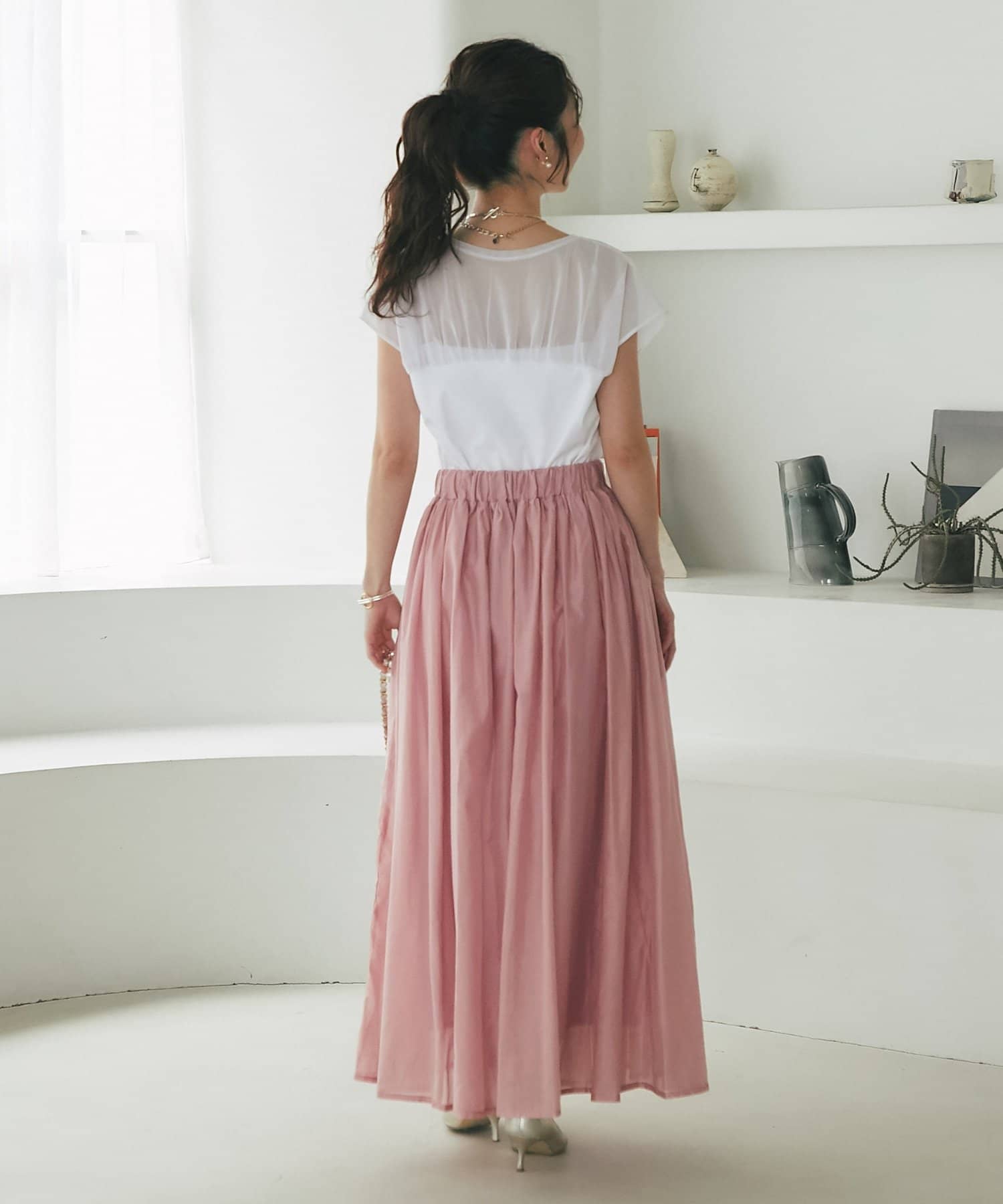 【セットアップ可・ロングシーズン着れる】ニュアンスギャザーシアースカート