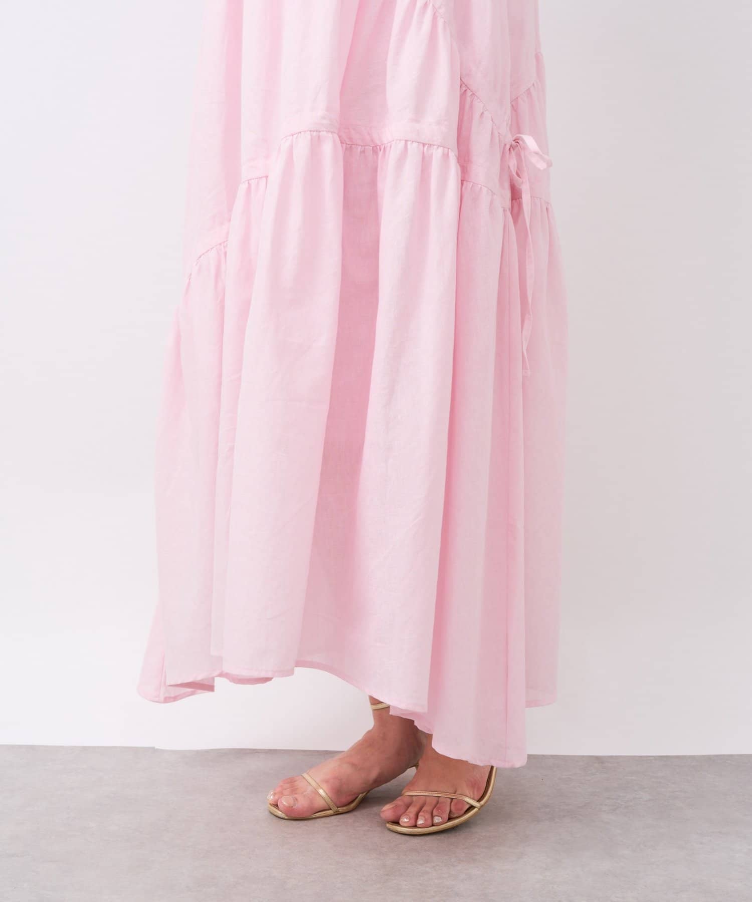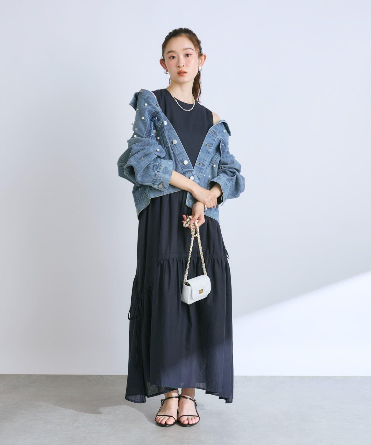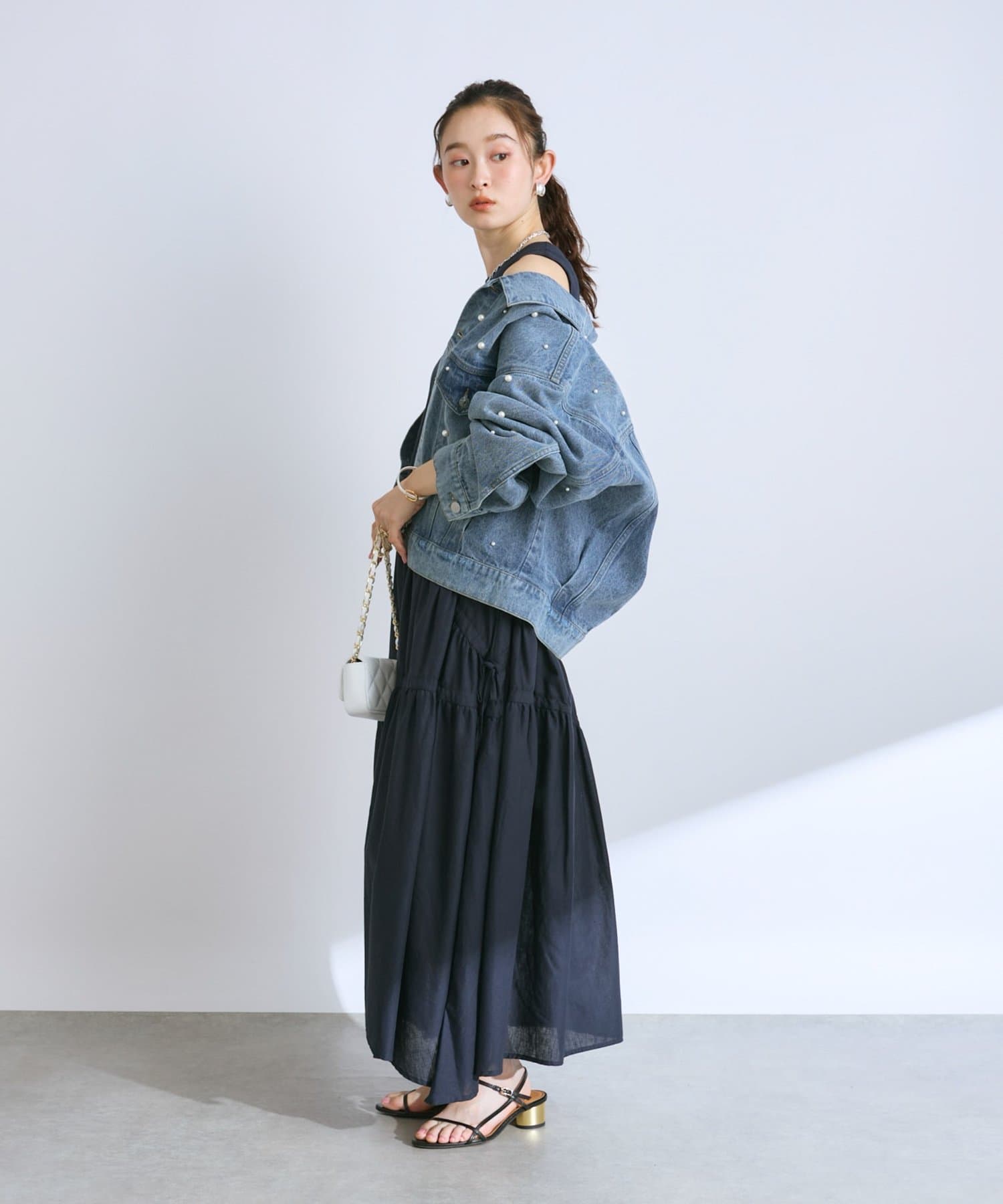アシンメトリーなティアードが、動くたびに優雅なドレープを生み出し、軽やかな印象を与えます。