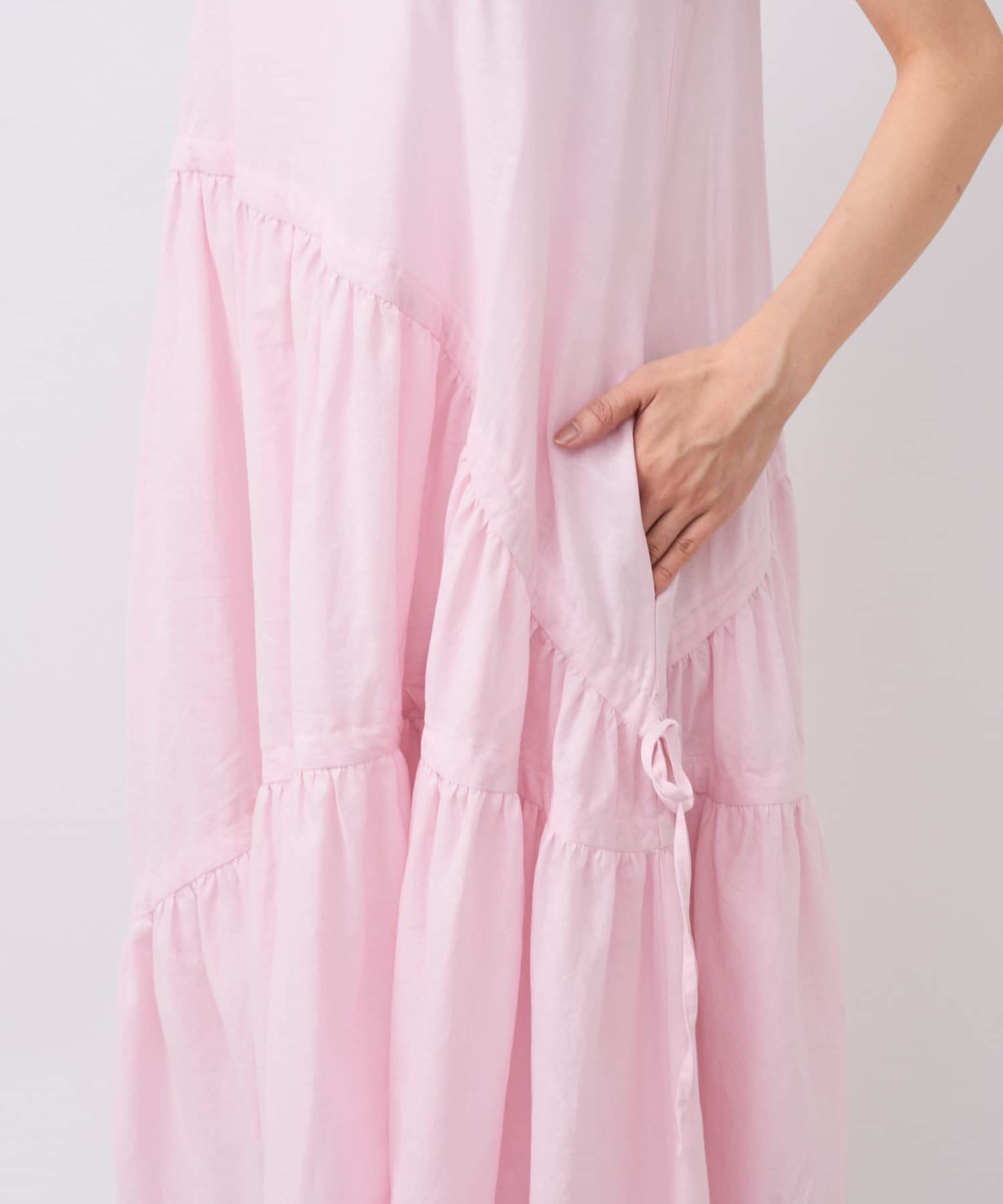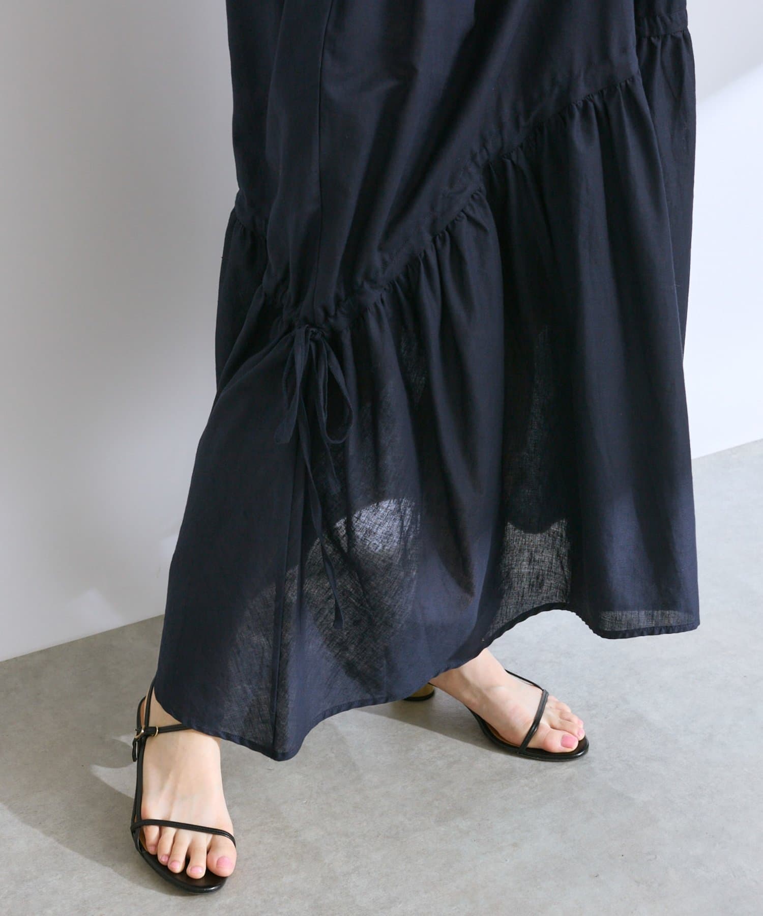 【最強愛されワンピ】アシンメトリーリボンリネンミックスワンピース