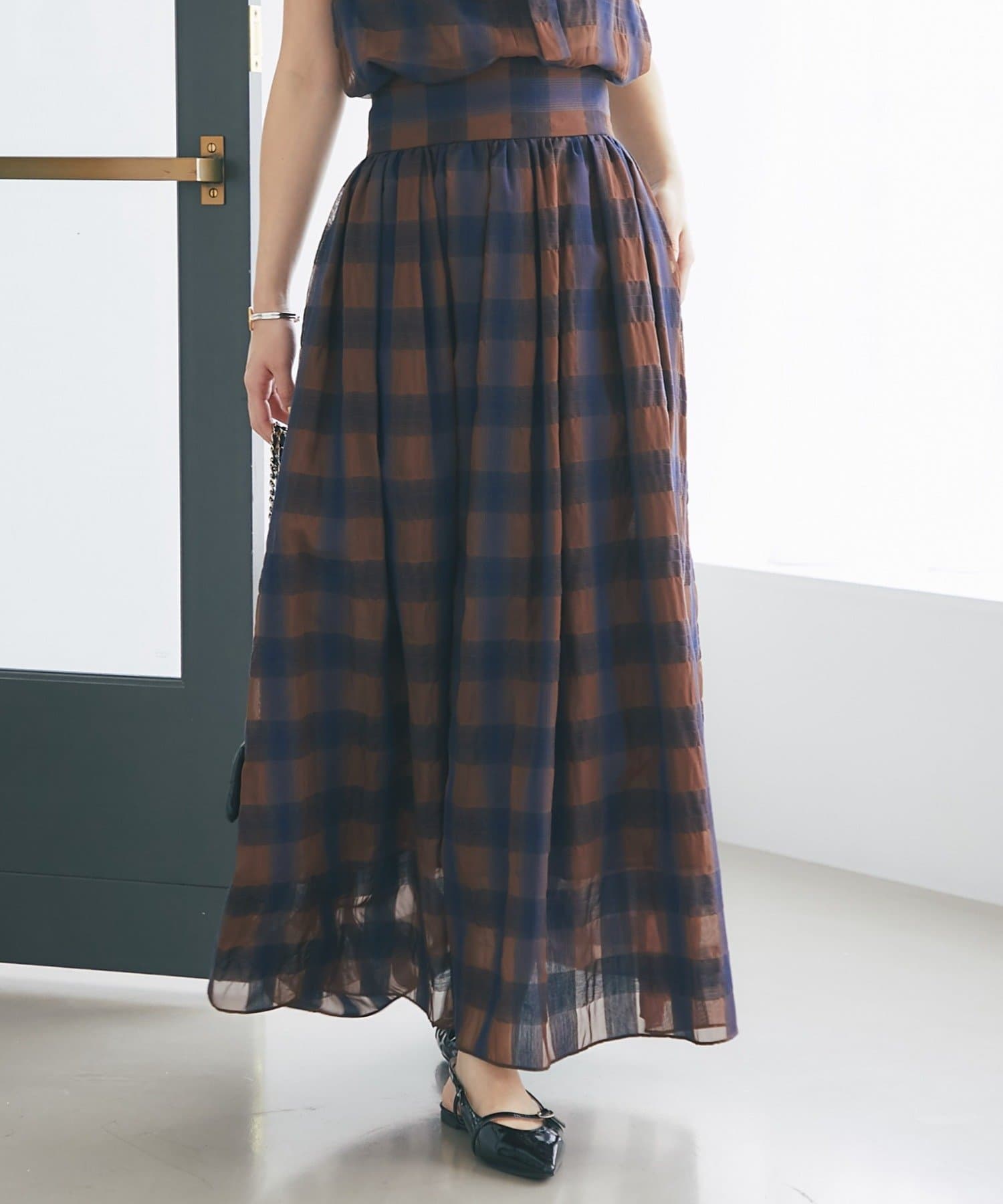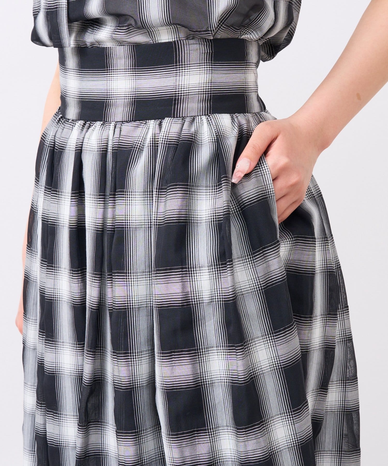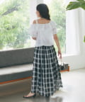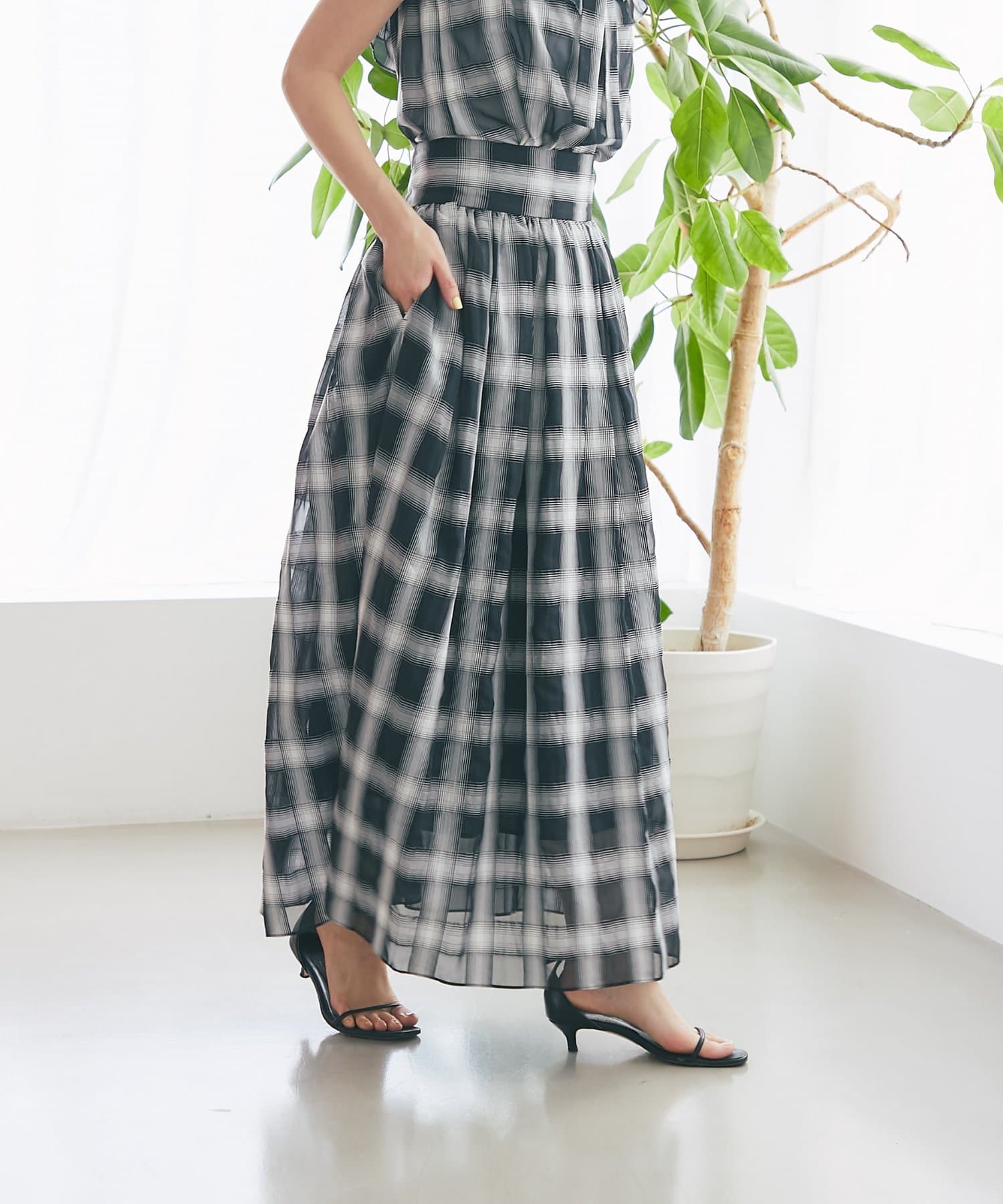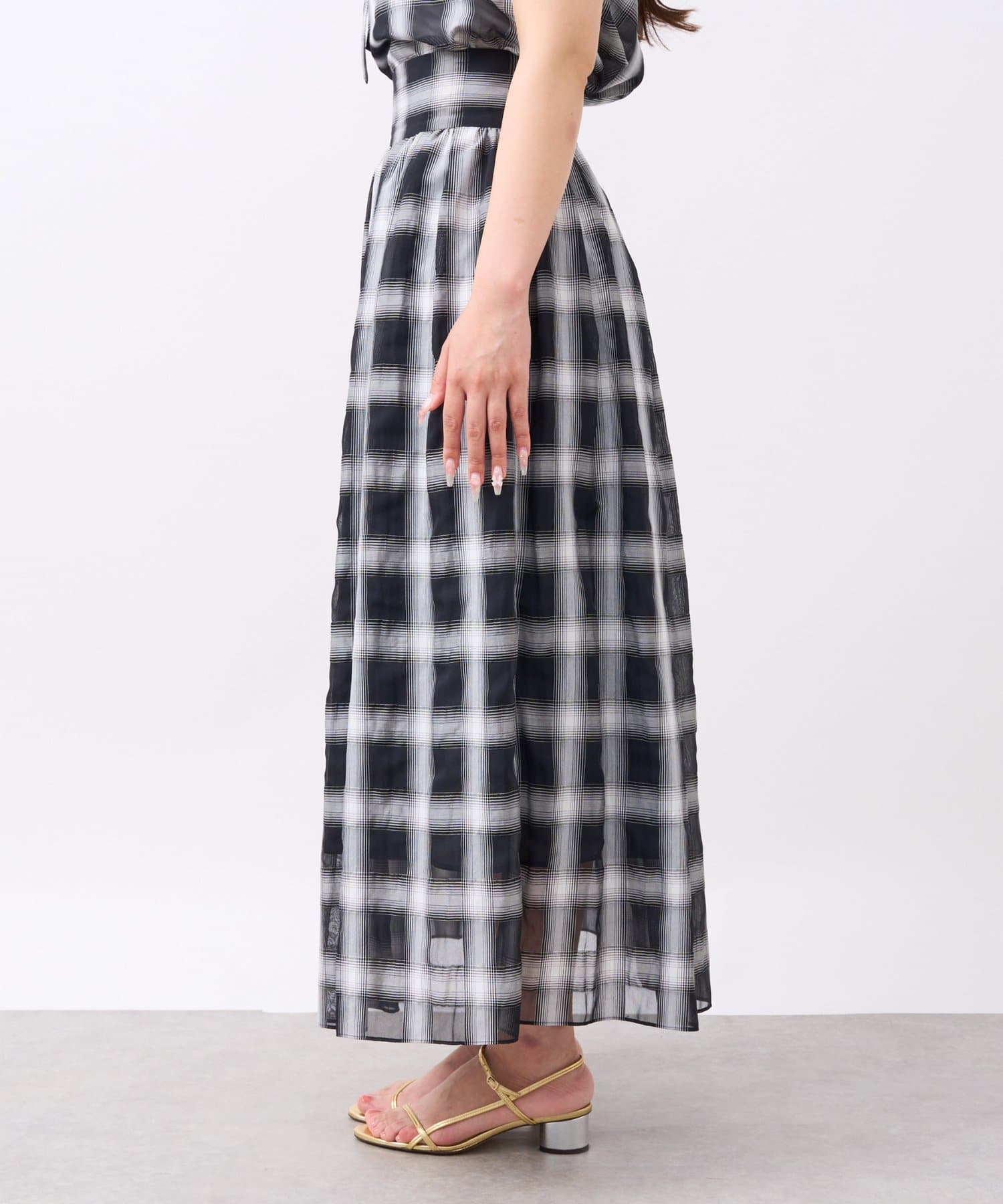 【低身長サイズ・セットアップ可】シアーオンブレーチェックギャザーロングスカート