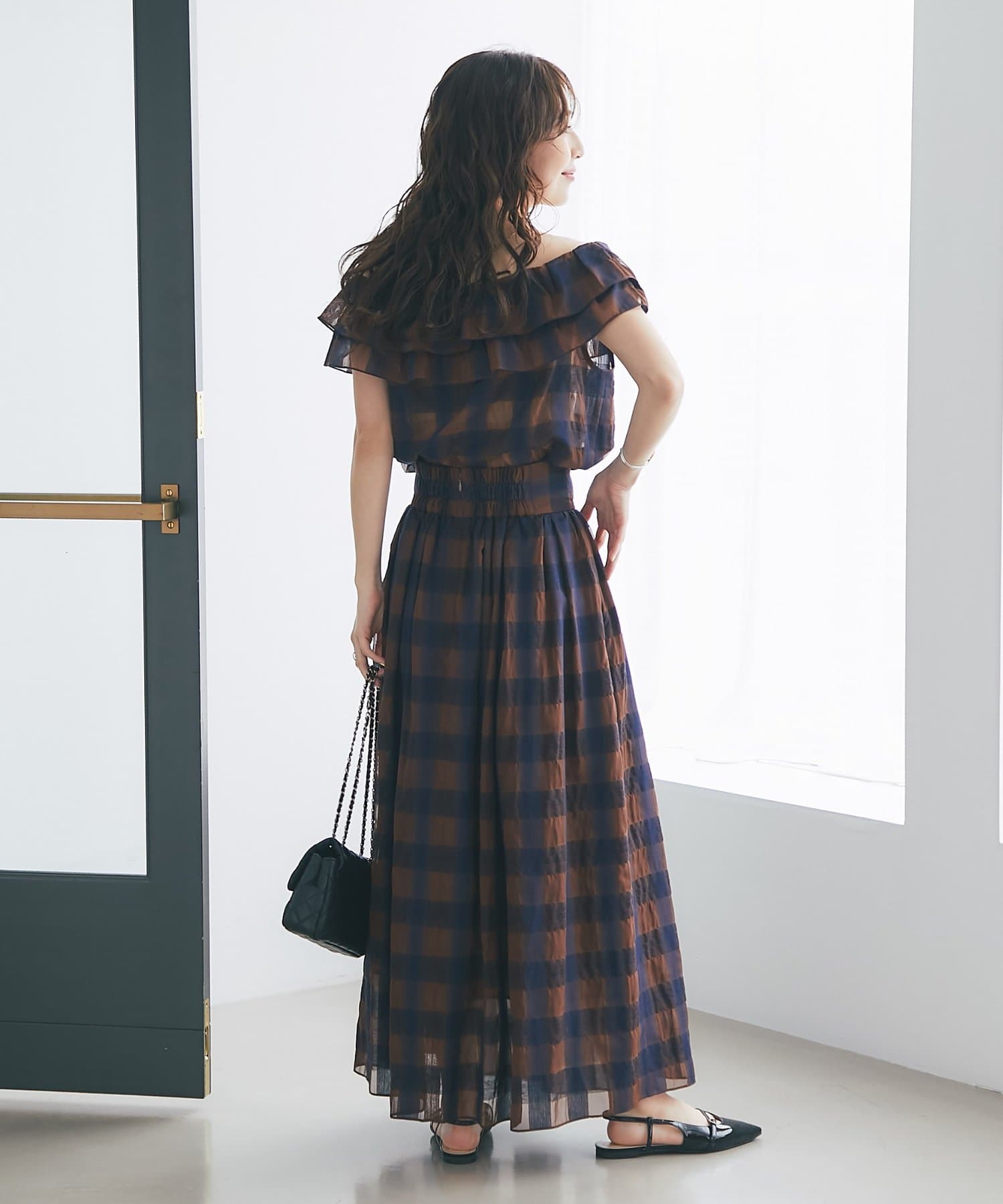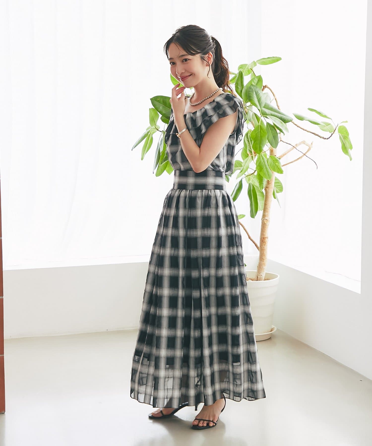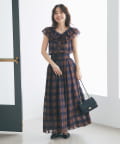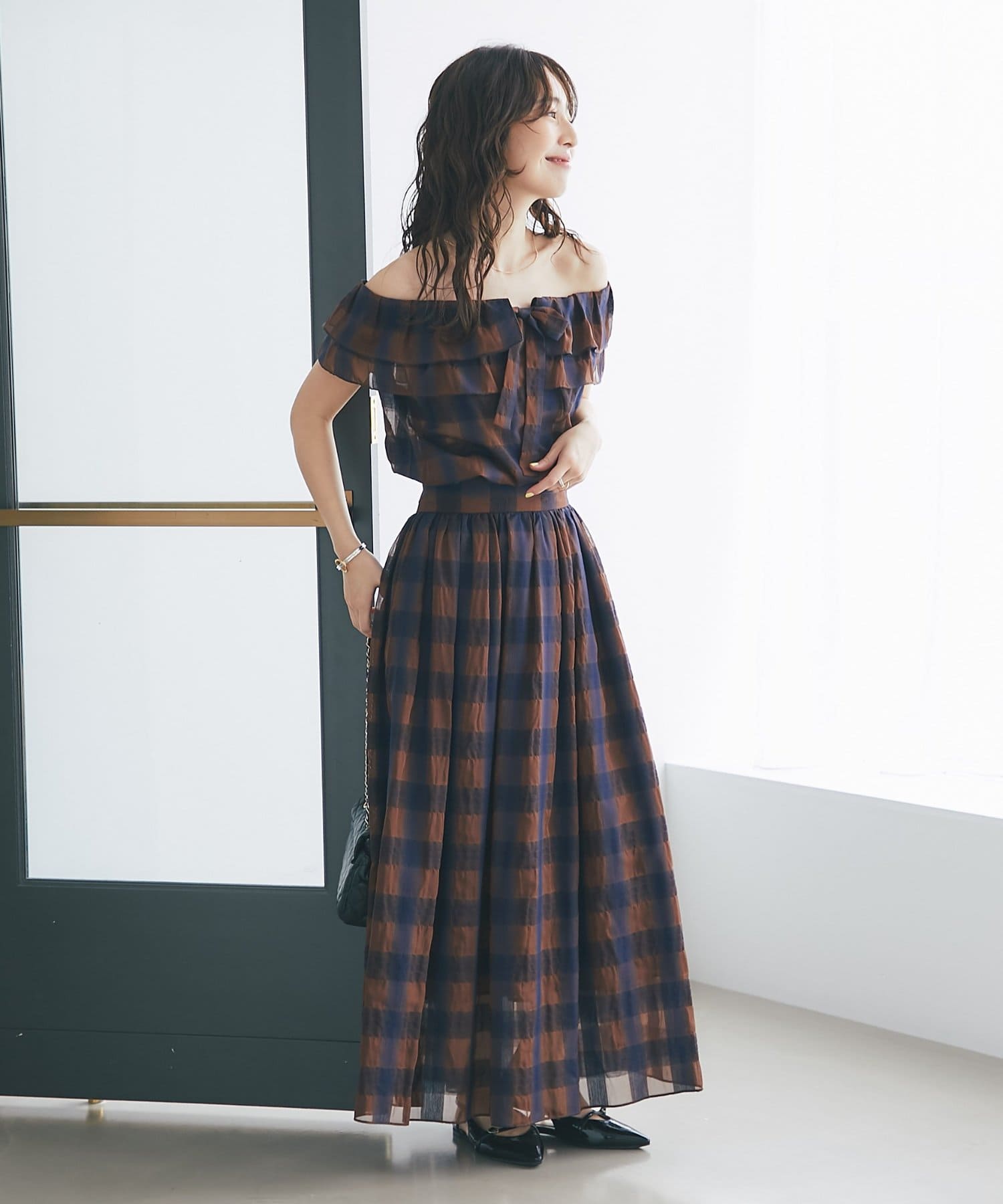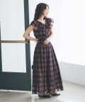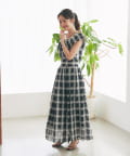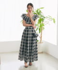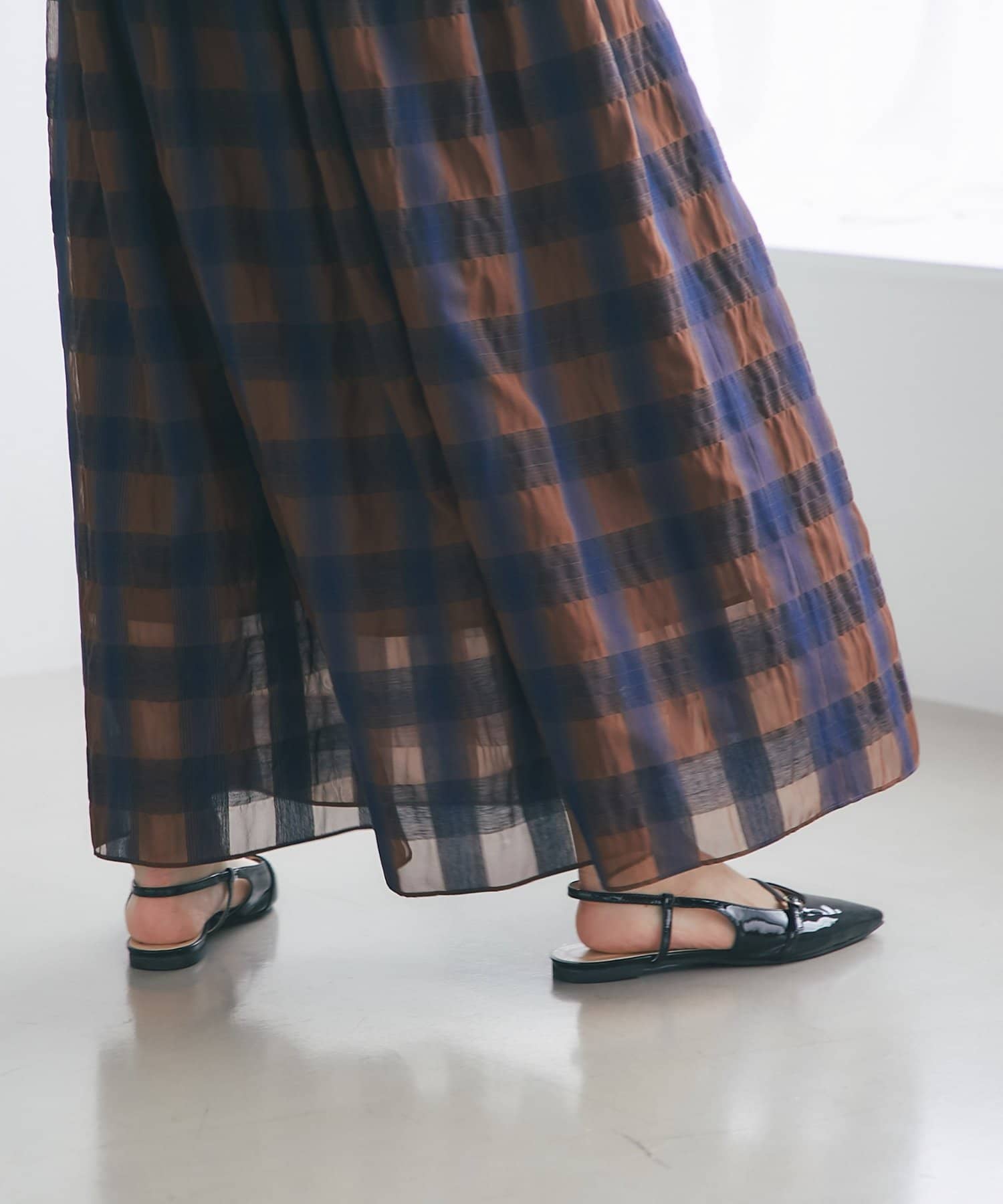 【低身長サイズ・セットアップ可】シアーオンブレーチェックギャザーロングスカート