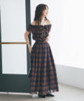 ・シアーオンブレーチェック2WAYフリルオフショルブラウス(LBZ1052104A0002)