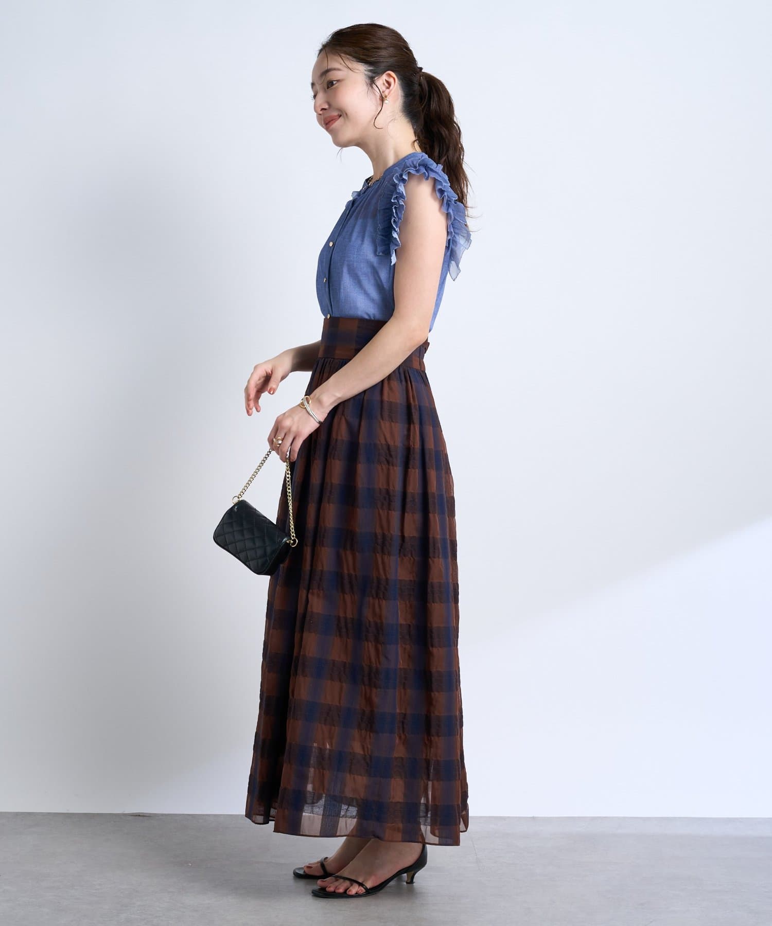 いつものコーデに新鮮な風を吹き込む、チェック柄ロングスカート。