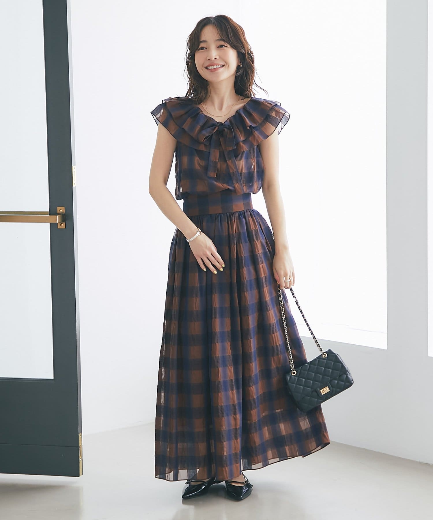 クラシカルなチェック柄を、軽やかな素材で仕立てました。